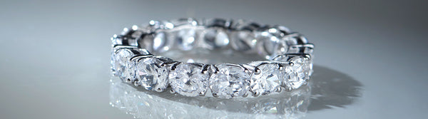 A diamond eternity ring is a continuous circle of diamonds set around a precious metal such as gold or platinum. A circle symbolizes eternity and diamonds stand for love. An eternity band is this commitment of love for a lifetime.