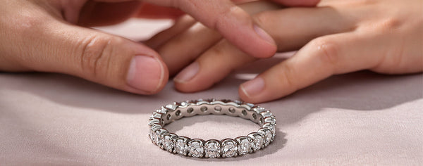 Now that we know eternity rings represent an everlasting and unbreakable bond, let’s see the different styles of eternity rings. There are two main styles - full eternity and half eternity rings.