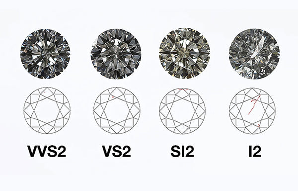 The clarity grade refers to the inclusions and blemishes inside and on the surface of the diamond. Common grades include: