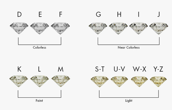 The color grade shows how warm the diamond you are buying is. The lower the color grade, the warmer the diamond. The scale starts from D, which means that the diamond is colourless, and goes to Z, which means that the diamond has a noticeable yellow or brown tint.