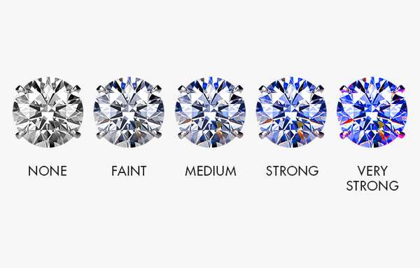 When a UV light is shone on the diamond, it glows. This indicates its fluorescence. Higher fluorescence might give your diamond a chalky or milky look in sunlight. It’s graded from None to Very Strong. For most buyers, None or Faint is ideal.