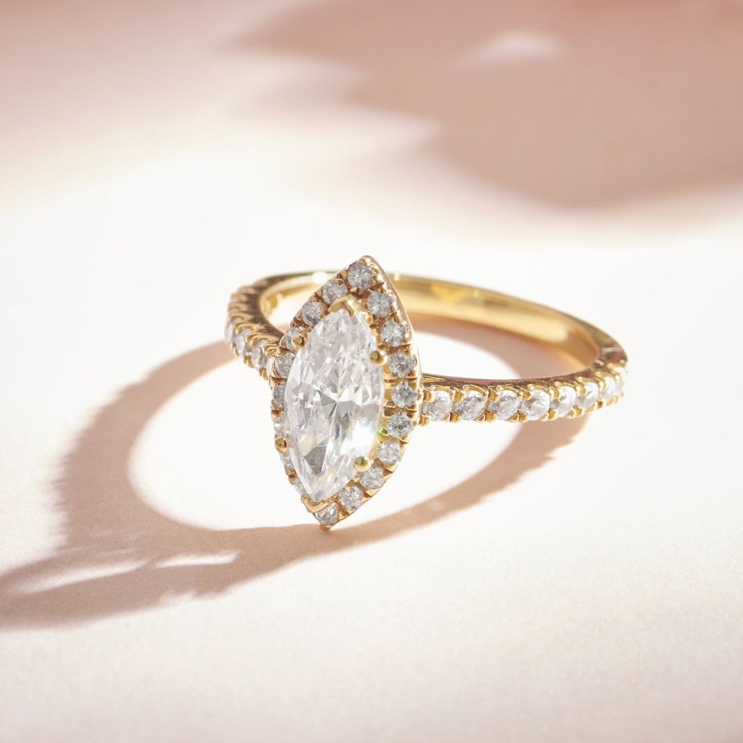 Fast ShippingRound Diamond Marquise Accent Gold Ring