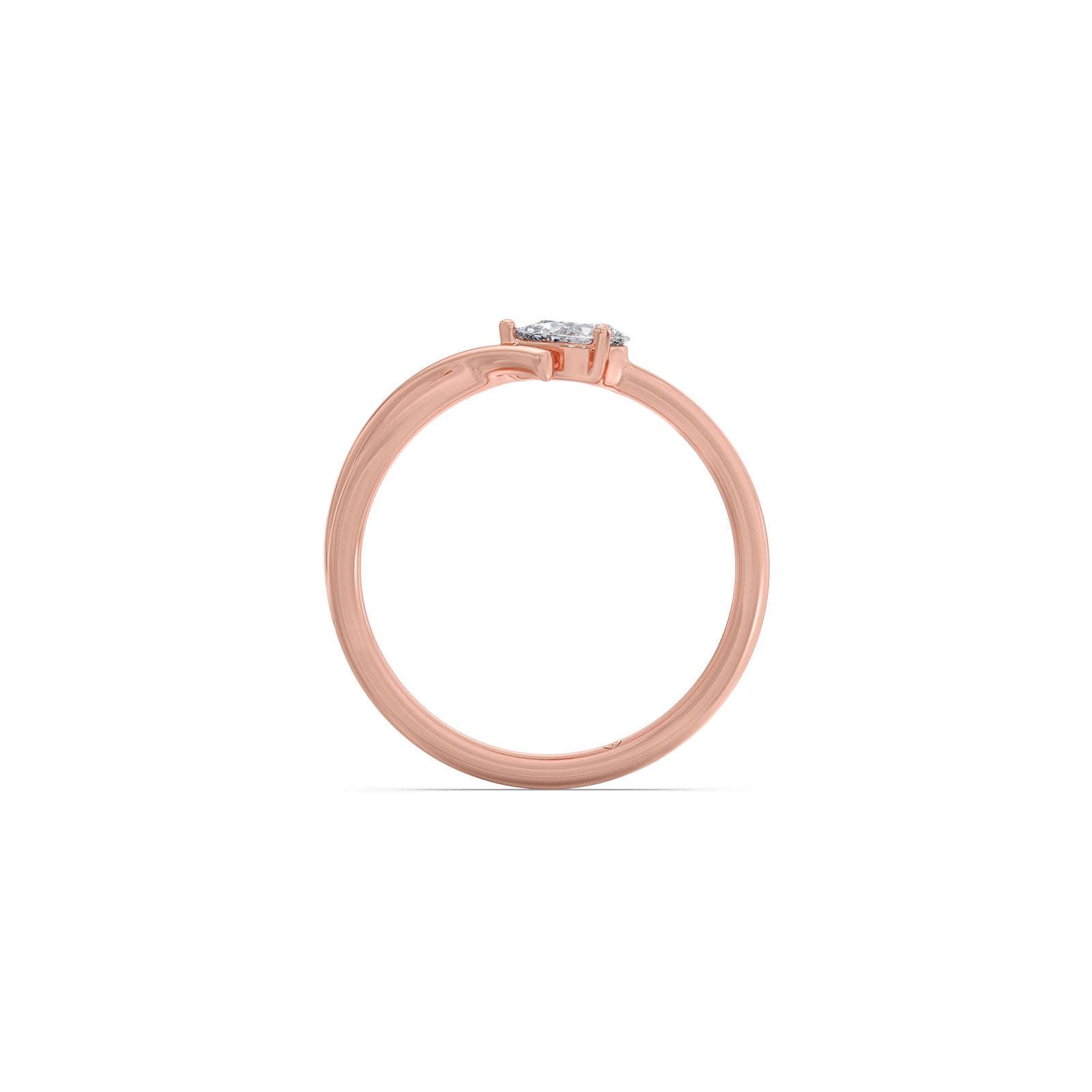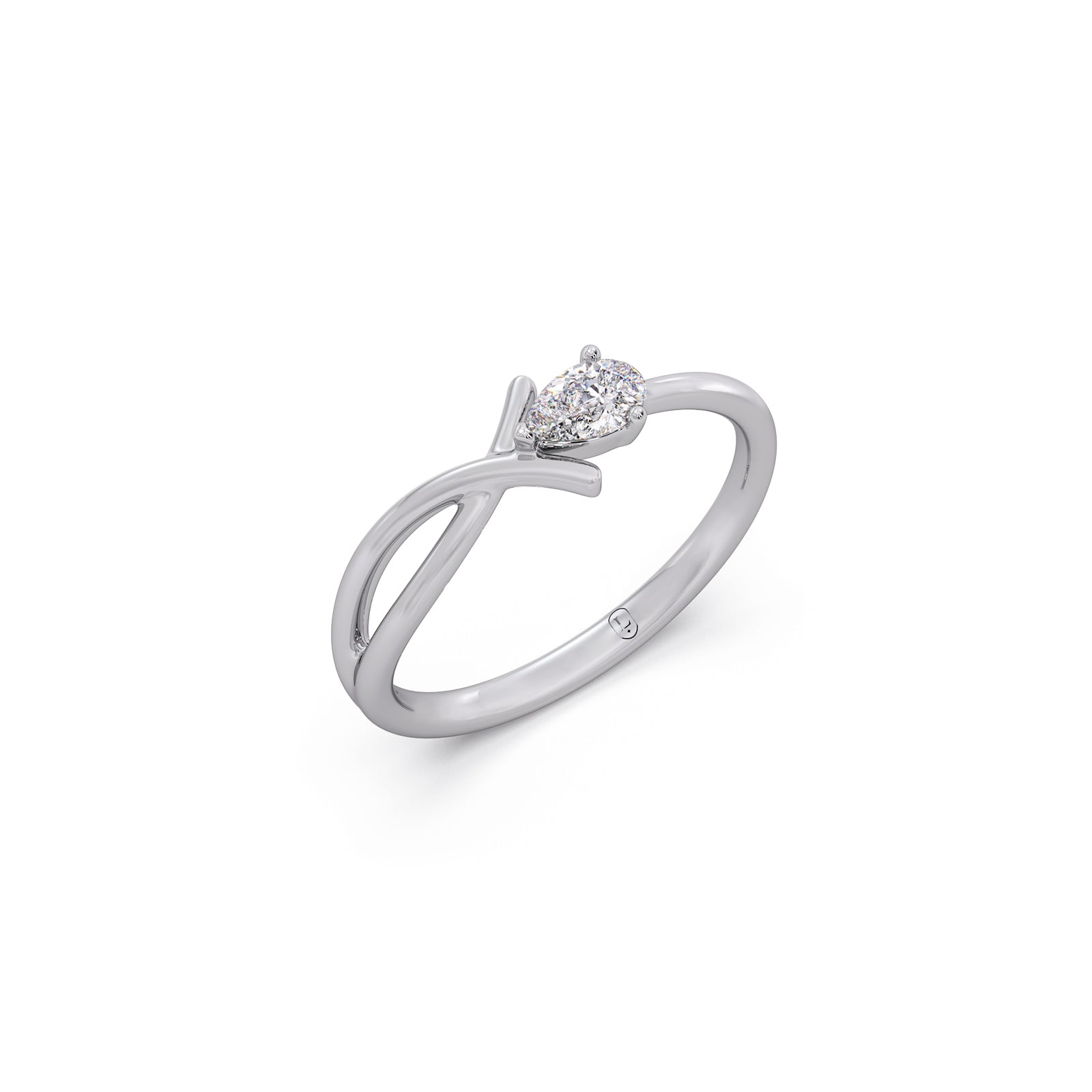 The 0.20ct Dewdrop Diamond Ring showcases a graceful pear-shaped diamond, evoking the purity of a morning dewdrop. Its asymmetrical shank design—one side sleek and minimal, the other artistically detailed—adds a unique, contemporary twist to this elegant and delicate piece.