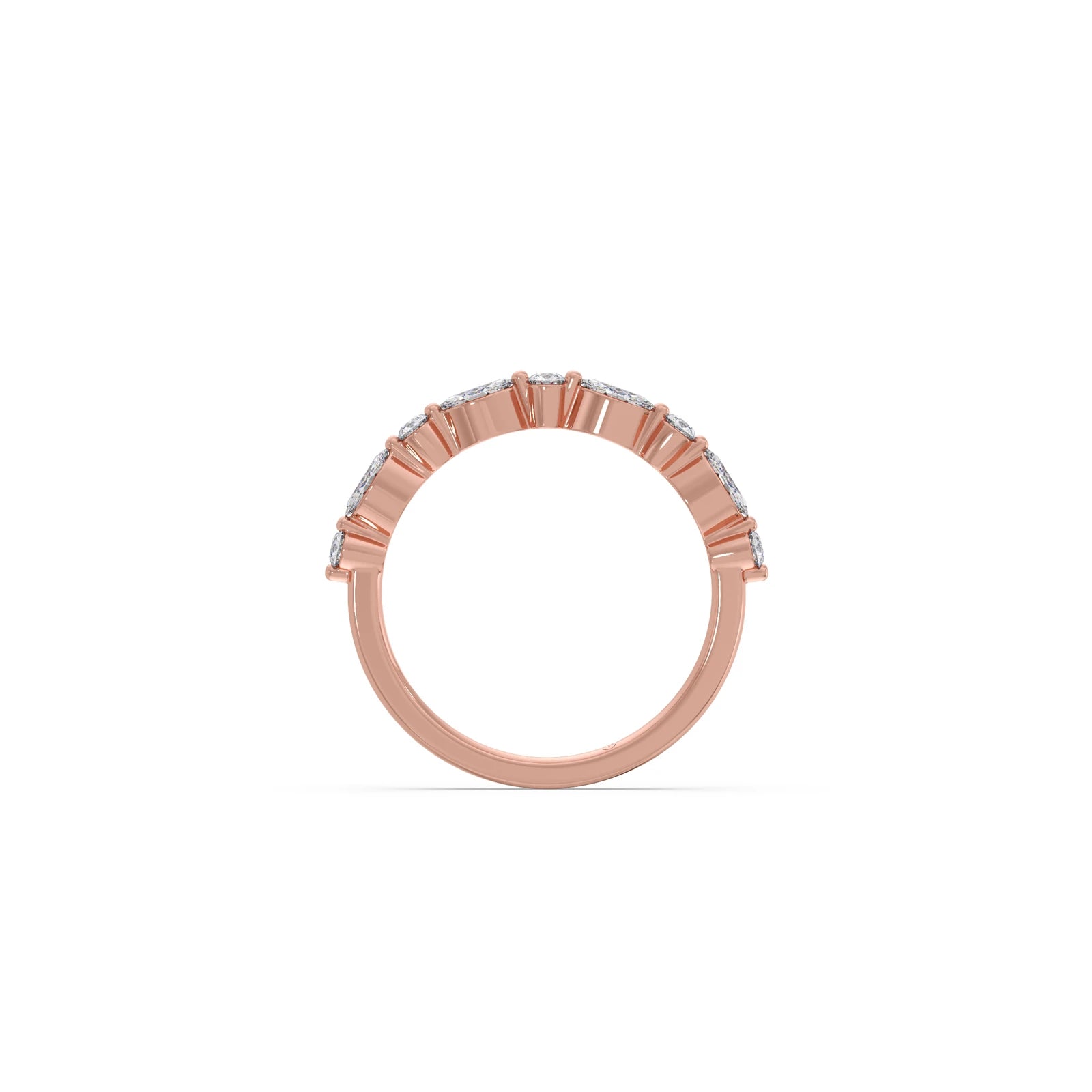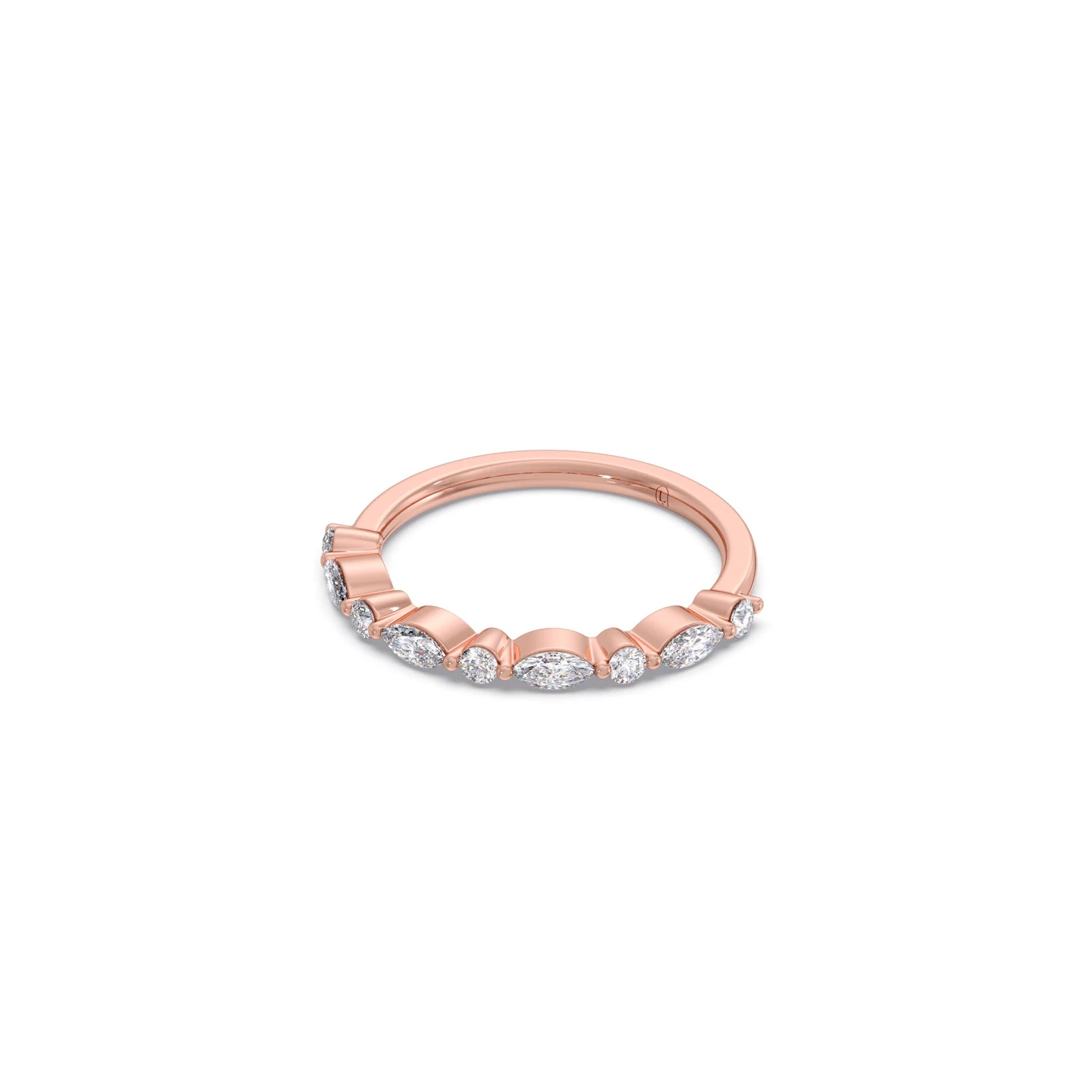 This unique band features a delicate row of marquise and round-cut diamonds, totaling 0.30 carats, set halfway around the ring. The alternating shapes create a distinctive sparkle and elegant design, perfect for everyday sophistication.