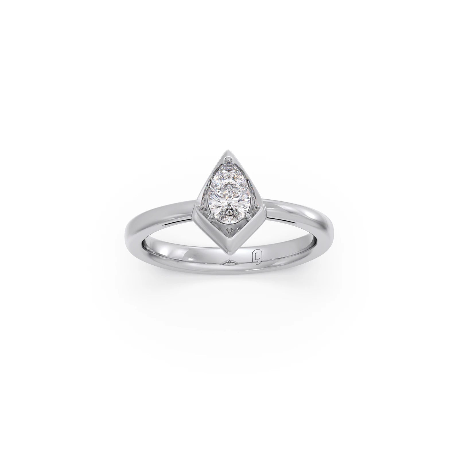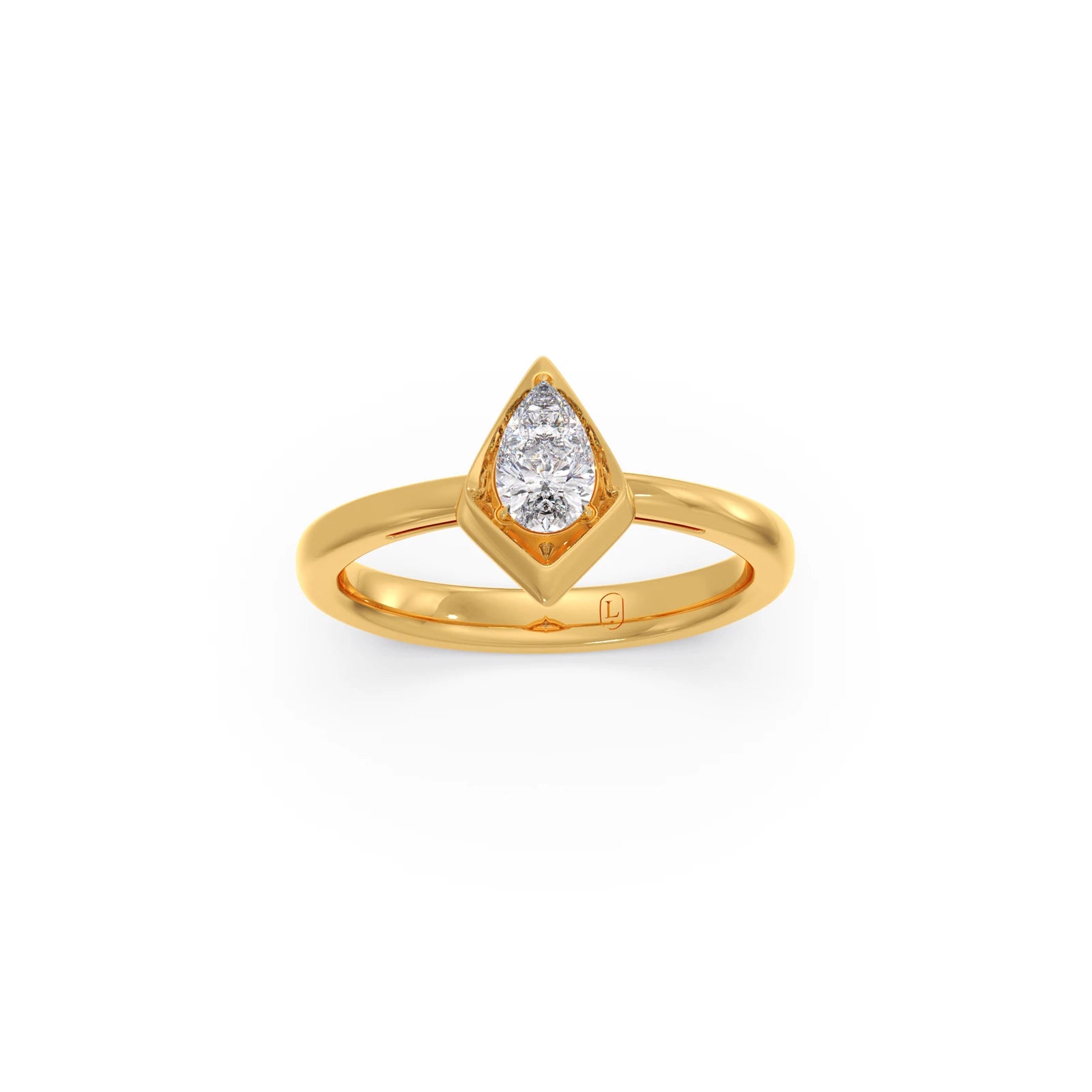 Designed for those who dare to be different, the inverted pear shape symbolizes uniqueness and a fresh perspective on tradition. The minimalistic band enhances the beauty of the center stone, allowing it to shine with brilliance and grace. Crafted in your choice of precious metals, this ring is a perfect blend of modern artistry and classic romance—ideal for a love that stands apart.