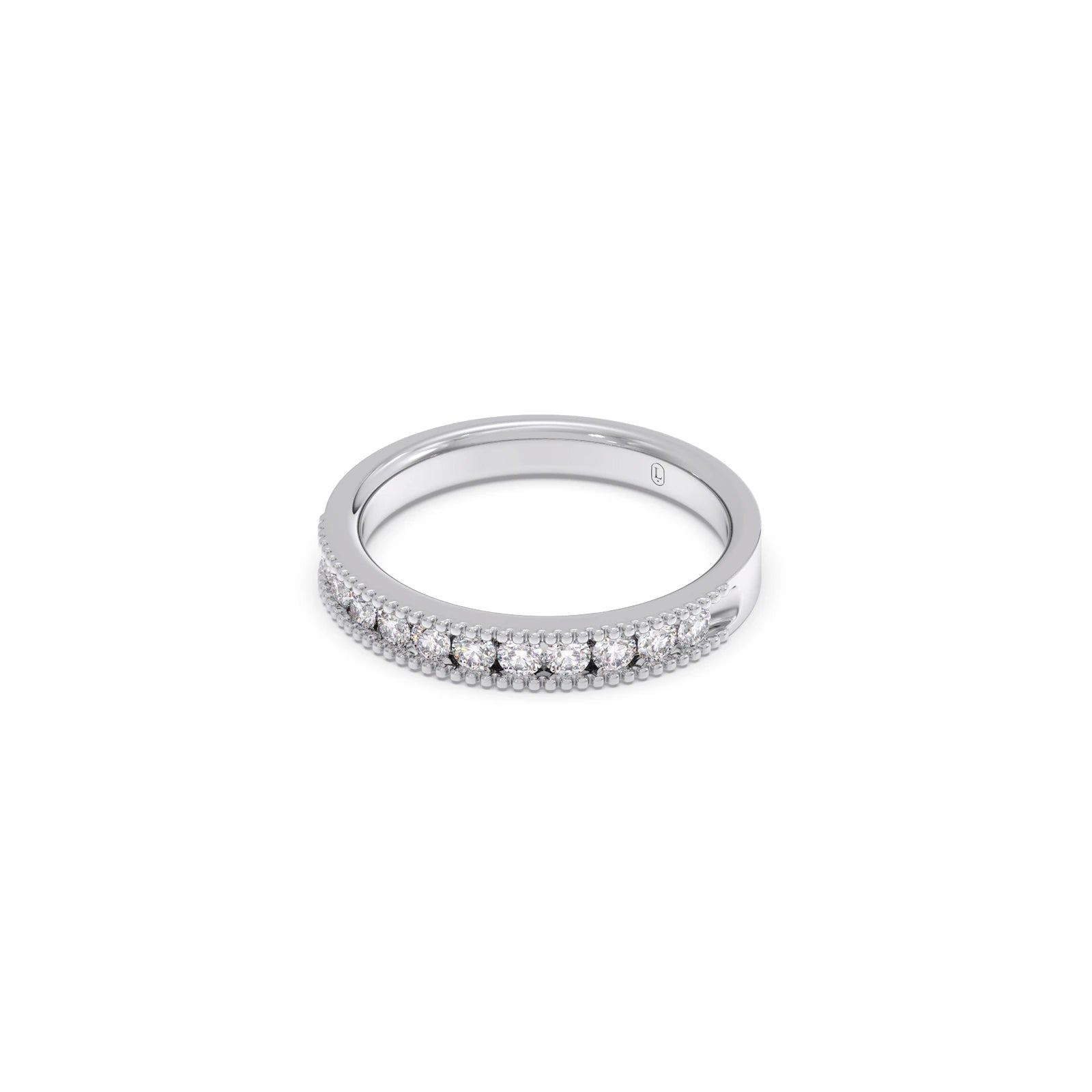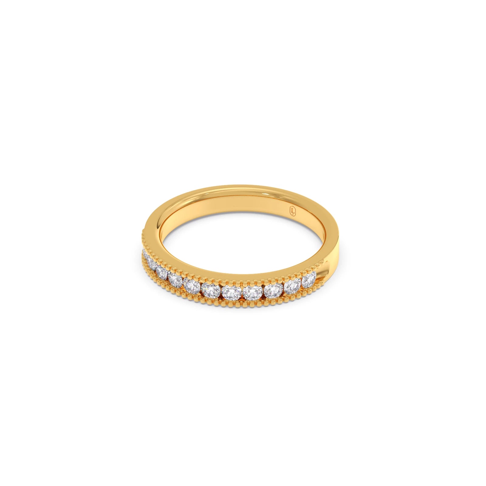 Eternity band features a continuous row of dazzling round-cut diamonds, totalling 0.385 carats, securely set in a sleek channel setting. The design ensures a comfortable fit and a seamless sparkle that encircles the finger, symbolizing everlasting love or commitment