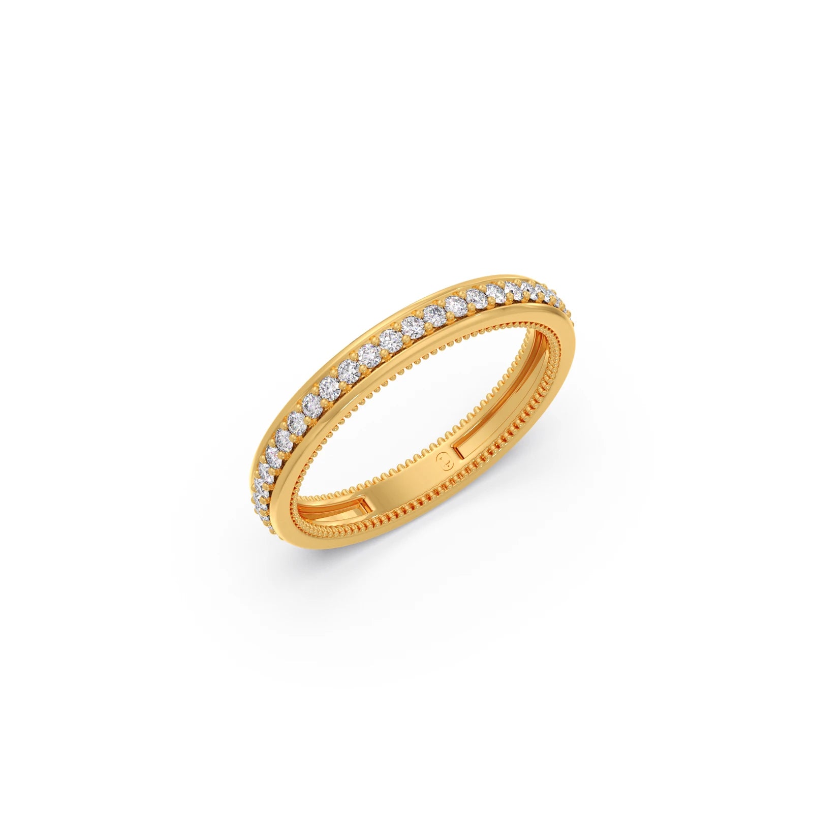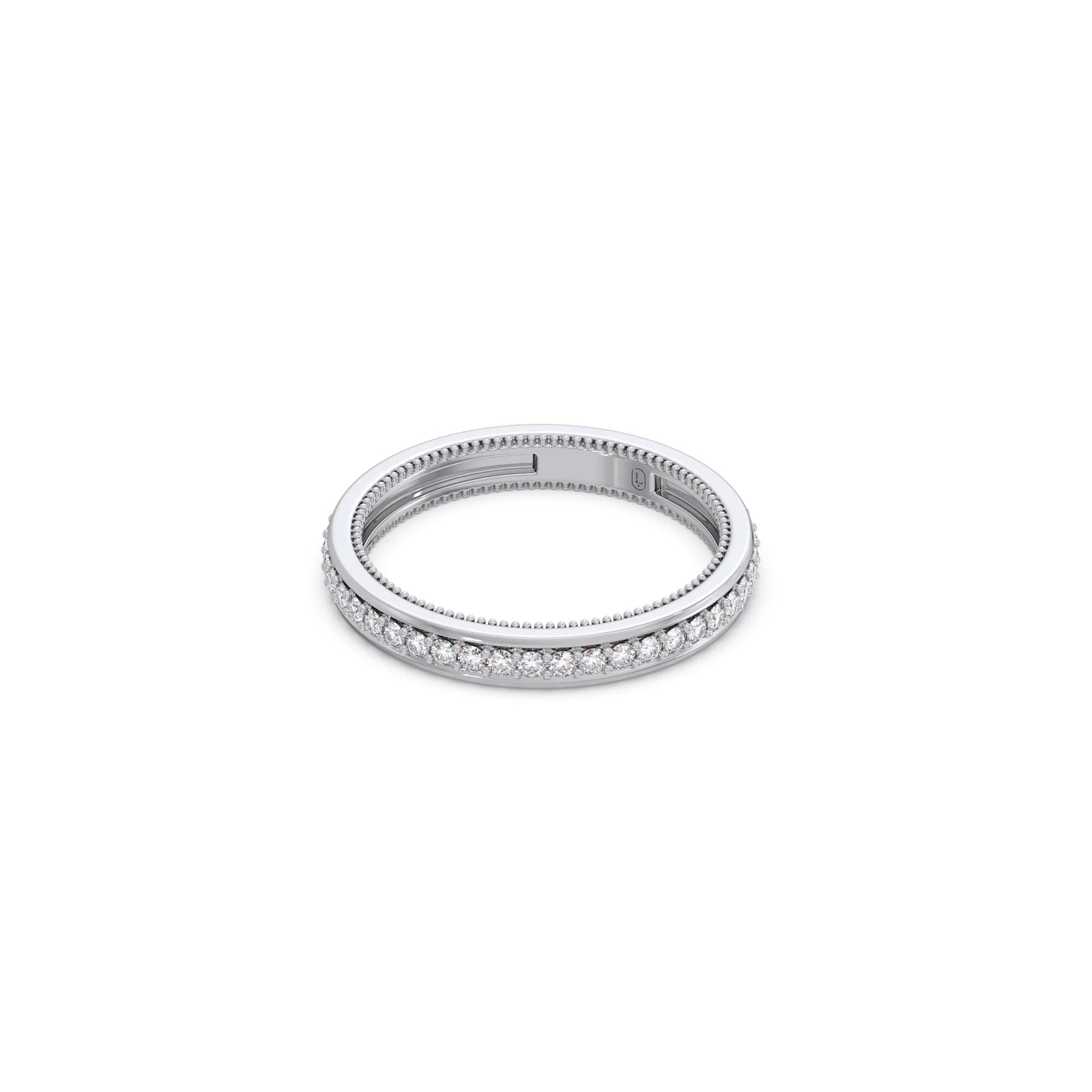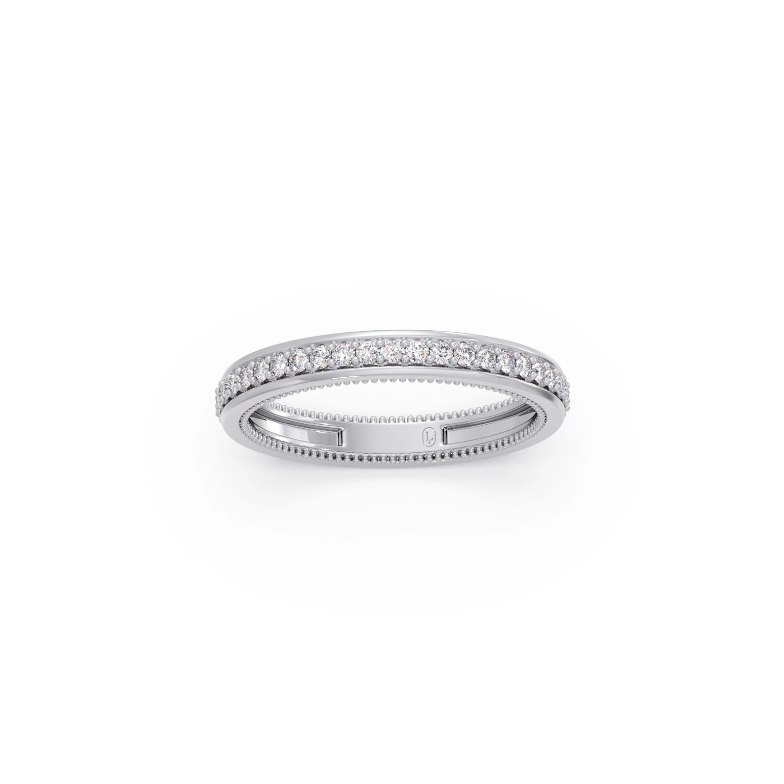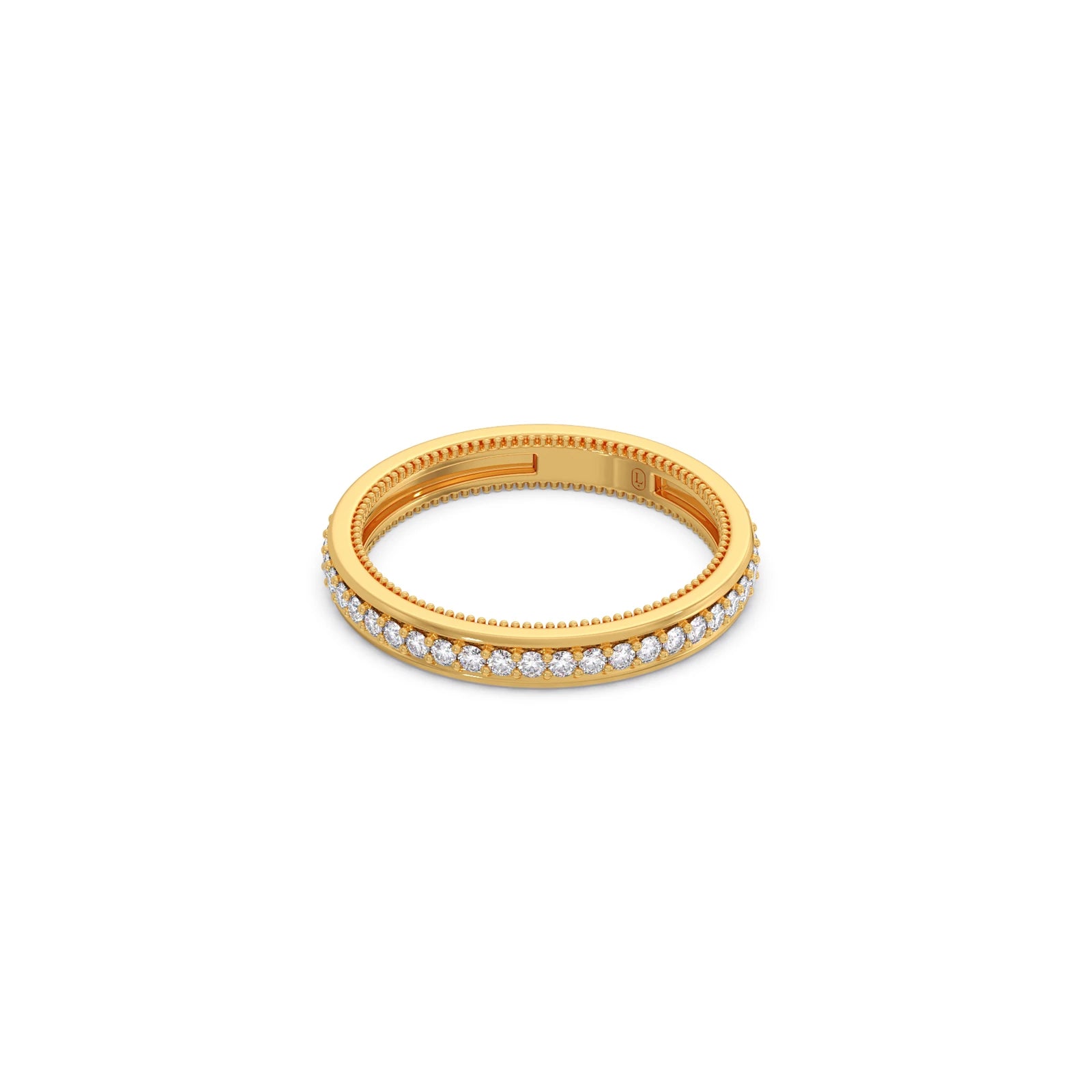 Band features a row of sparkling diamonds totalling 0.44 carats, set halfway around the ring in a pave style. 1 The tiny diamonds are closely set, creating a continuous shimmer. Crafted in a precious metal like gold or platinum, this half eternity band offers a delicate yet radiant look, perfect for stacking or wearing alone