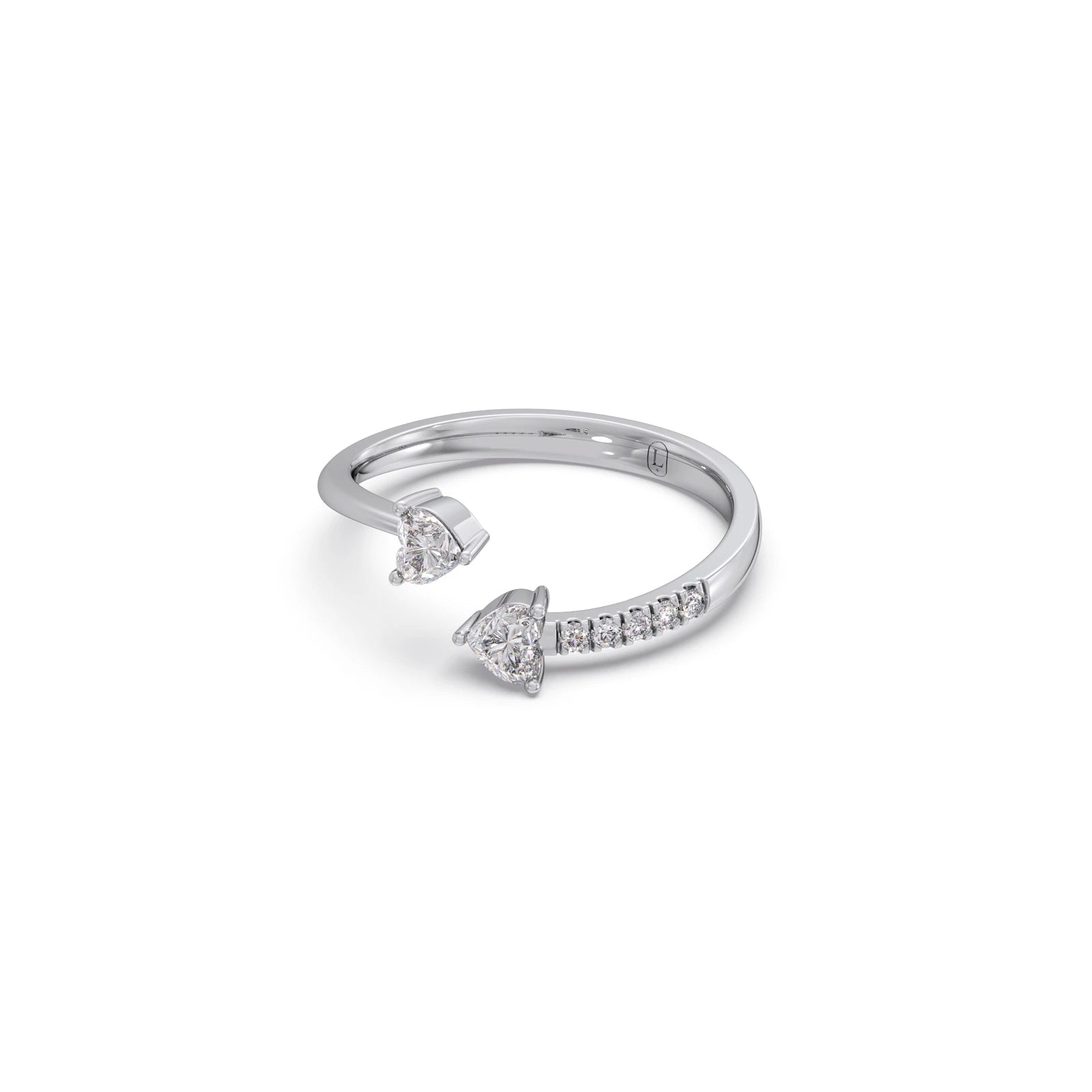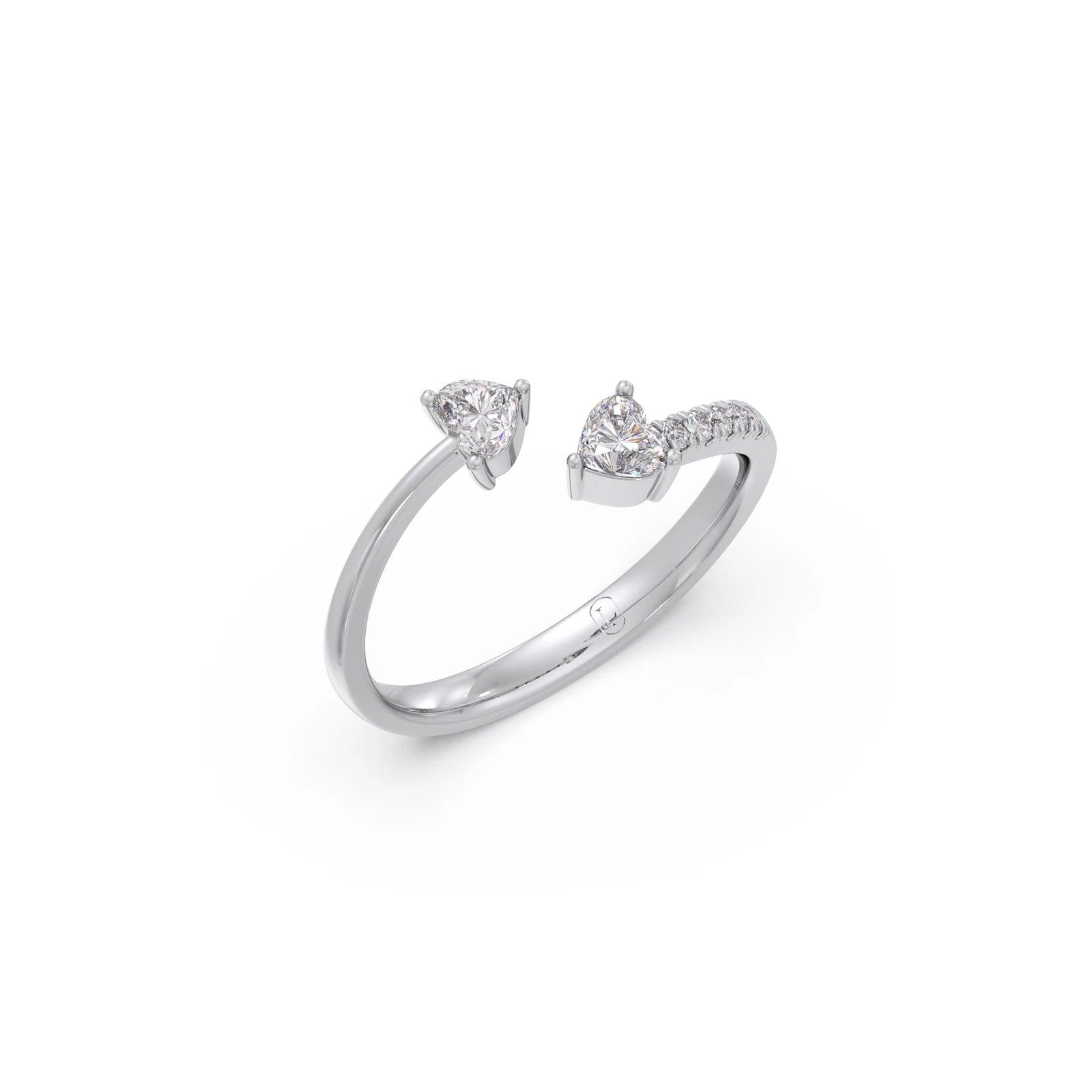This ring isn't just a jewel—it's a silent story, a reminder that love isn’t just about the destination but about cherishing the little moments. One heart is kissed by a trail of shimmering diamonds, representing the beautiful path you’ve walked, the memories made & the promises whispered under moonlit skies. The second heart reflects where love stands today: full, glowing, and deeply connected. Each curve of the band mirrors the gentle turns of a relationship—the uncertainties, the discoveries, the growth.