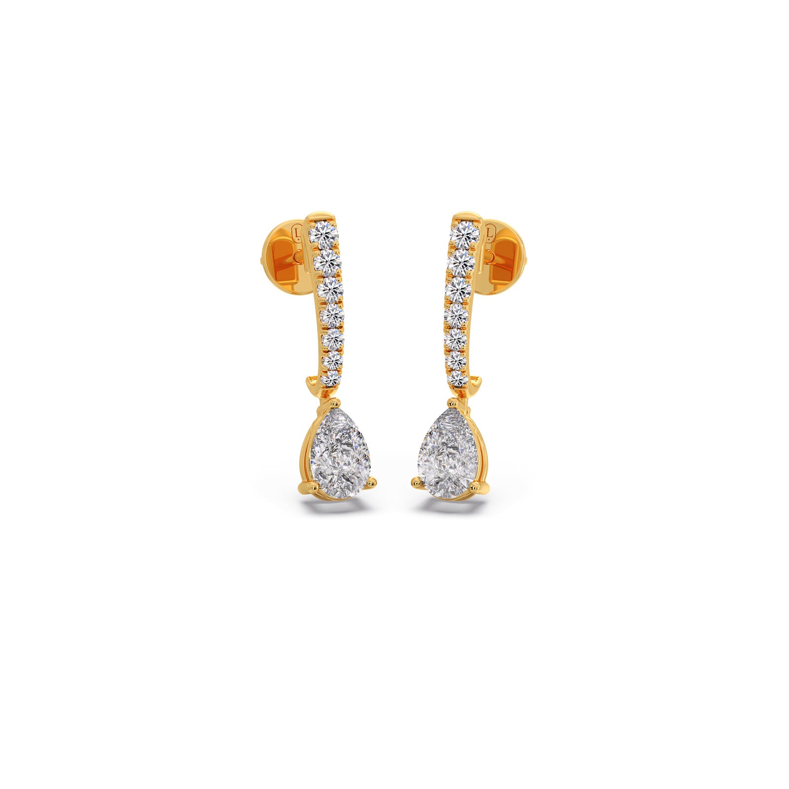 The ultimate expression of hoop luxury. The 0.50 ct Pear Solitaire Cascade Hoops Earrings feature a dazzling cascade of diamonds leading to a focal point: a magnificent pear-cut solitaire. This design is both classic and unique, ensuring unforgettable shine and movement.