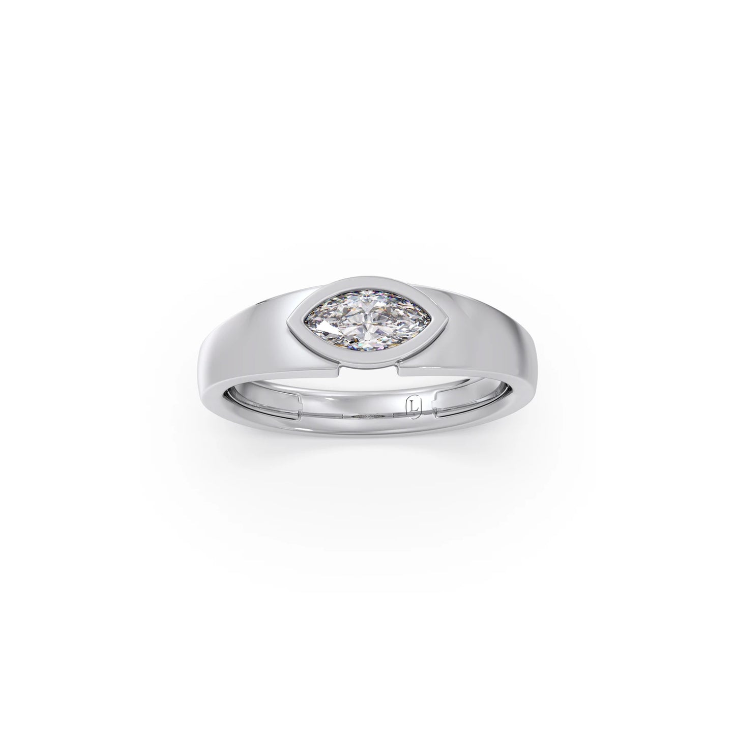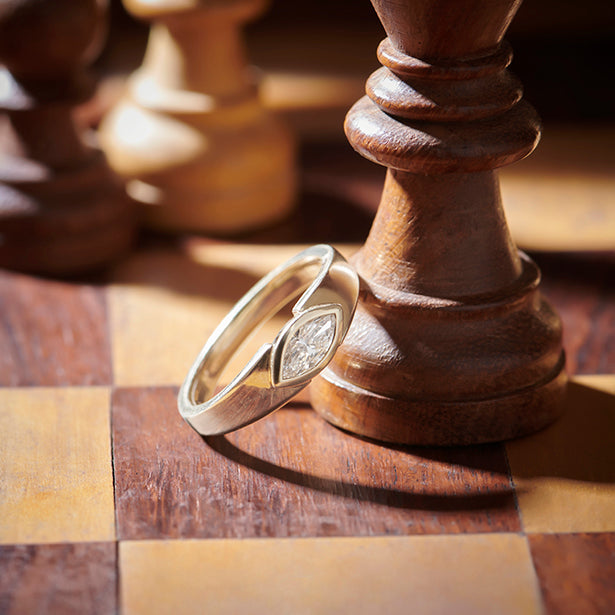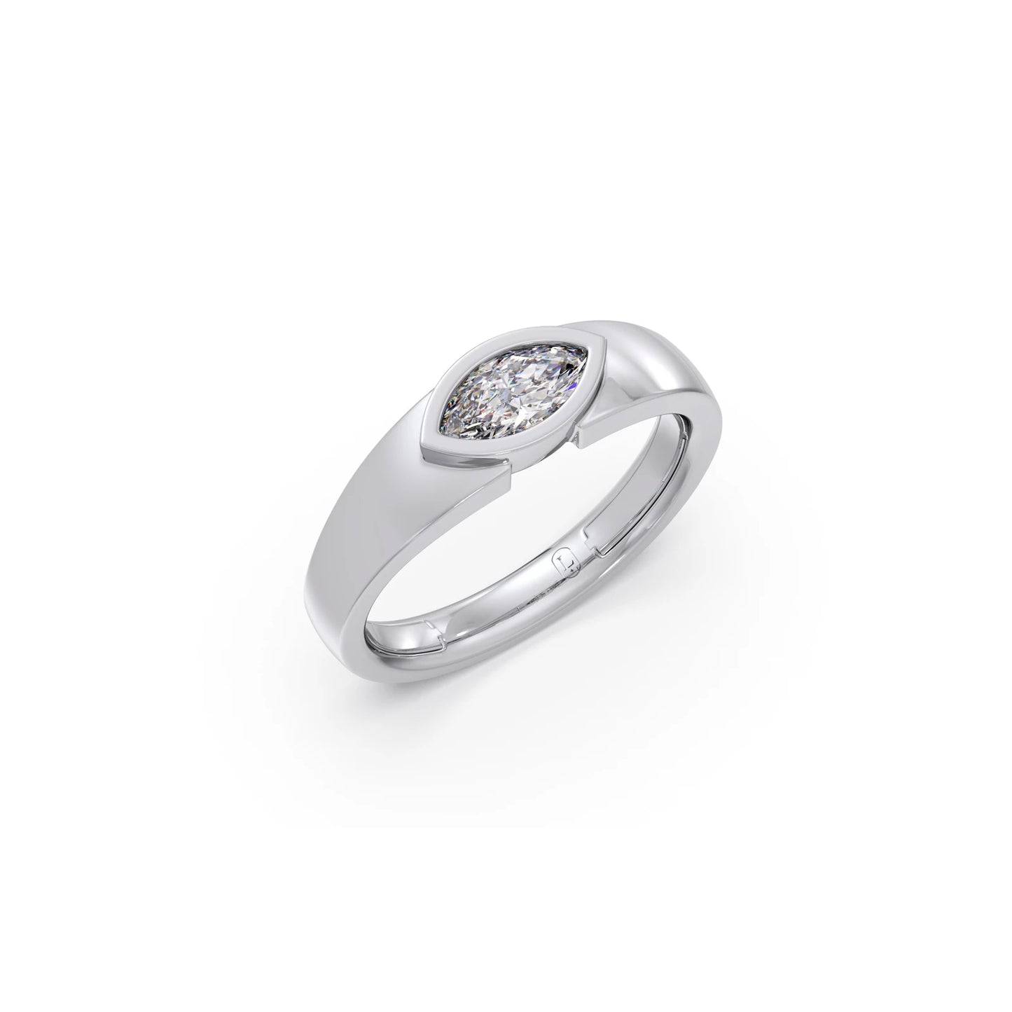 The marquise cut - slender, elongated, and full of motion - has long symbolized forward momentum and grace in direction. The 0.51 ct. Lucira Grown Diamond at the center of this ring reflects that same spirit: dynamic, confident, and endlessly elegant. The diamond is held secure in a bezel setting, allowing light to travel uninterrupted across its tapered facets. This is a ring that mirrors the woman who wears it, one who moves forward with bold power.