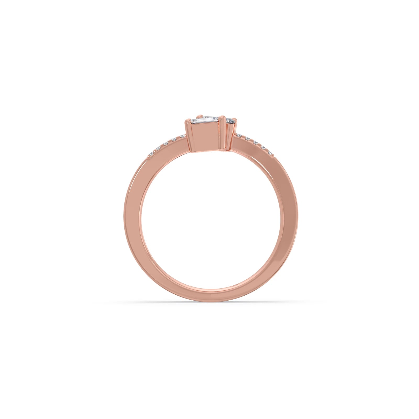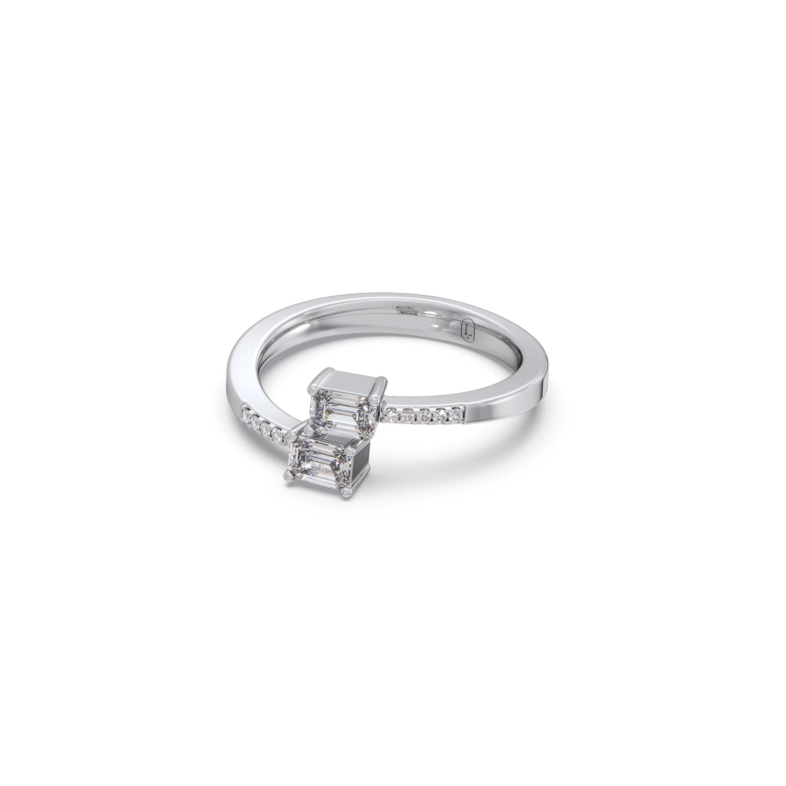 This exquisite ring is a timeless celebration of symmetry, grace, and deep emotional harmony. The radiant emerald-cut diamonds, each perfectly framed to face one another – like two souls in conversation, eternally connected. The Pavé diamond adds a soft sparkle-like quiet moments that shine the brightest in a relationship. The Open-ended wrap provides a modern touch that symbolises an unspoken bond—a promise to meet halfway, always.