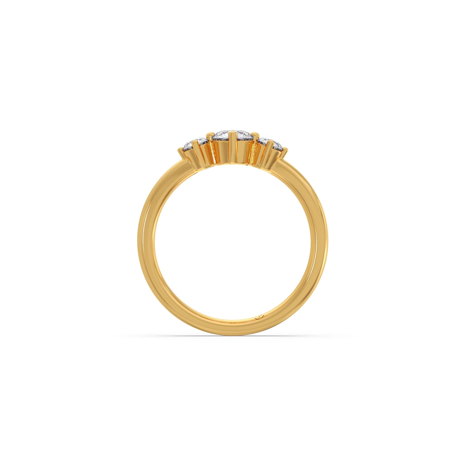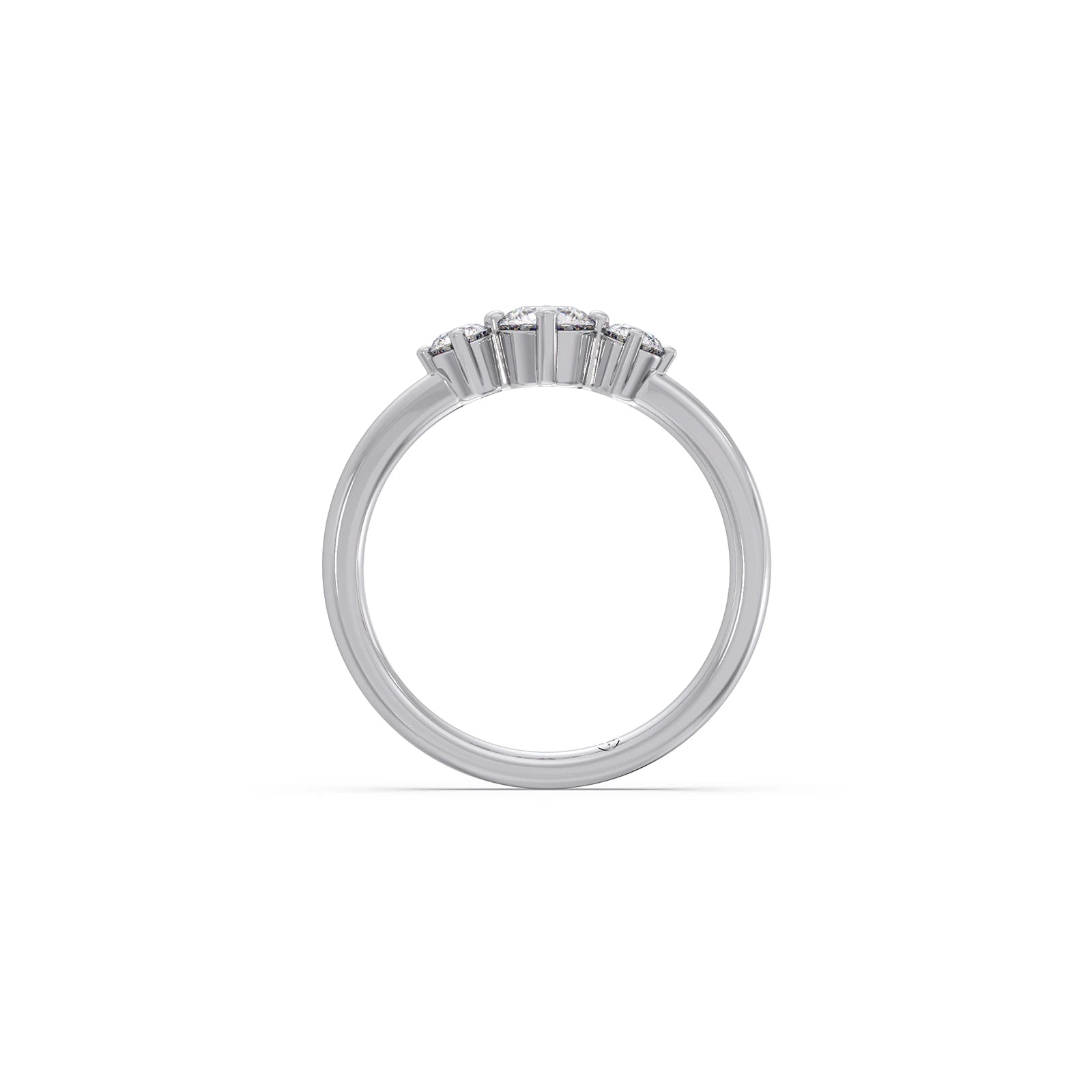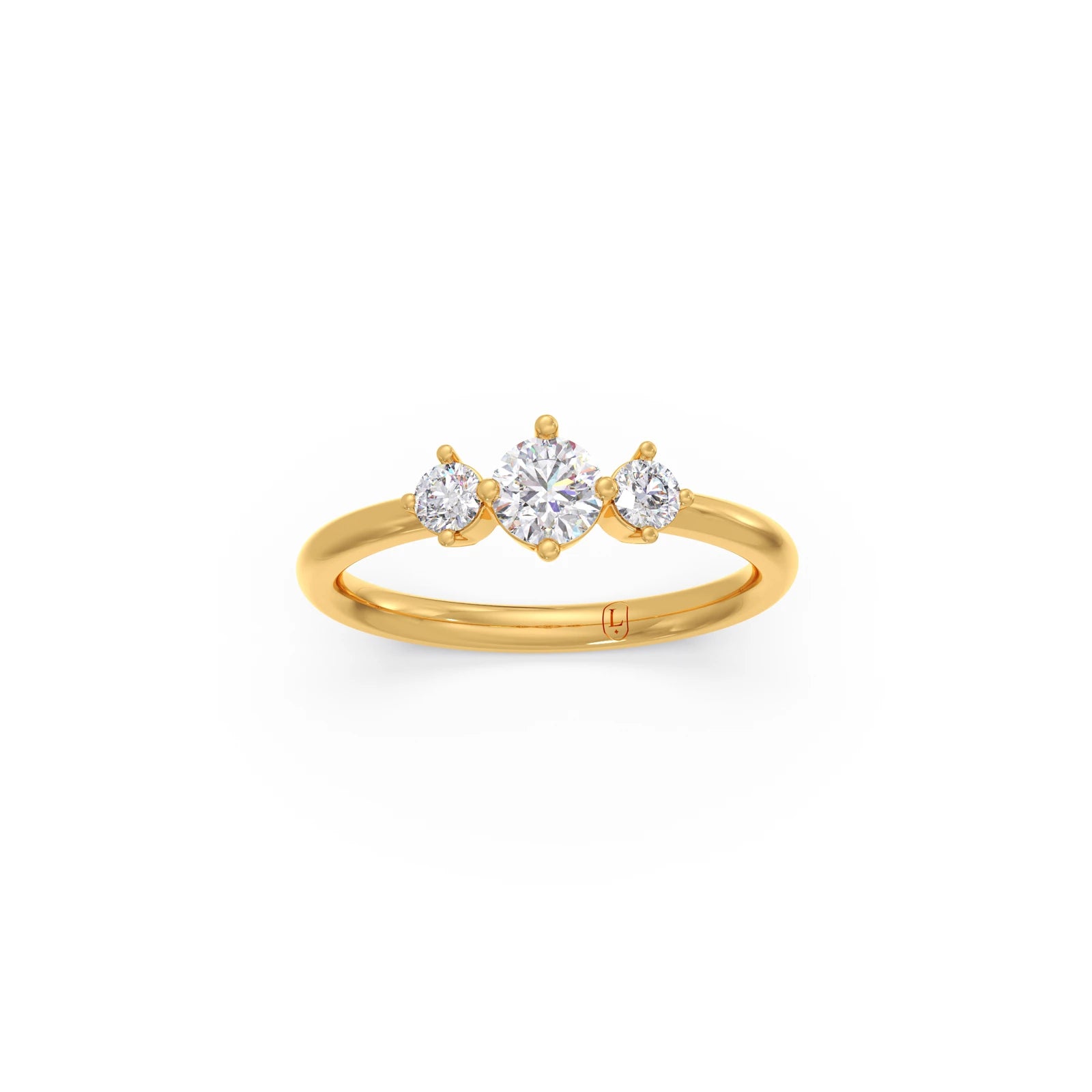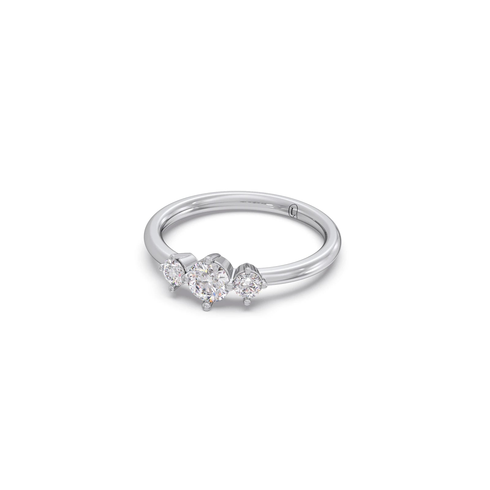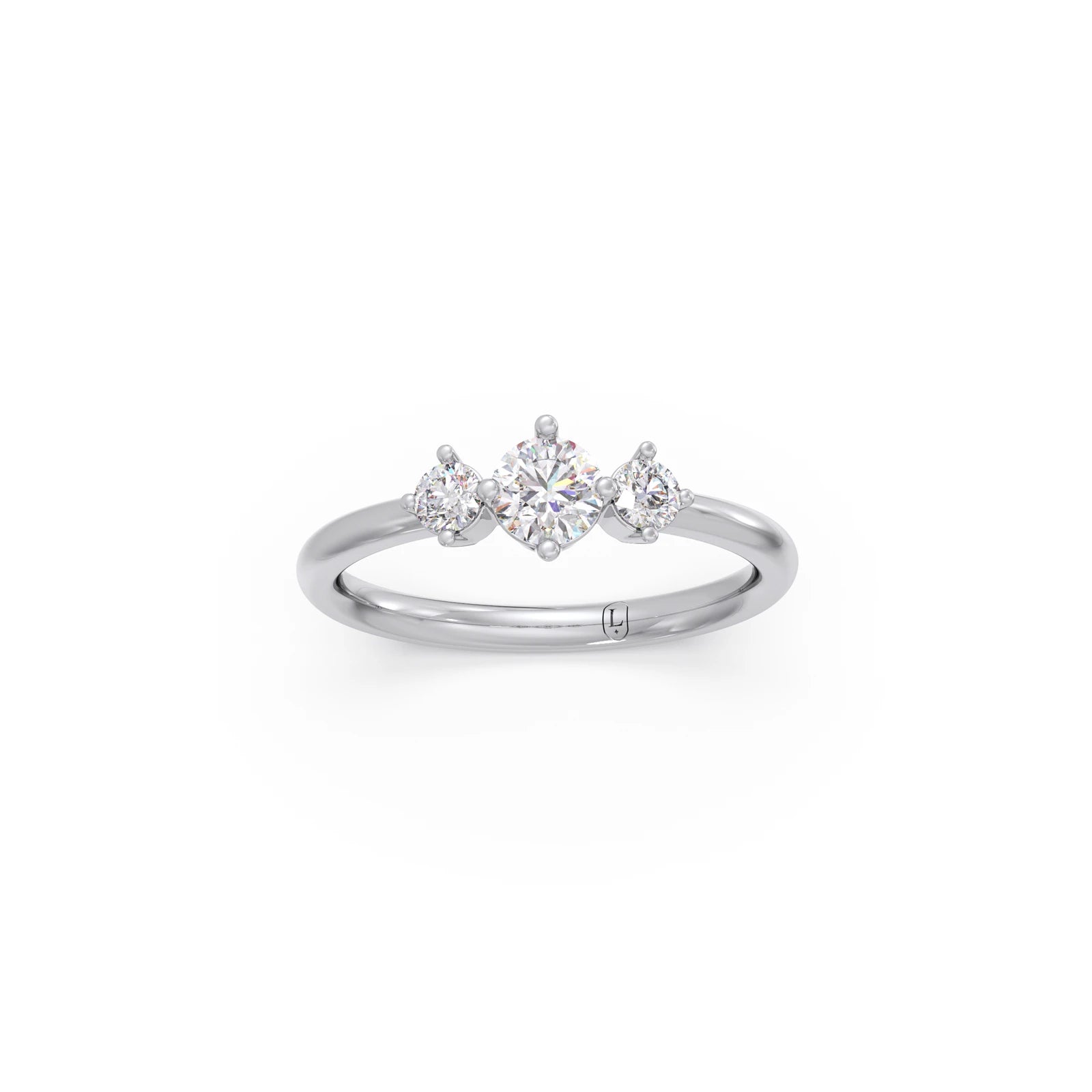 This elegant three-stone ring showcases brilliant round diamonds held securely by classic prongs. The central diamond, flanked by two smaller stones, symbolises past, present, and future. With a total weight of 0.59 carats, this timeless design offers a meaningful and sparkling statement. Perfect for everyday elegance or a special occasion.