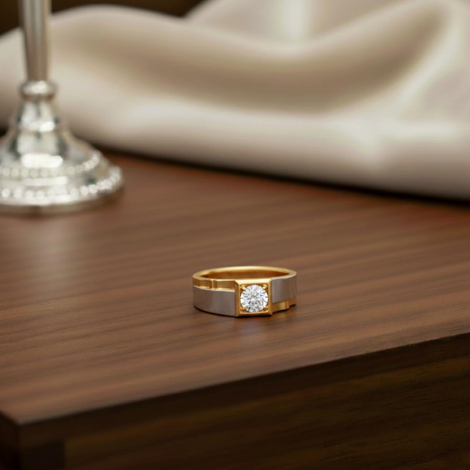 Dual Tone Luxurious Diamond Geometric Men's Band