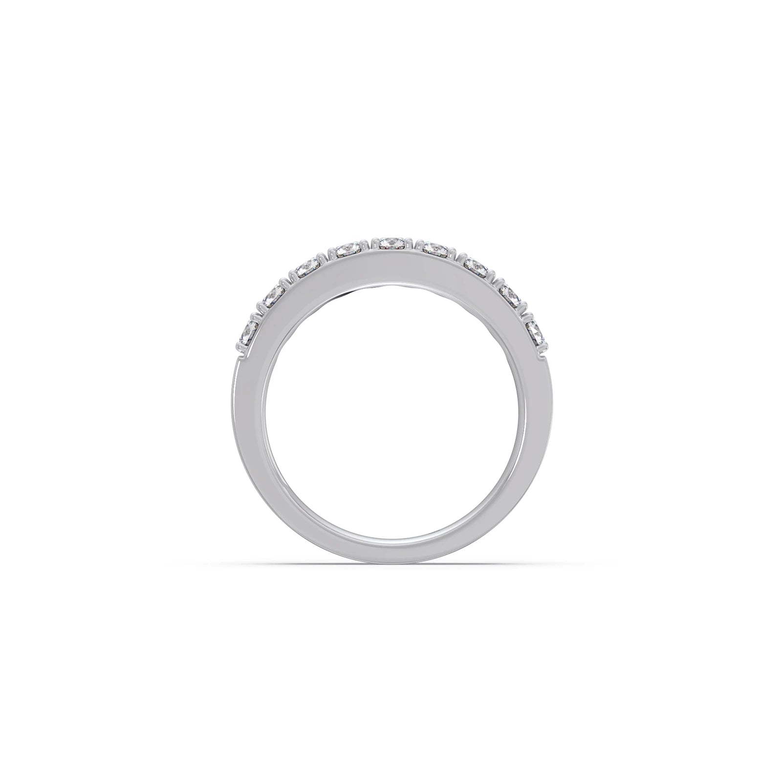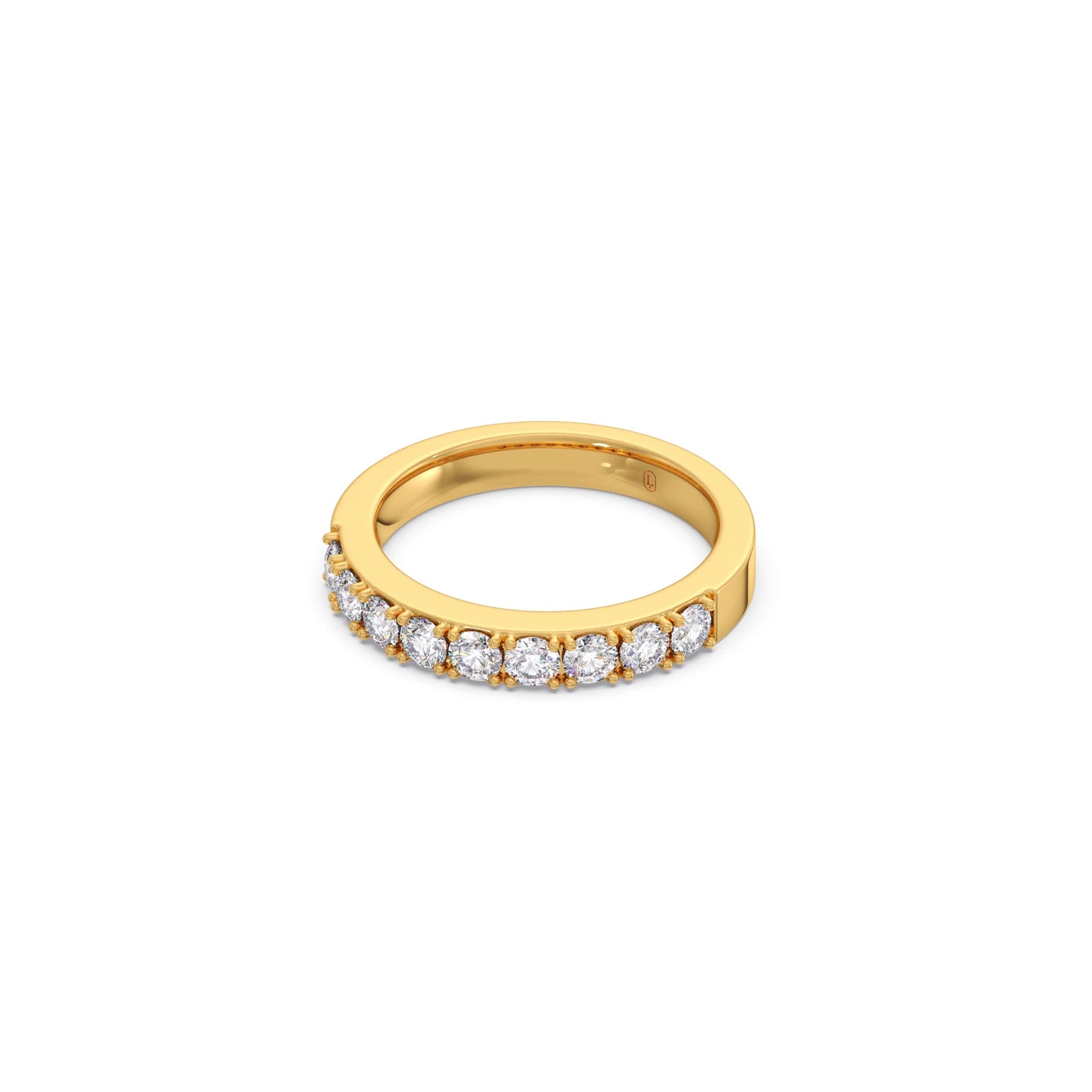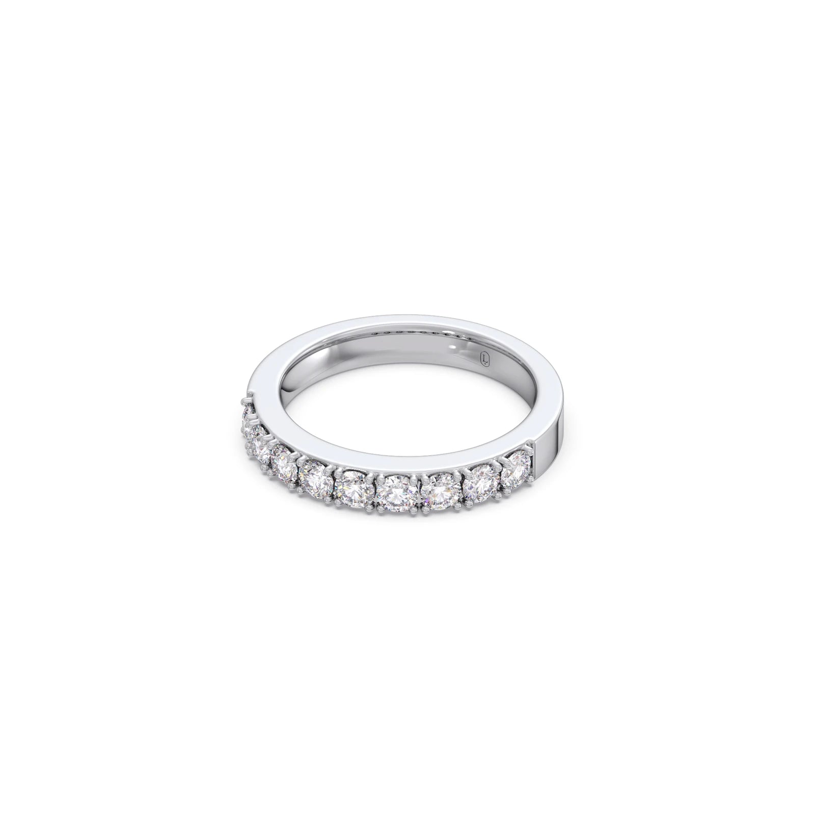 This elegant band features a row of sparkling round-cut diamonds, totaling 0.702 carats, set halfway around the ring. The classic design offers timeless brilliance and a comfortable fit, perfect for everyday elegance or stacking.