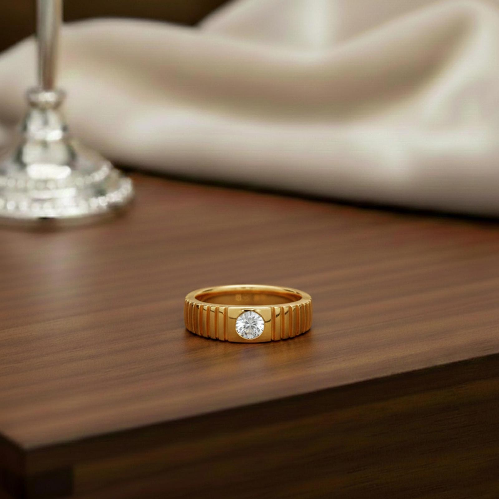 0.73 Carat Grooved Diamond Men's Classic Ring