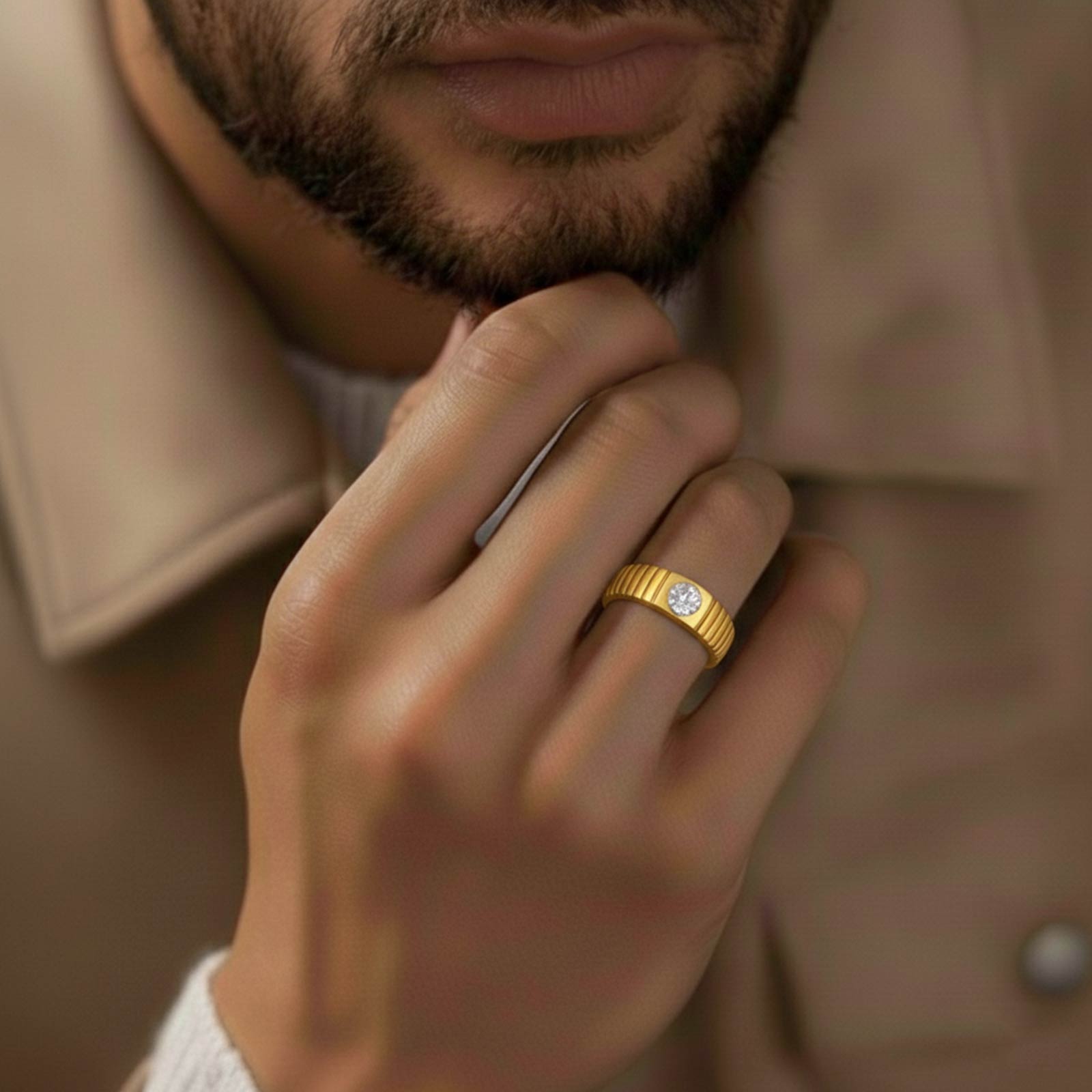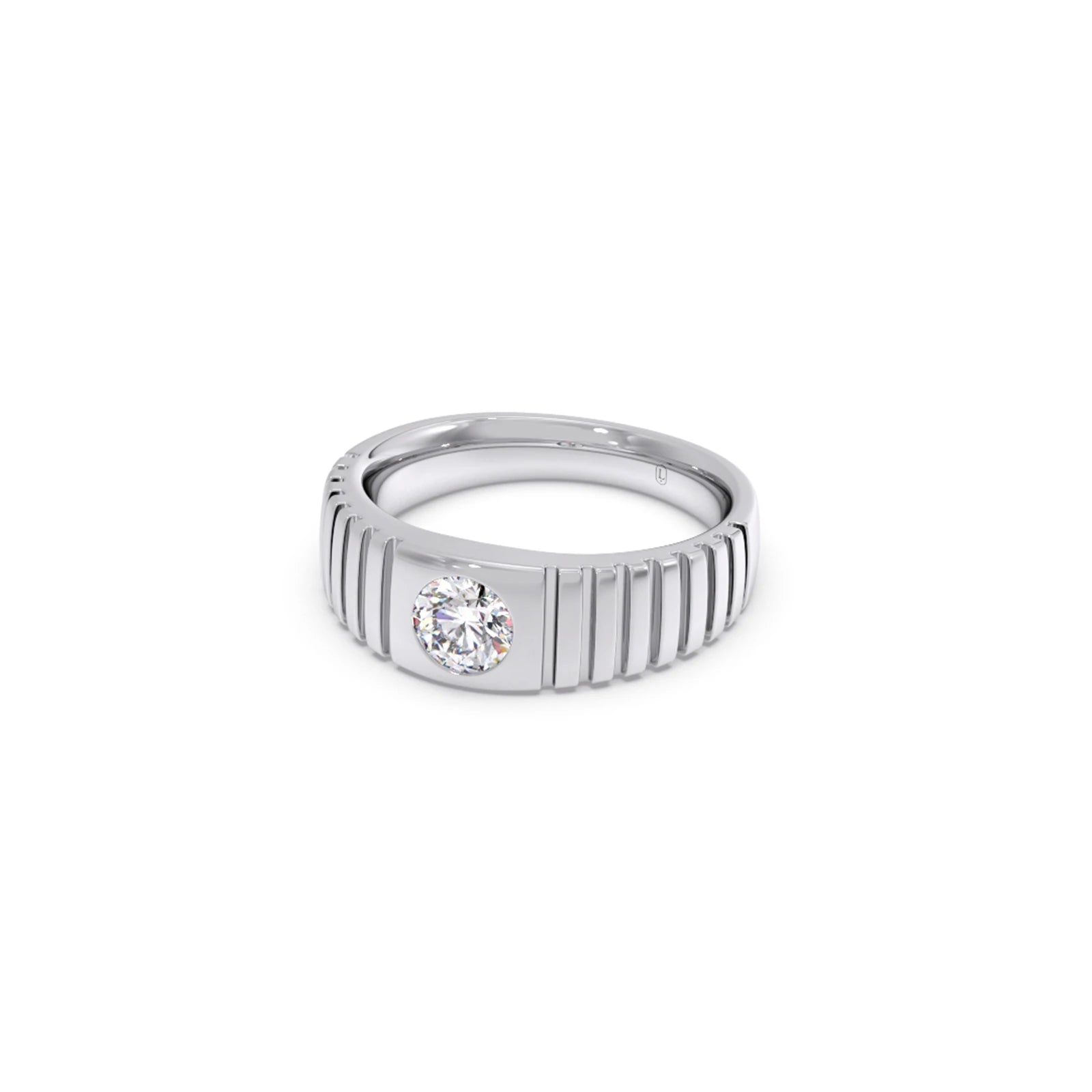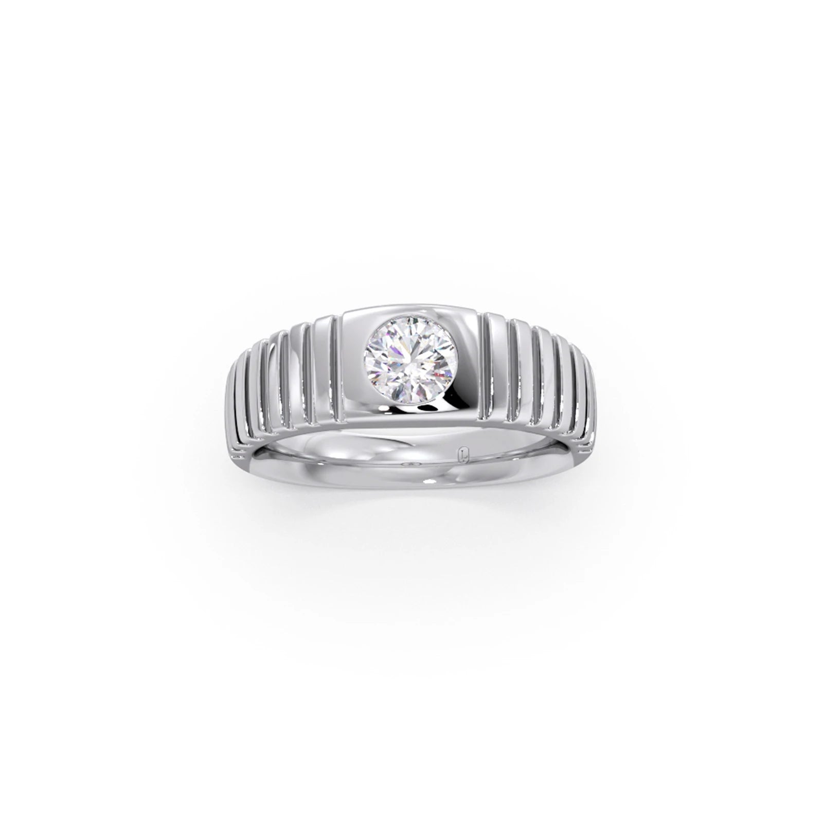 This classic men's ring features a 0.73-carat diamond, set in a sleek and modern design with a grooved band. The ring exudes a sense of sophisticated masculinity, making it a perfect accessory for any occasion.