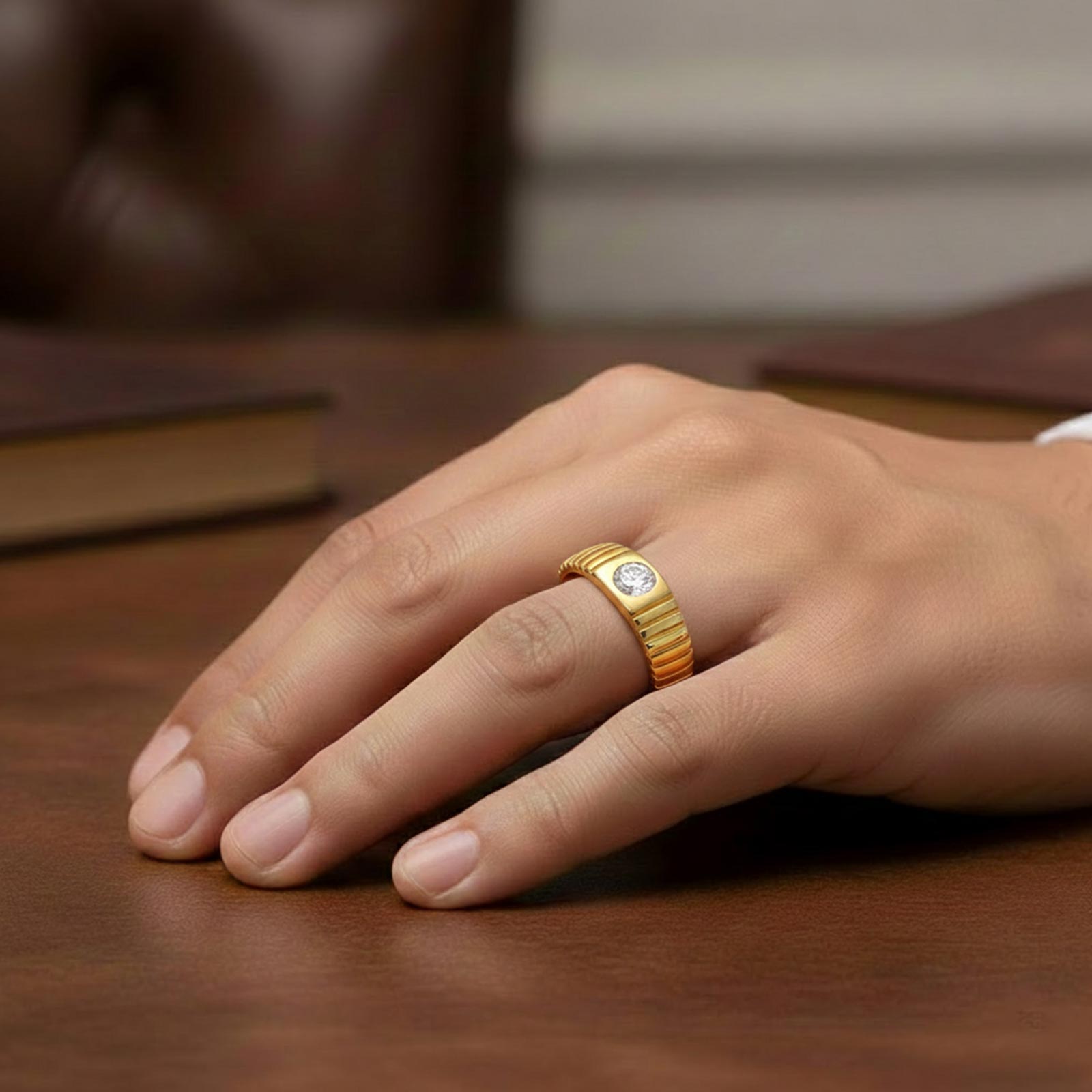 Mens Textured Solitaire Ring