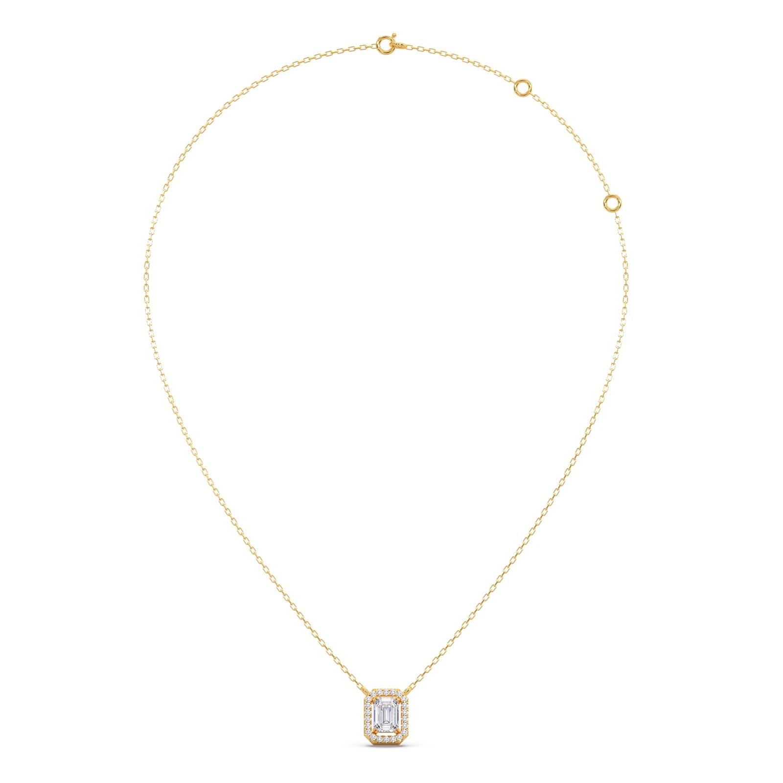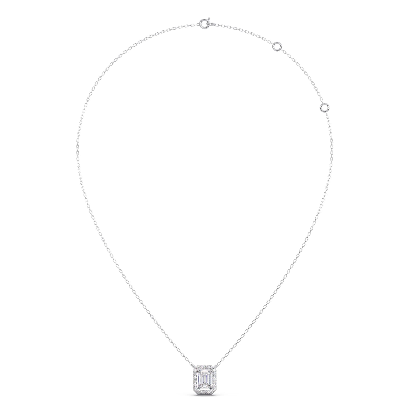 0.81Ct Emerald-Cut Diamond Halo Pendant Necklace
