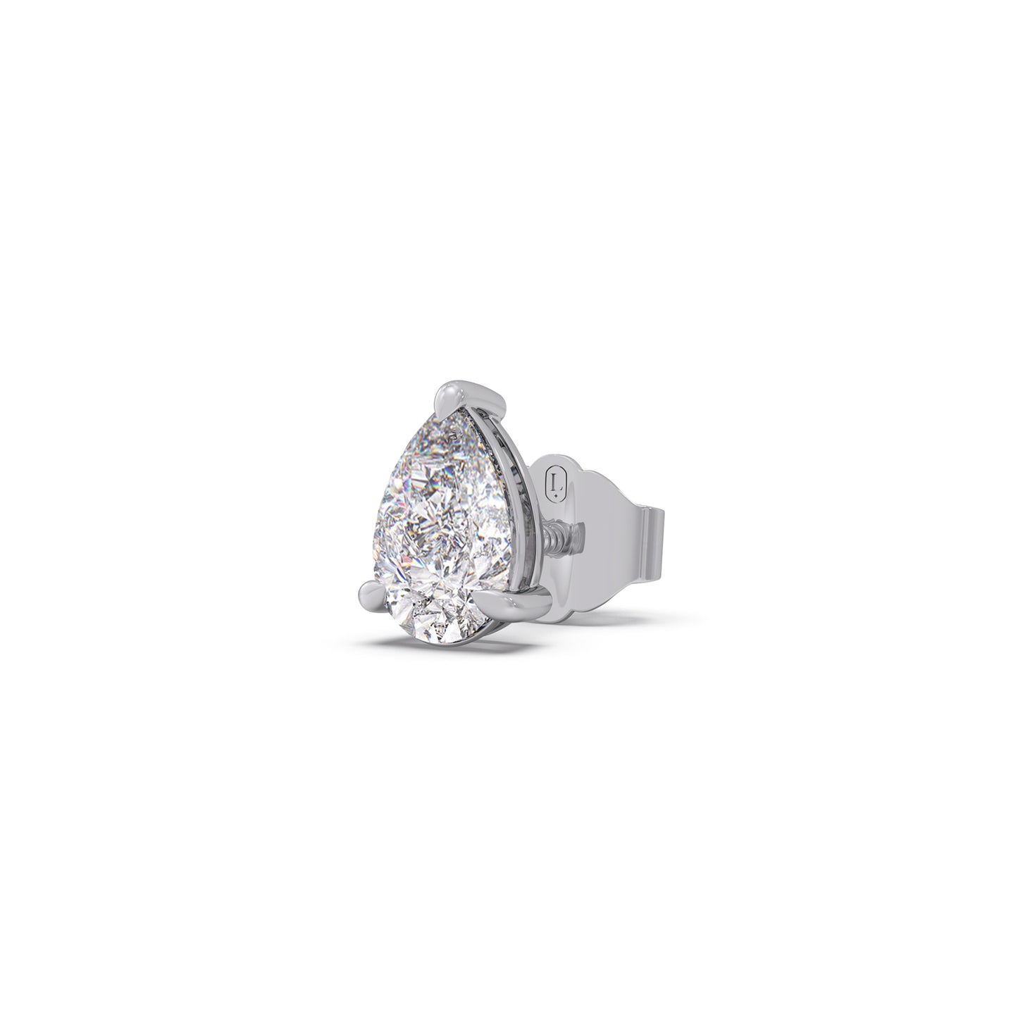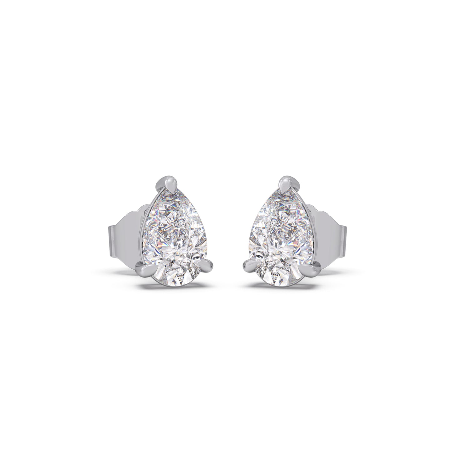 Unmatched elegance is captured in this 1.01 ct pairing. The sophisticated pear-shaped solitaire is set to maximize its fire and dramatic length, providing continuous, breathtaking brilliance. An heirloom-quality investment that offers a distinct and dazzling alternative to the round stud.