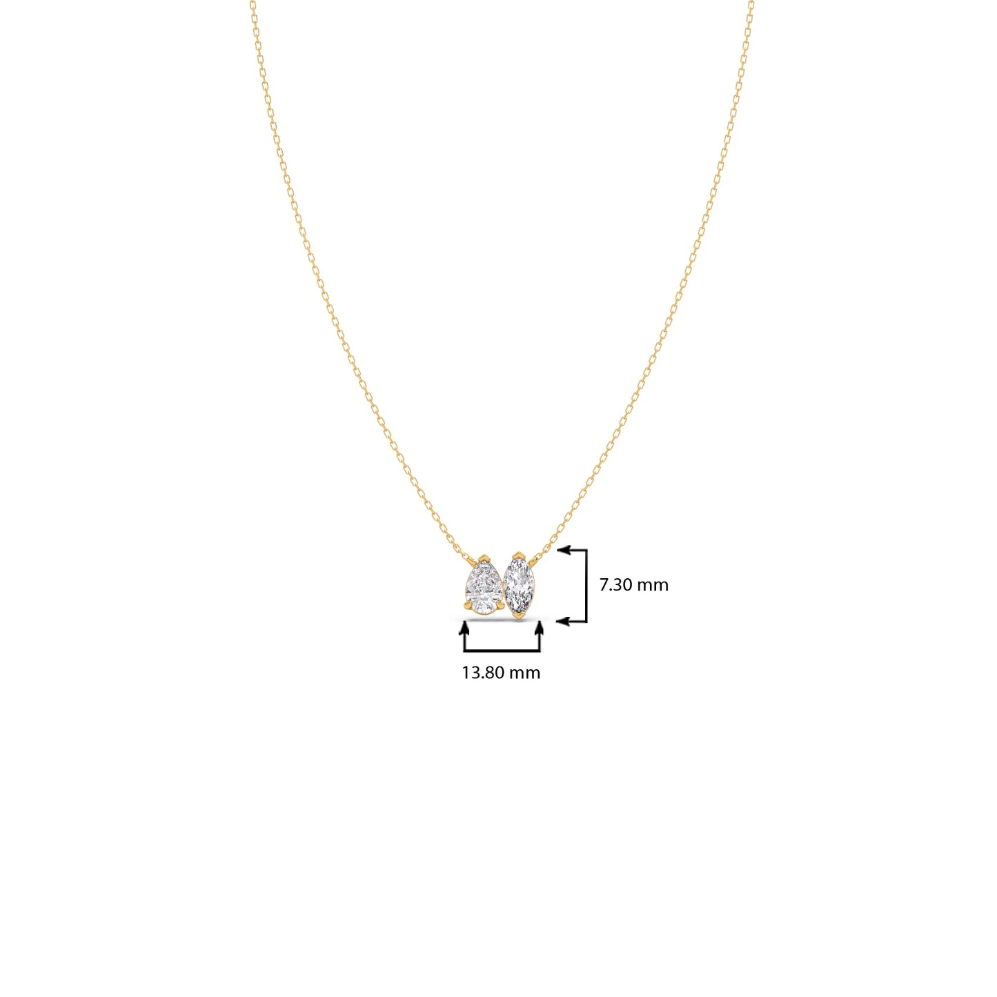 This exquisite 1.13ct pendant features a captivating interplay of a sleek marquise-cut diamond and a graceful pear-cut diamond. Their distinctive shapes, beautifully combined, create a modern yet timeless design with exceptional sparkle. Suspended elegantly, this pendant adds a sophisticated touch of unique brilliance to any ensemble.