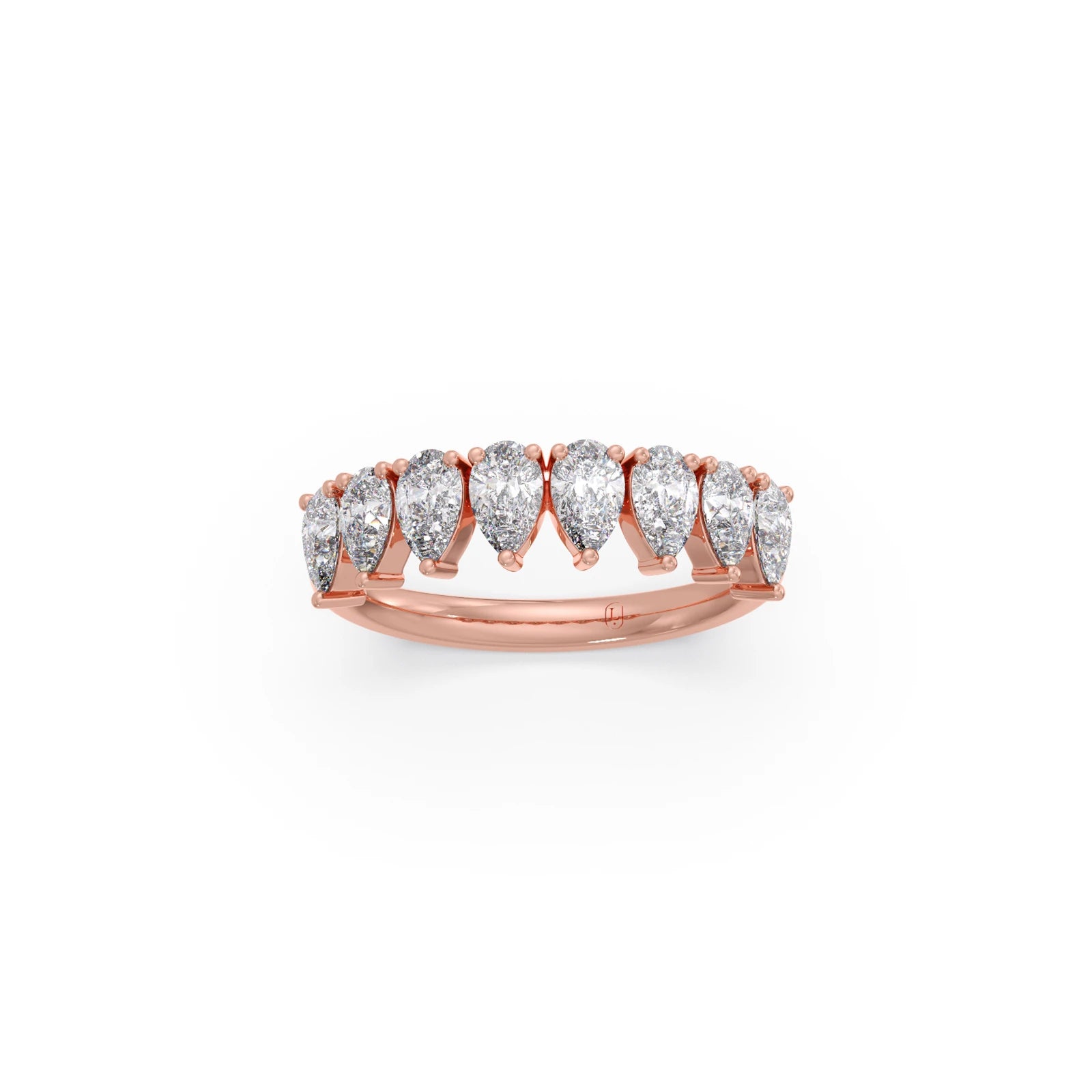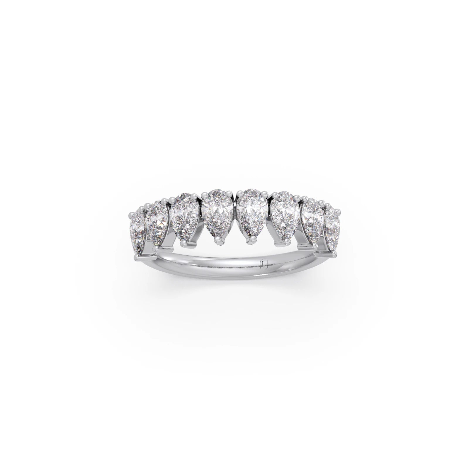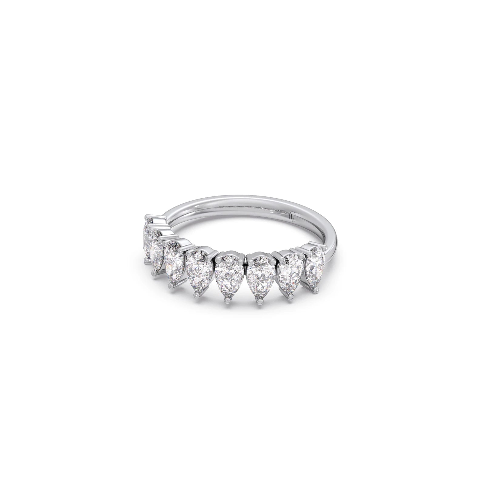 This stunning half eternity band showcases pear-shaped diamonds with a total weight of 1.16 carats. The uniquely cut stones are set halfway around the band, creating a sophisticated and distinctive sparkle. Crafted in a fine metal, this ring offers a modern twist on a classic design, making it a beautiful statement piece.