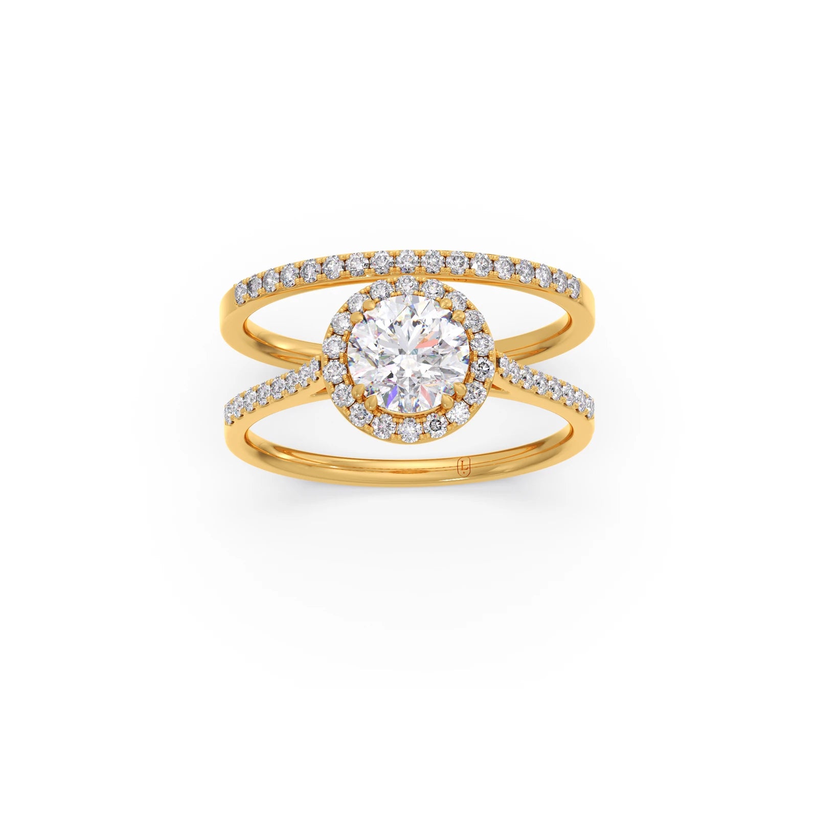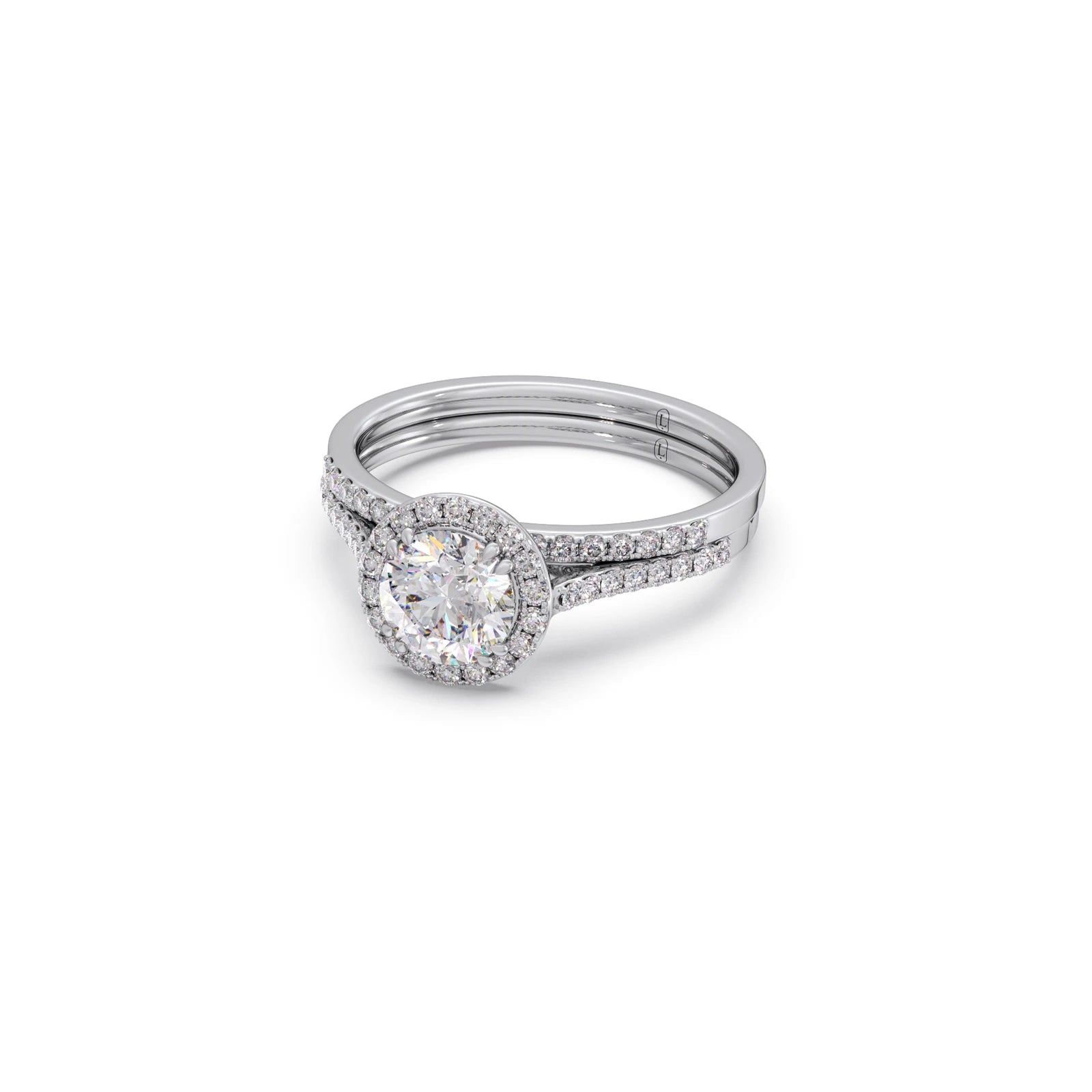 Radiate elegance with this exquisite 1.458ct Round Diamond Halo Stackable Ring. A brilliant central round diamond is encircled by a shimmering halo of smaller diamonds, creating captivating sparkle. Designed for stacking or wearing alone, this versatile ring adds a touch of timeless sophistication to any look. A perfect symbol of enduring style.