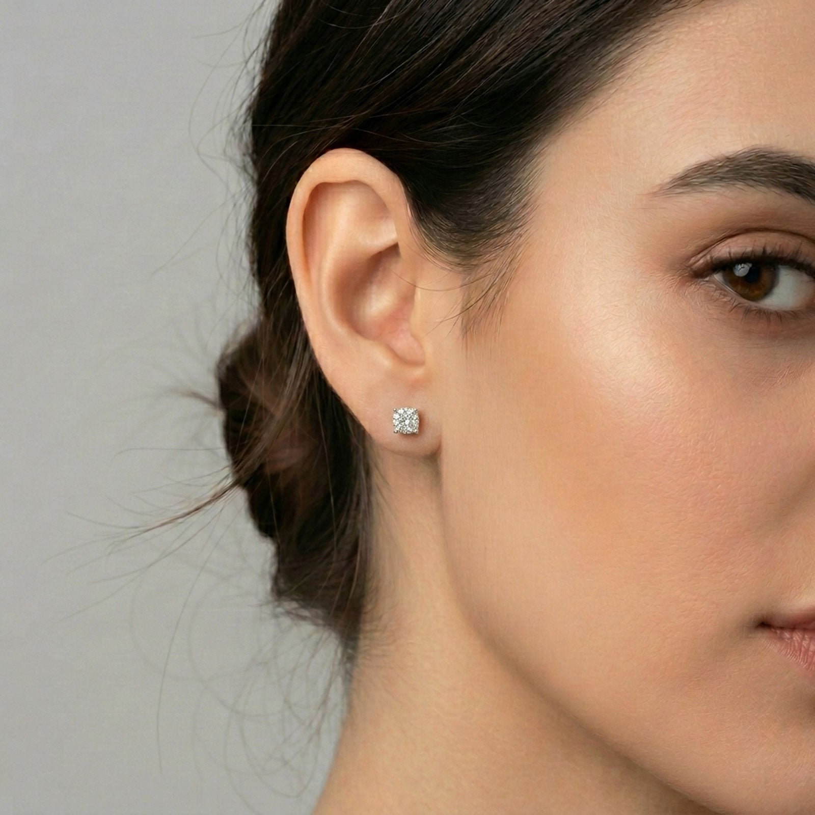 This stud earrings are crafted to highlight the beauty of a 1.5ct Timeless Cushion Solitaire Diamonds set in 4-prongs, these solitaire studs reflect light with exceptional clarity and softness. This design balances simplicity with luxury, allowing the sparkle to feel rich yet understated perfect for both everyday wear and special moments.
