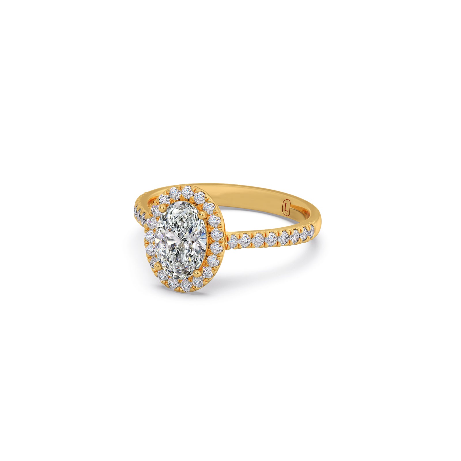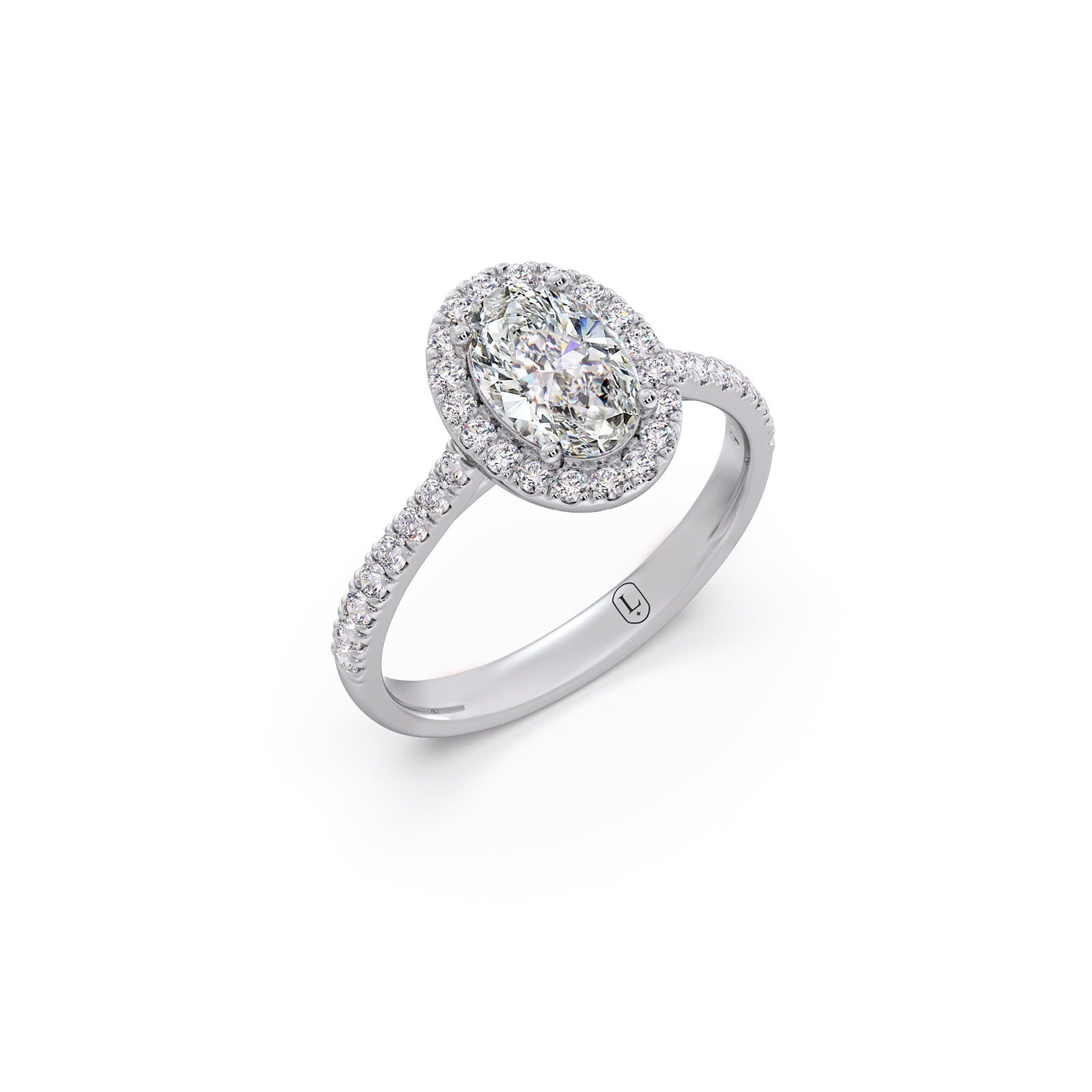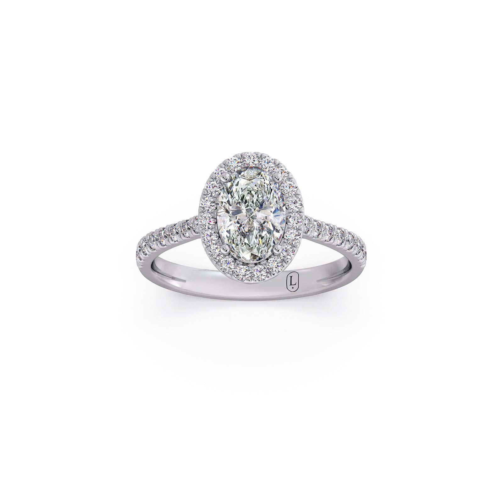 A captivating oval-cut solitaire shines at the love of this majestic ring, framed by shimmering round diamonds along the band. Its graceful silhouette, radiant brilliance, and timeless elegance create a beautifully refined piece that exudes luxury and enduring charm.