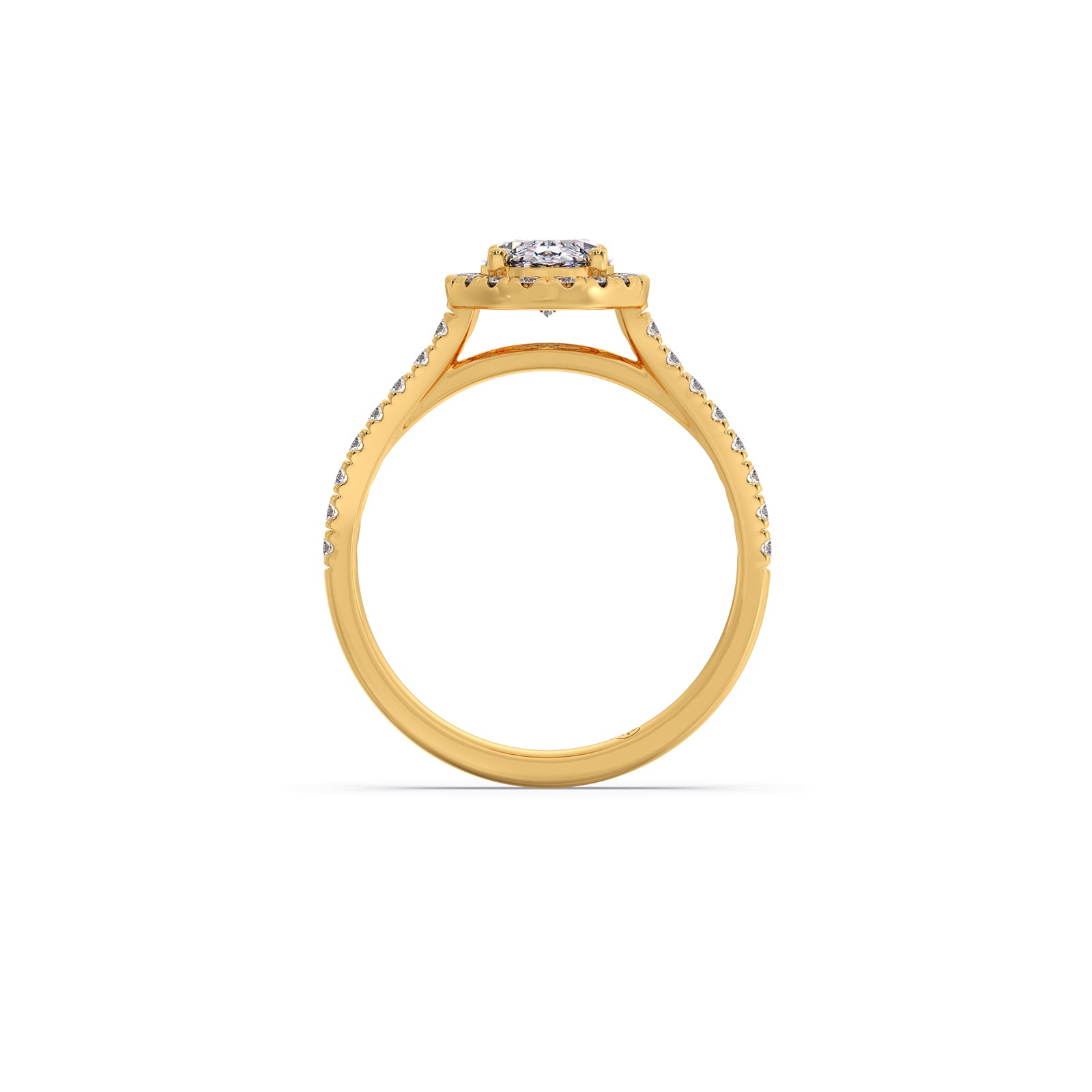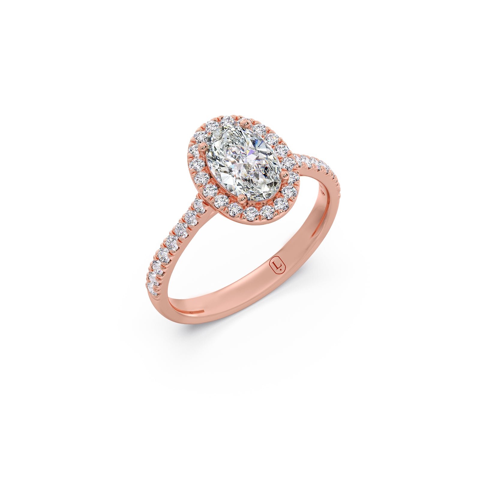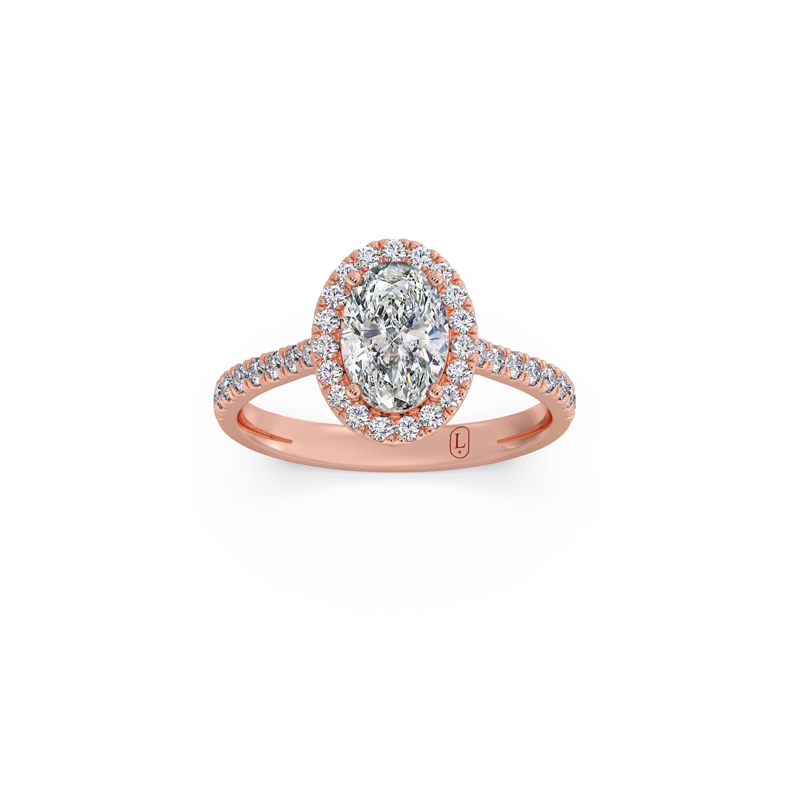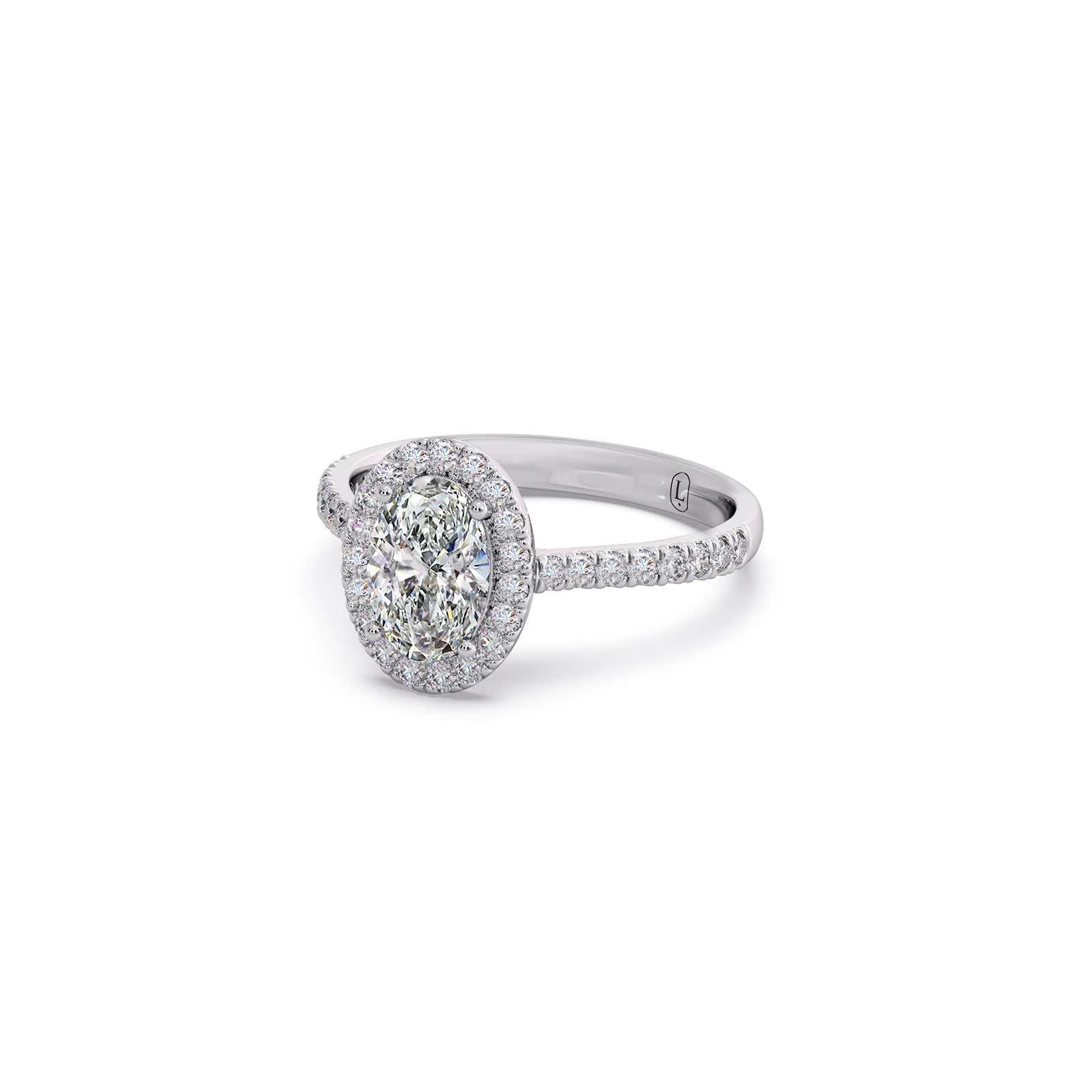 A captivating oval-cut solitaire shines at the love of this majestic ring, framed by shimmering round diamonds along the band. Its graceful silhouette, radiant brilliance, and timeless elegance create a beautifully refined piece that exudes luxury and enduring charm.