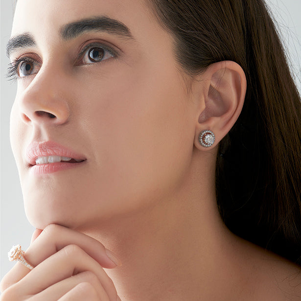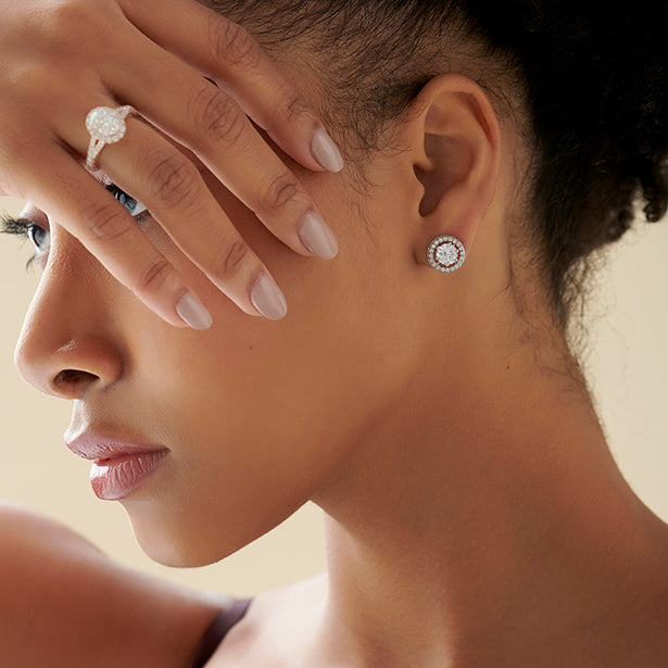 Dazzling with timeless elegance, these halo solitaire diamond earrings feature a brilliant 3.04ct round-cut solitaire embraced by a delicate pave of smaller diamonds. 1 The contrasting sparkle enhances the center stone's fire, creating a captivating and sophisticated look. Perfect for adding a touch of refined glamour to any occasion.