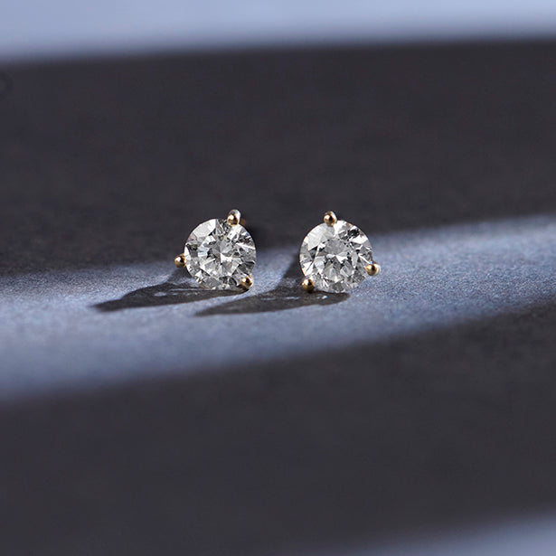 3-Prong Set Round Diamond Solitaire Stud Earrings