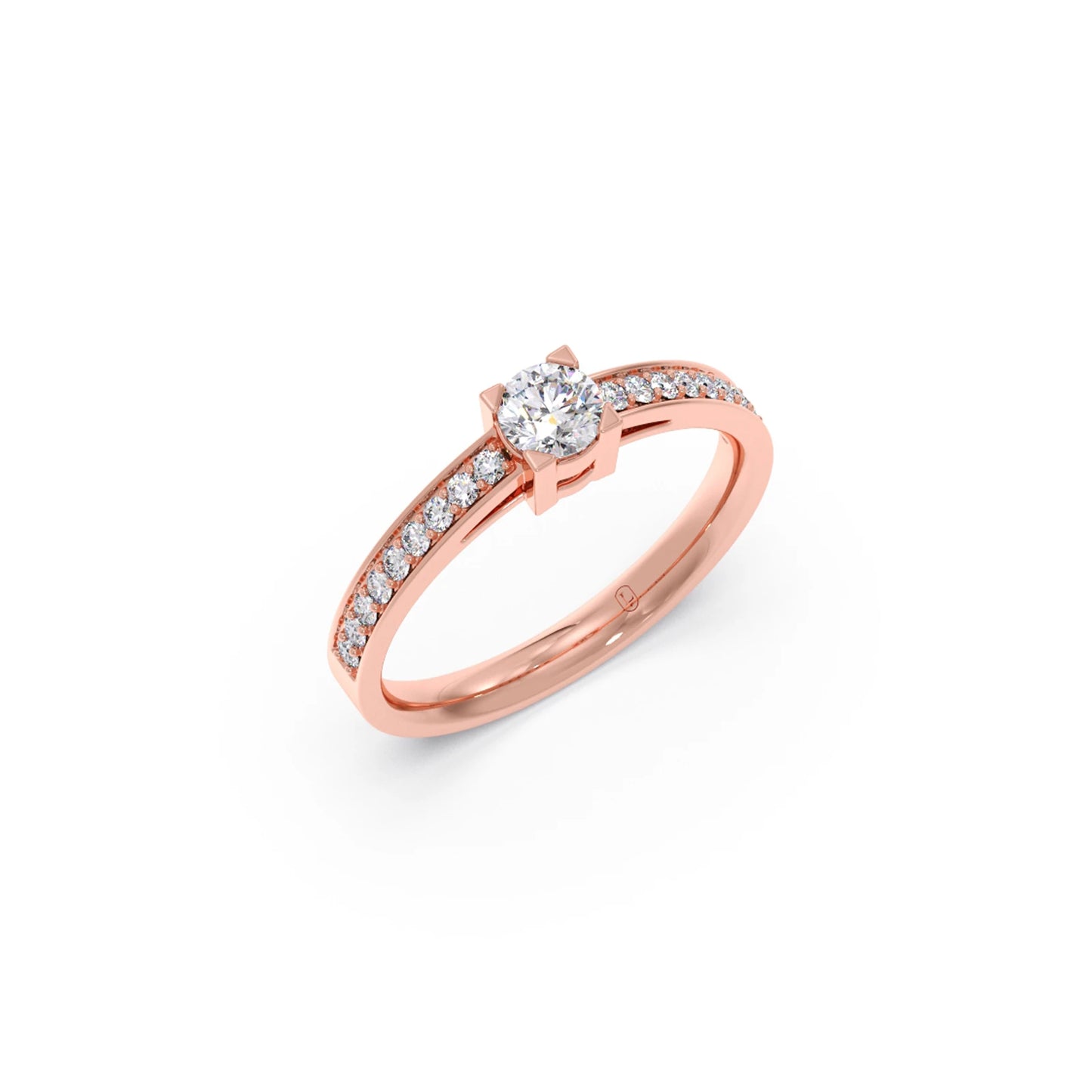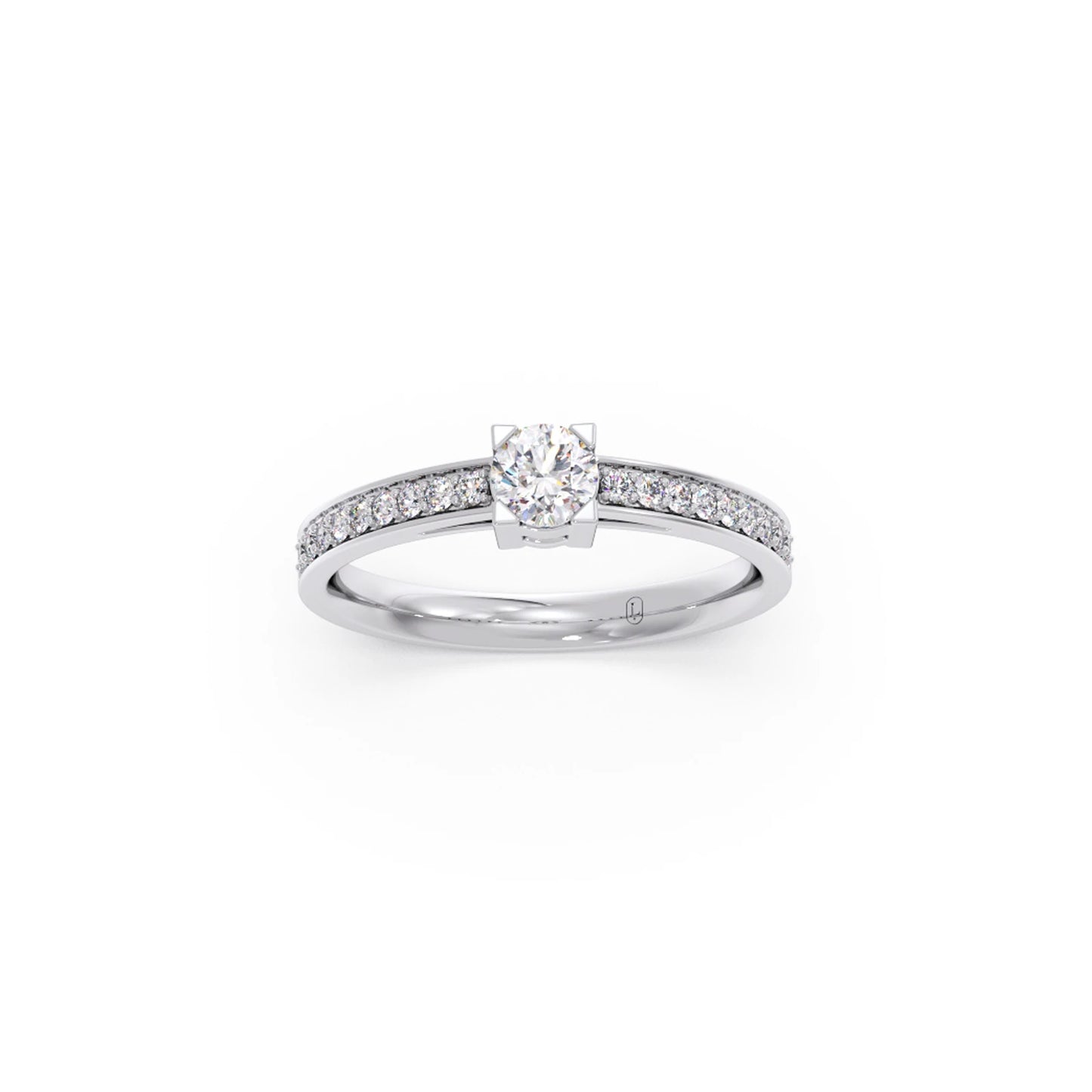 The Prong Round Pavé Engagement Ring features a brilliant round-cut center stone, elegantly secured by prongs and enhanced by a shimmering pavé-set band. This timeless design offers exceptional sparkle and sophistication, making it the perfect symbol of love and commitment with a touch of modern elegance.