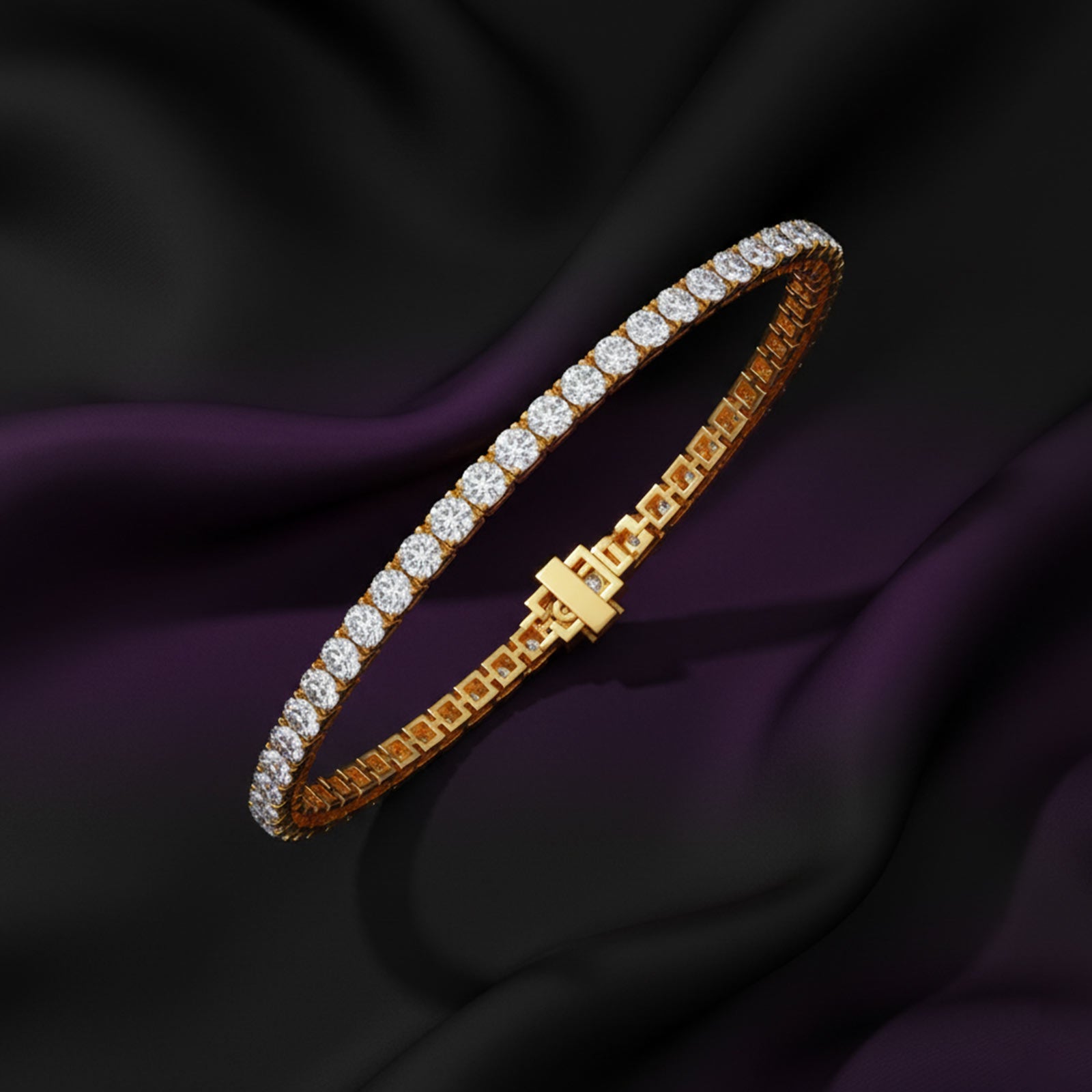 Experience classic, enduring luxury with this exquisite tennis bracelet. Featuring 6.05 carats of dazzling round diamonds, its delicate, continuous line of brilliance ensures maximum sparkle. A timeless piece crafted for graceful movement and sophisticated daily wear. It’s the ultimate statement of elegance.