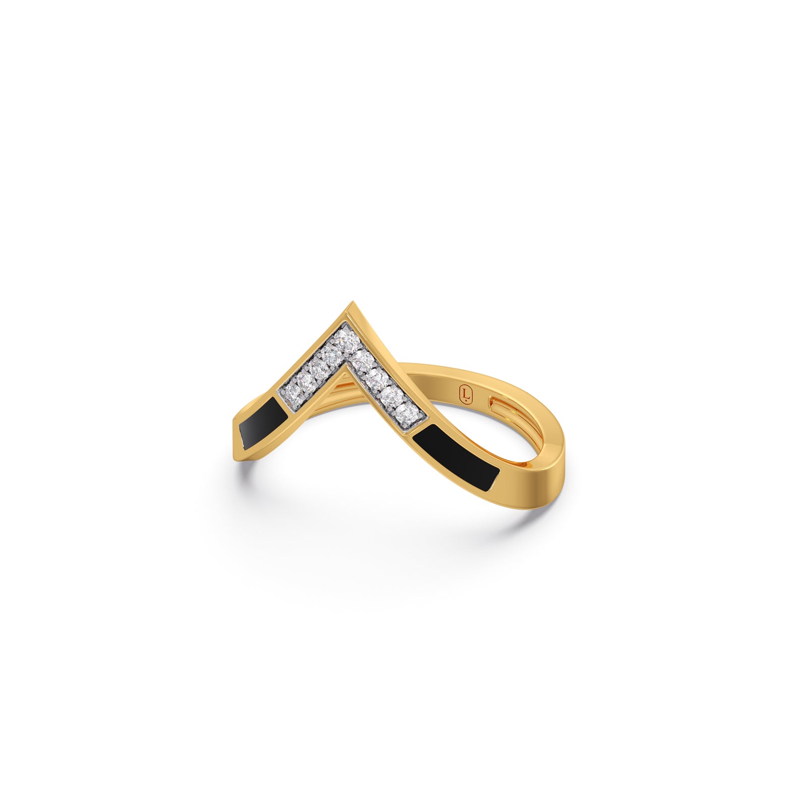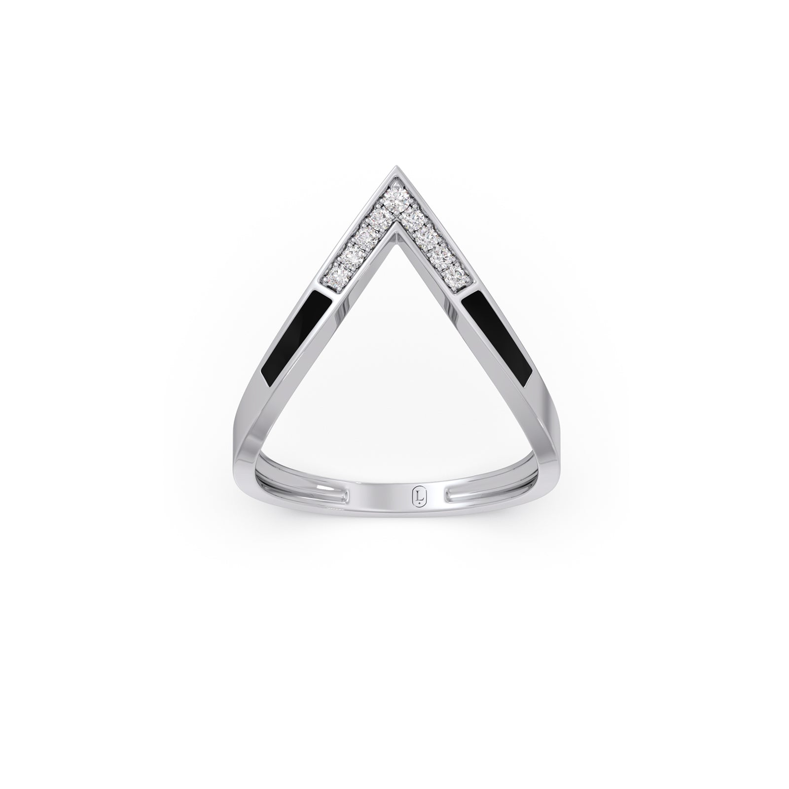 This chevron ring features a V-Shape type shank. The chevron shank are lined with row of classic round diamonds set in prong-setting. Ideal for both daily wear and special occasions, this ring exudes tradition with a modern sparkle.