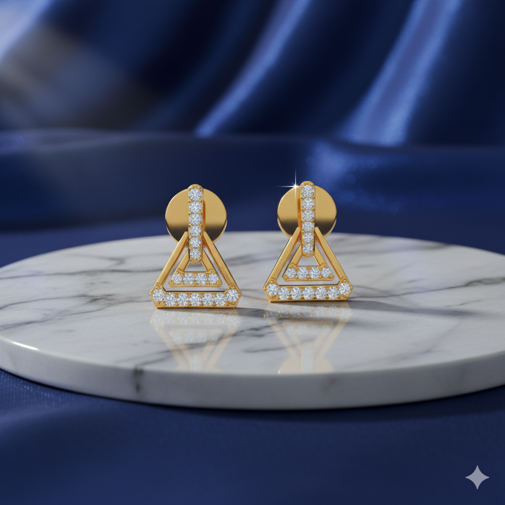 Minimalist structure, maximal brilliance. These Apex Triangle Earrings offer a chic, angular silhouette paved entirely with dazzling diamonds. The bold geometric shape provides an unforgettable flash of light, perfect for both everyday and evening wear.