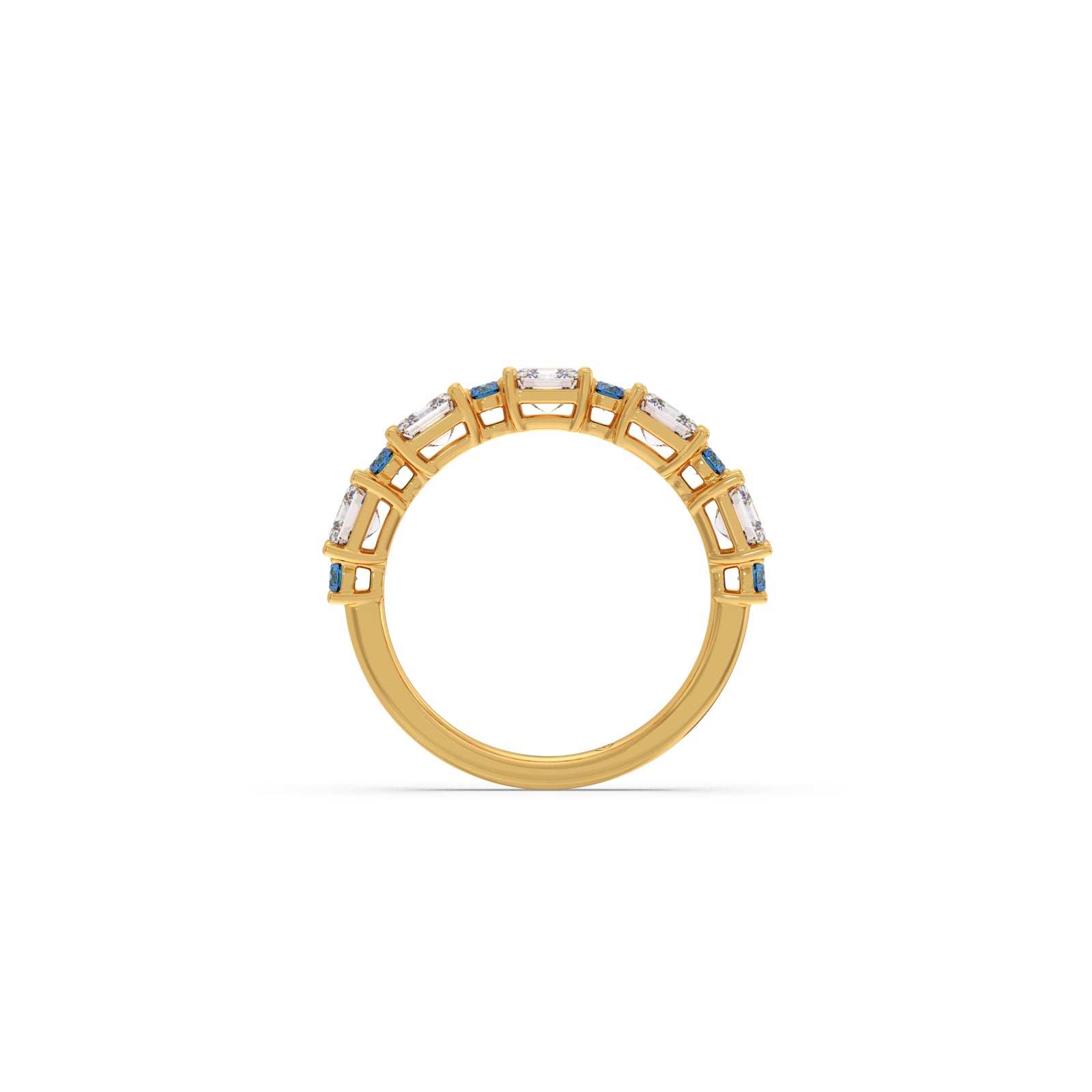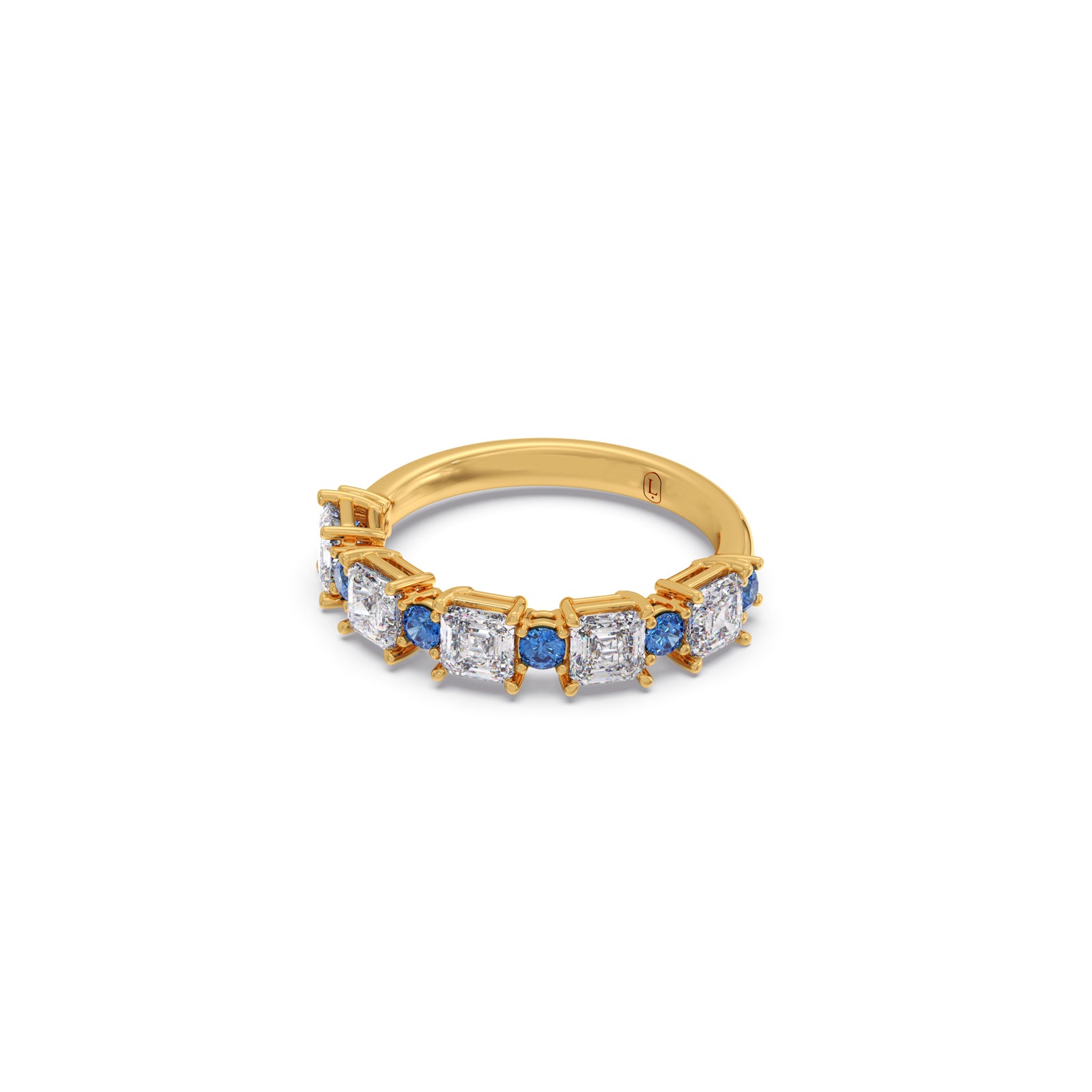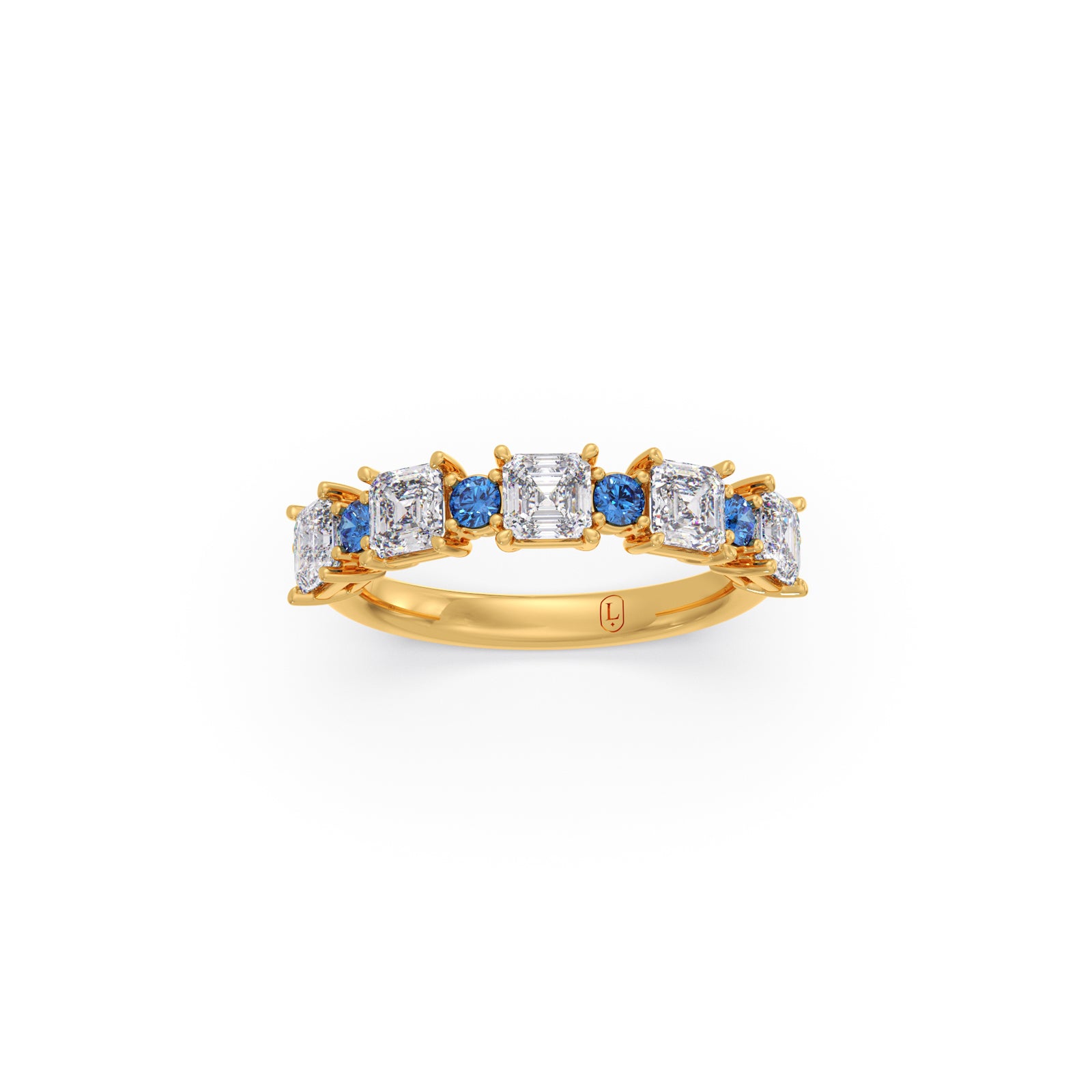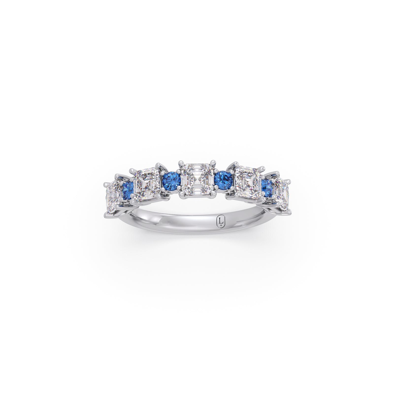 Experience captivating sophistication with our Asscher Cut Diamond & Blue Gemstone Ring. This exquisite piece features a stunning Asscher-cut diamond, renowned for its unique step-cut facets, elegantly complemented by vibrant blue gemstones. The combination offers a harmonious blend of classic geometric brilliance and a rich pop of color, creating a truly distinctive and luxurious statement piece.