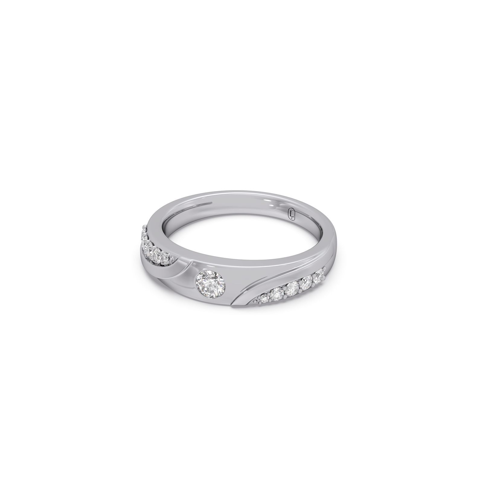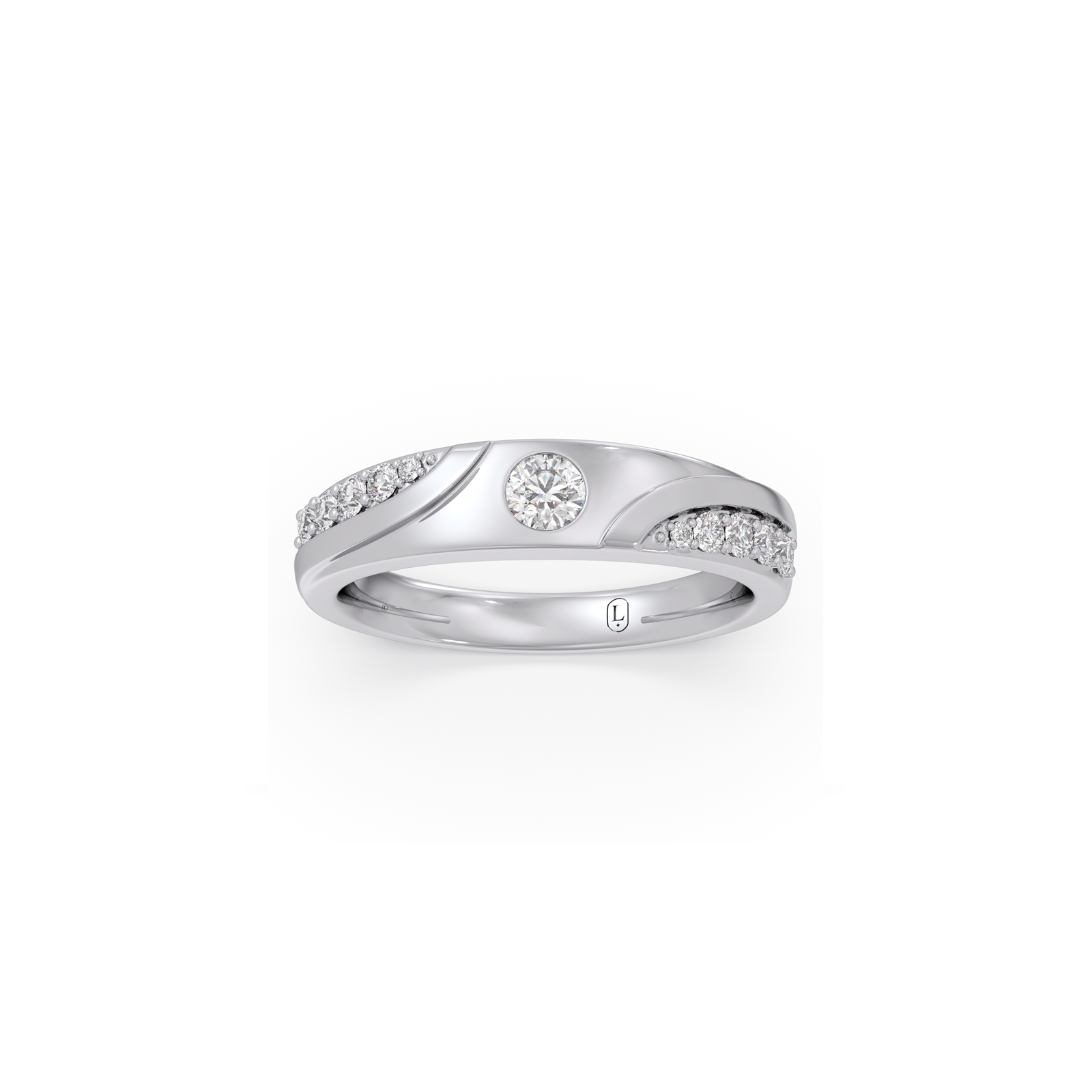 Exude confidence with the Aura Bezel Diamond Men's Band. This distinguished ring features a brilliantly secure bezel-set diamond, radiating a subtle glow. Crafted for durability and sleek modern style, its clean lines offer a sophisticated and understated presence. An ideal choice for the man who values both enduring quality and contemporary elegance in his everyday wear.