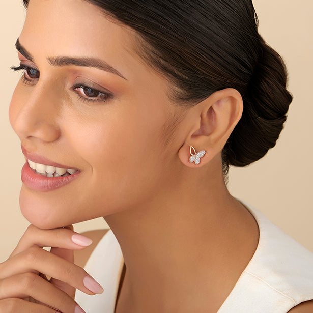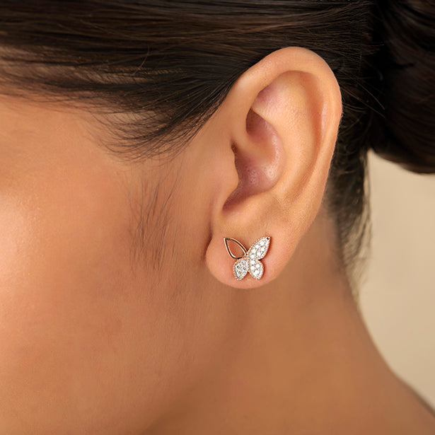 Aurefly Diamond Stud Earrings capture the delicate beauty of butterfly wings in a luminous, modern design. Encrusted with brilliant diamonds, these studs blend elegance and whimsy—perfect for adding a graceful sparkle to any look. Lightweight yet luxurious, they’re a timeless symbol of transformation and grace.