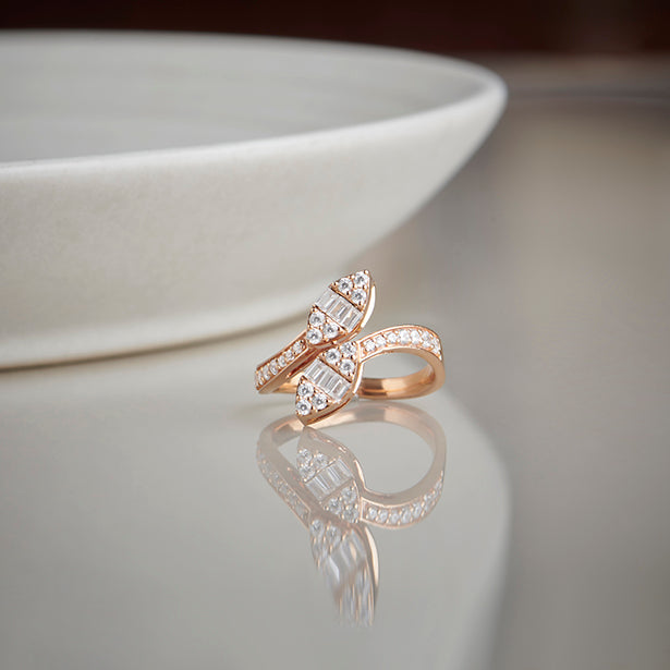 The Baguette and Round Diamond Bypass Ring features a graceful open design showcasing the sleek elegance of baguette-cut diamonds paired with the timeless sparkle of round diamonds. This modern yet classic ring symbolizes harmony and movement—perfect for those who love unique, sophisticated style with a contemporary twist.