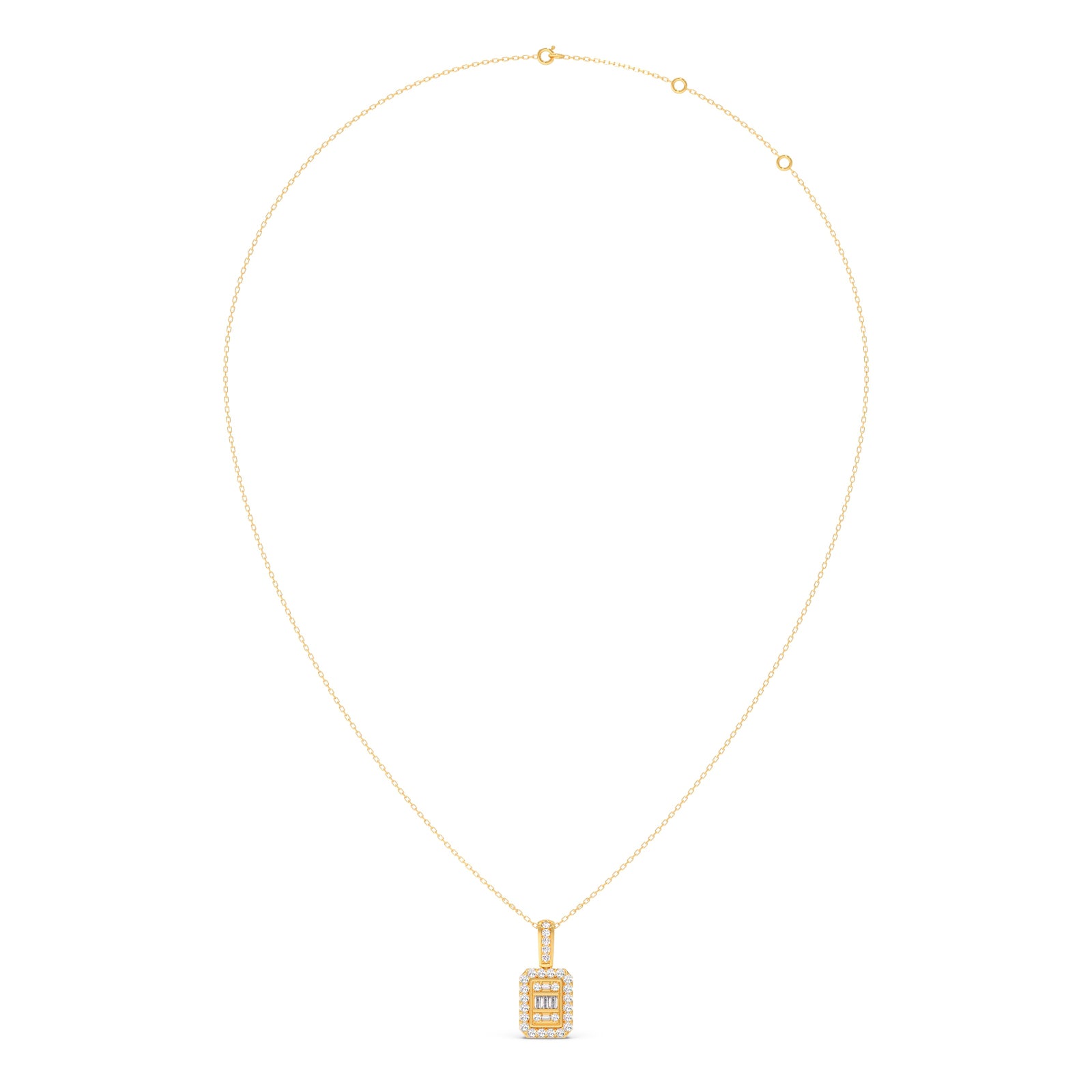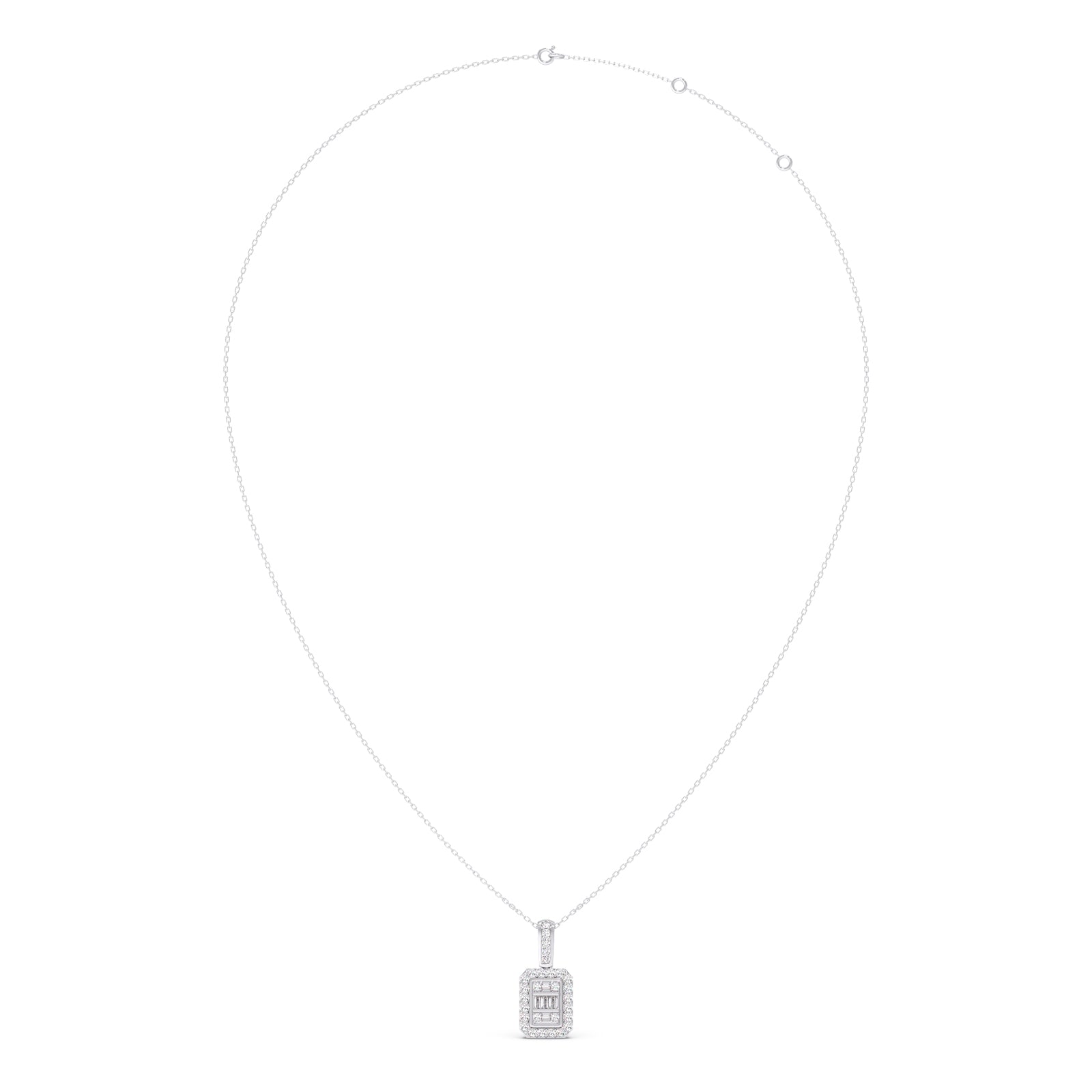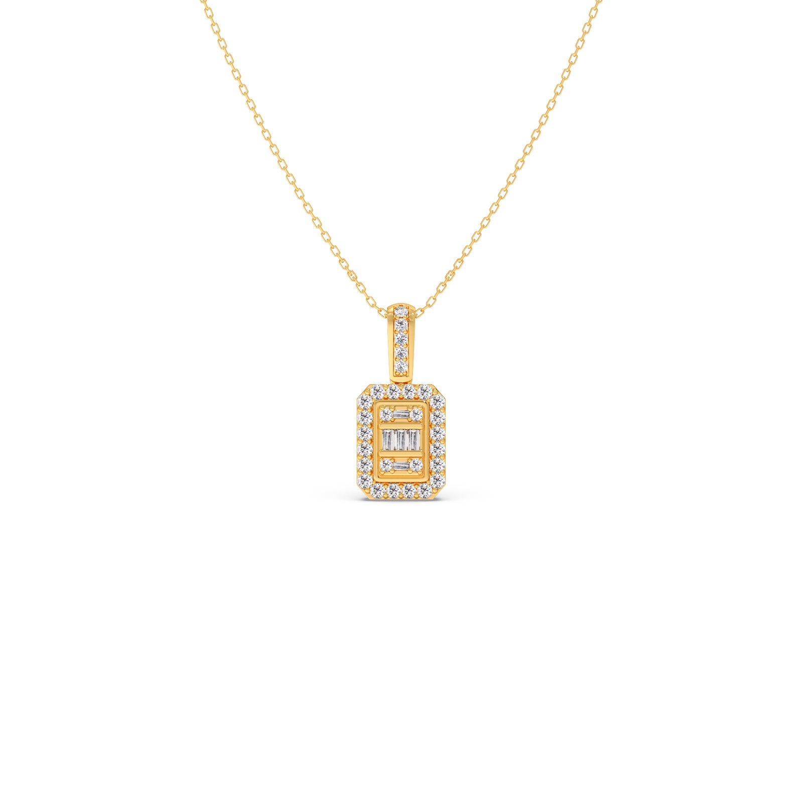 Dazzle with the luxurious Baguette & Round Diamond Pendant. This stunning piece showcases the harmonious blend of sleek baguette and scintillating round diamonds, meticulously set to maximize their collective fire. An exceptional pendant that exudes both refinement and radiant beauty.