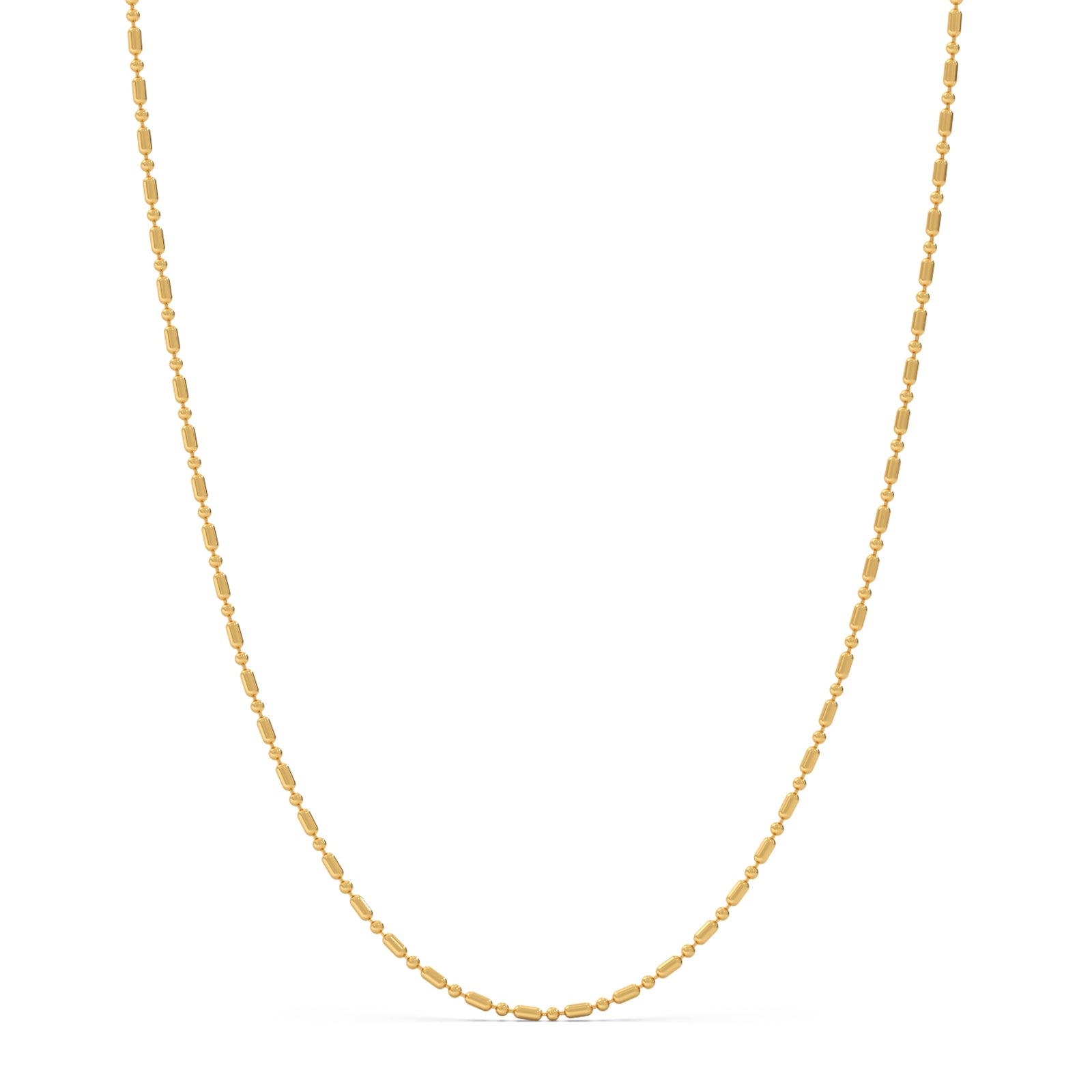 This bead line chain features a delicate bead and bar chain. Its clean lines provide a more structured look than traditional round-link chains, making it a timeless staple for both casual and formal jewelry collections.