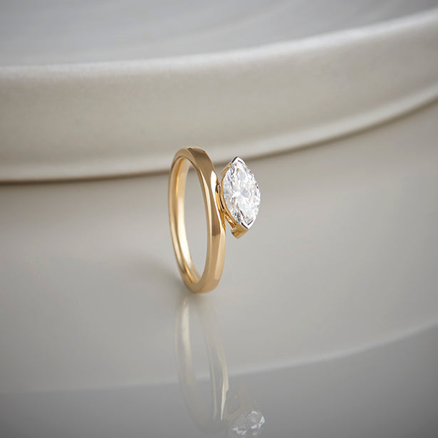 Bold in shape, refined in setting - this 1.02 ct. Marquise-cut Lucira Grown Diamond is cradled in a sleek east-west bezel. A modern twist on a storied silhouette, it brings symmetry, style, and strength into perfect alignment. The marquise cut, with its sweeping curves and sharp tips, captures both direction and elegance like a woman charting her own course. This ring leads the way.