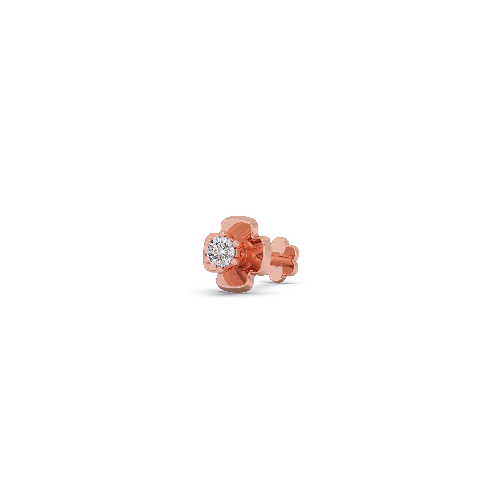 Enhance your look with this Bloom Round Diamond Nose Pin. Meticulously crafted in gleaming gold, its delicate floral design cradles a brilliant Round-cut Diamond at the center. This piece combines classic charm with a touch of modern sophistication, offering a subtle yet radiant sparkle perfect for everyday wear or a special occasion.