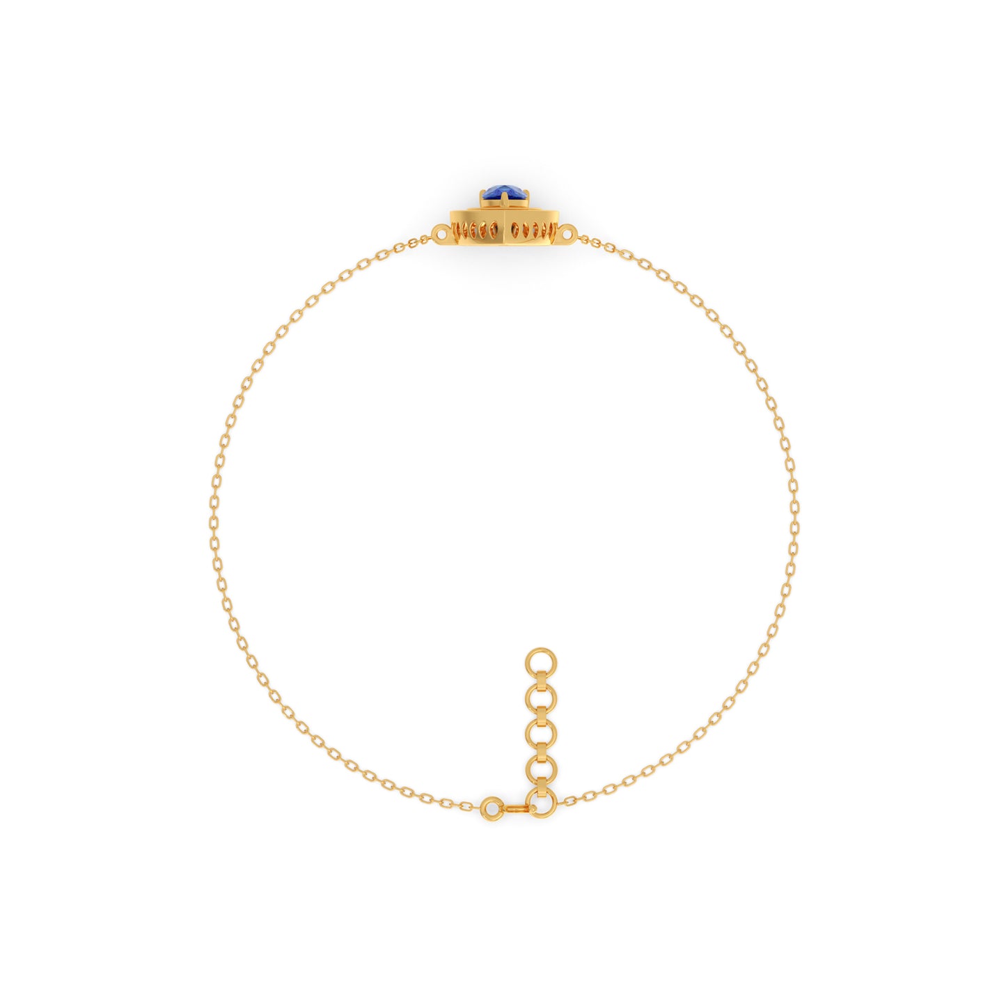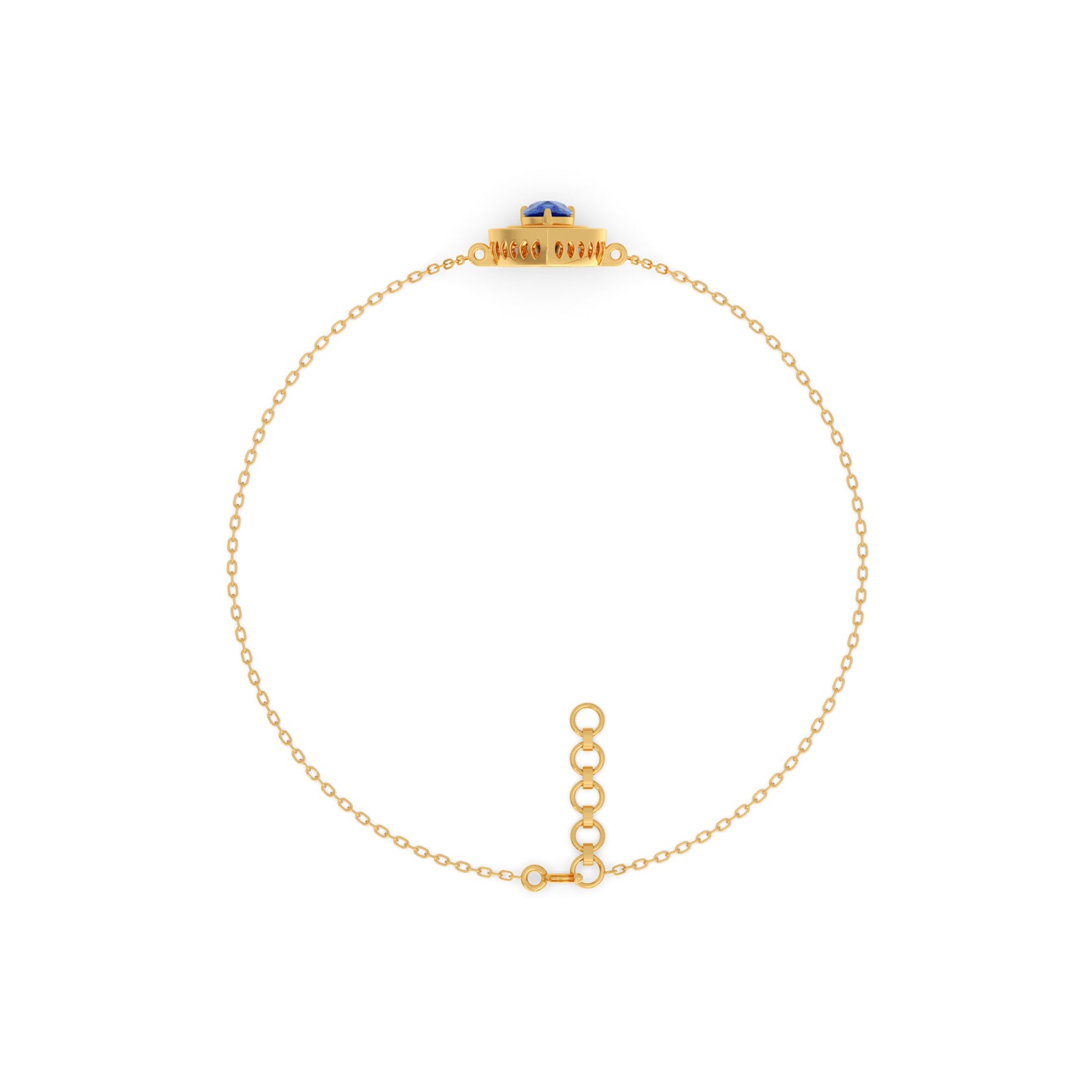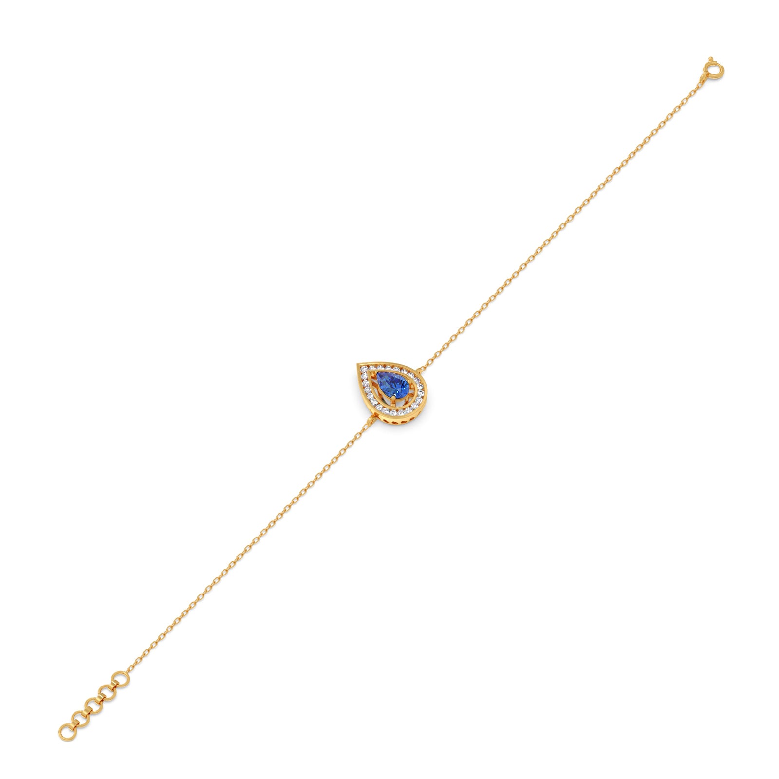 Like a drop of twilight. This Blue Teardrop Halo Bracelet features a mesmerizing pear-cut blue stone, brilliantly encircled by a shimmering round diamond halo. Suspended gracefully on a delicate gold chain, it delivers an ethereal flash of color and continuous, subtle sparkle.