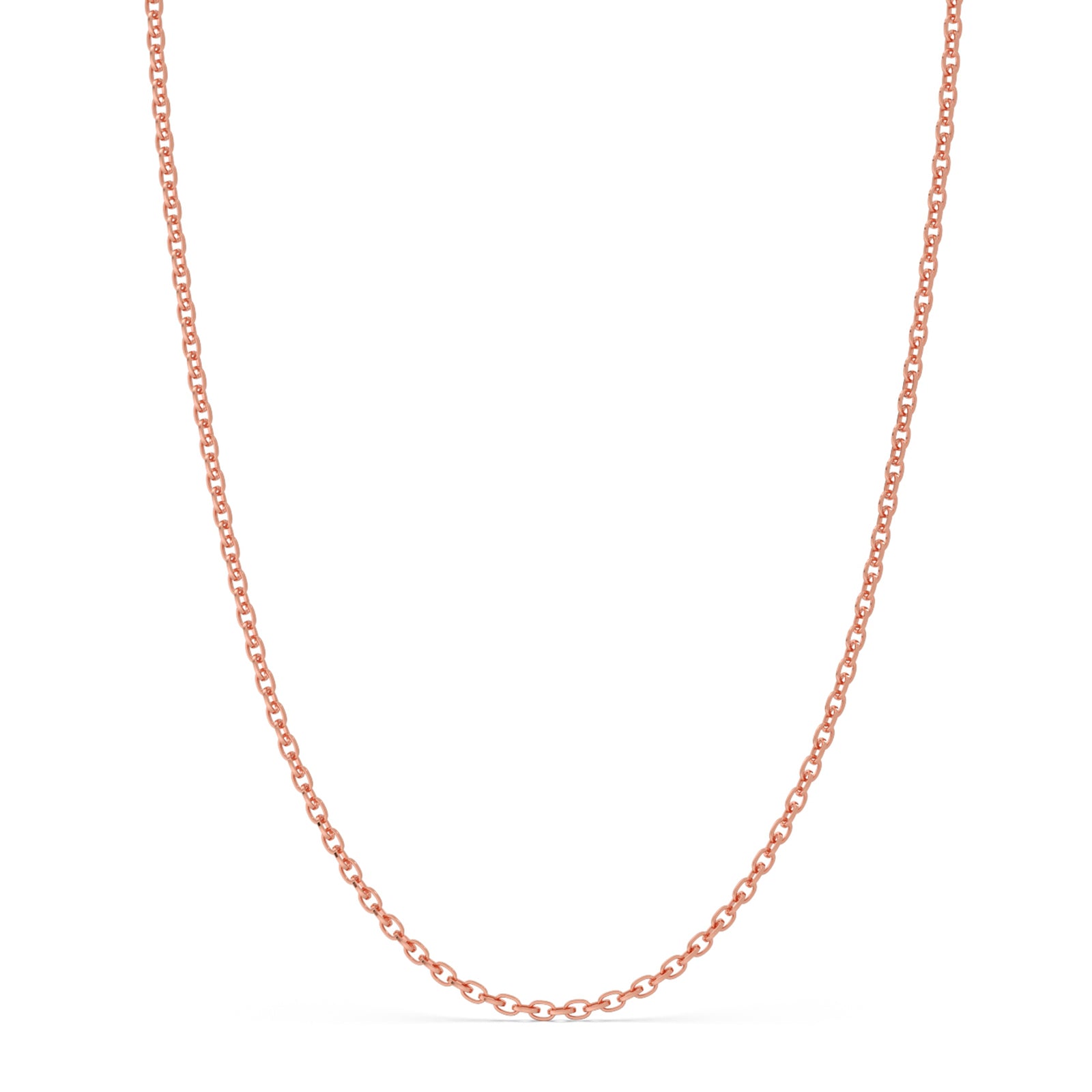 This delicate cable chain features a oval interlocked links. The repetitive, interlocking pattern makes this style exceptionally durable and resistant to kinking or breaking, making it ideal for everyday wear.