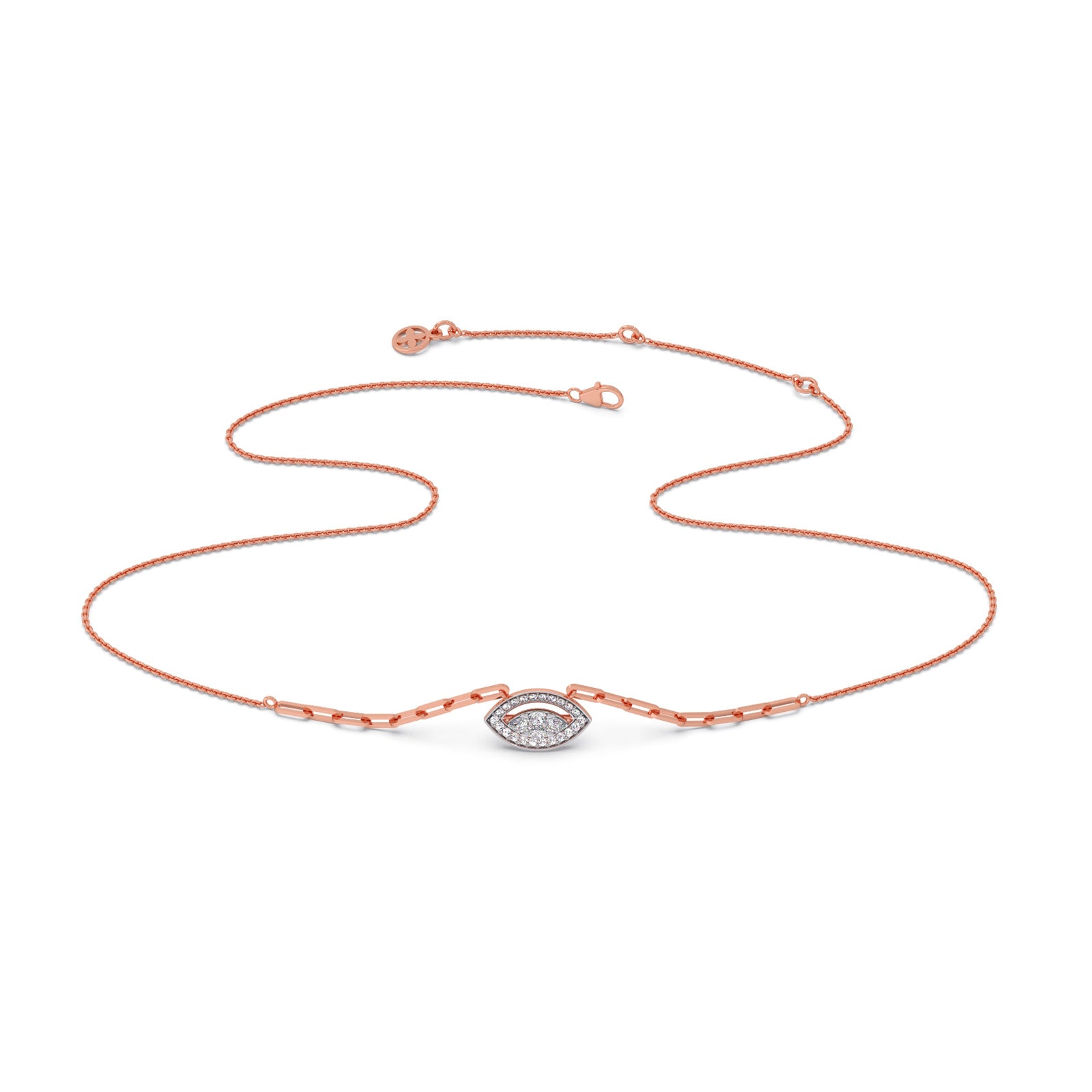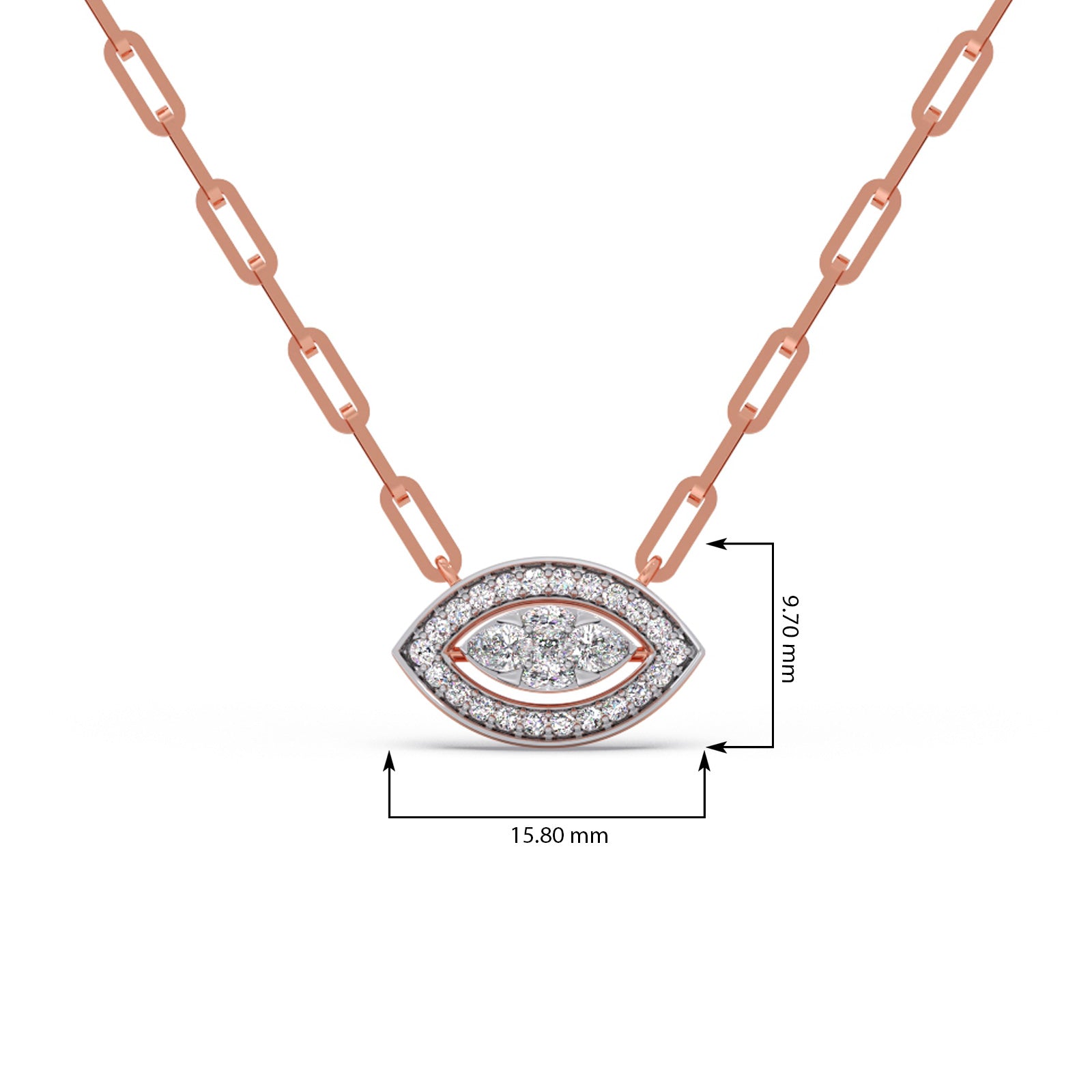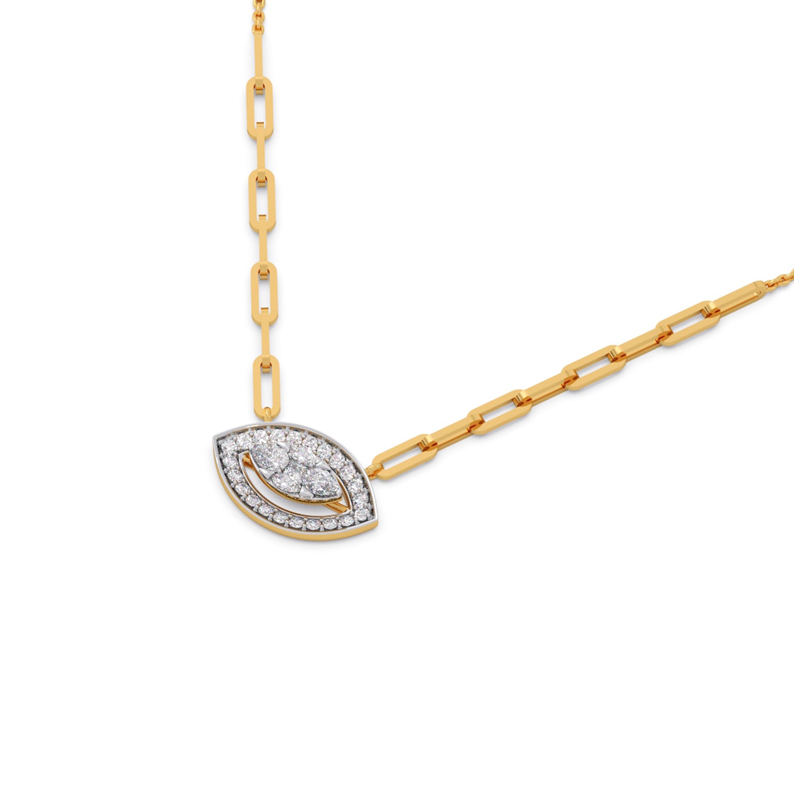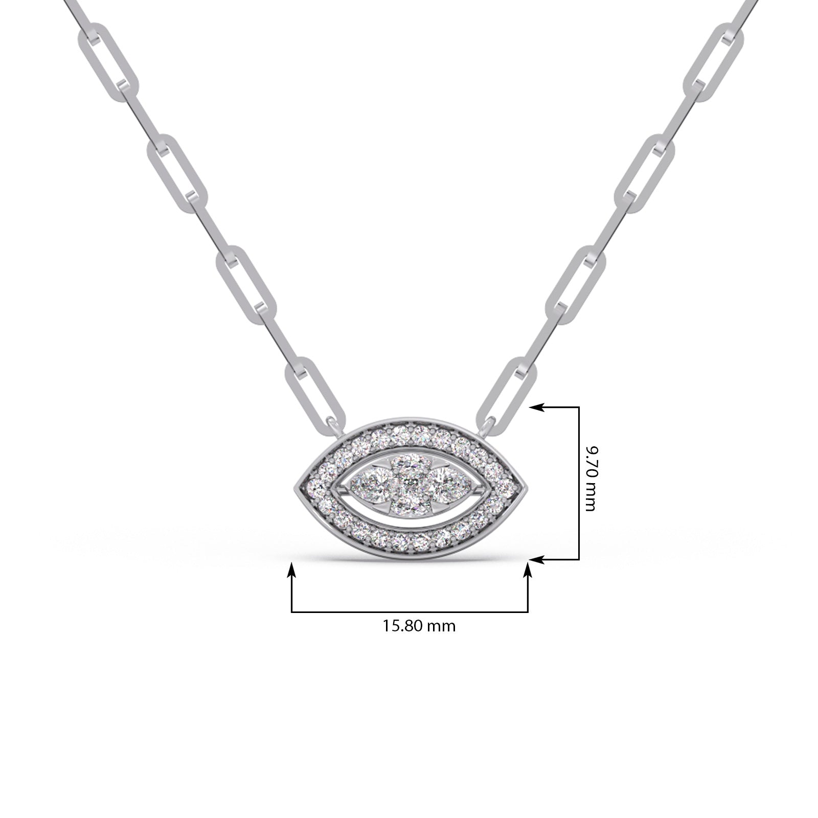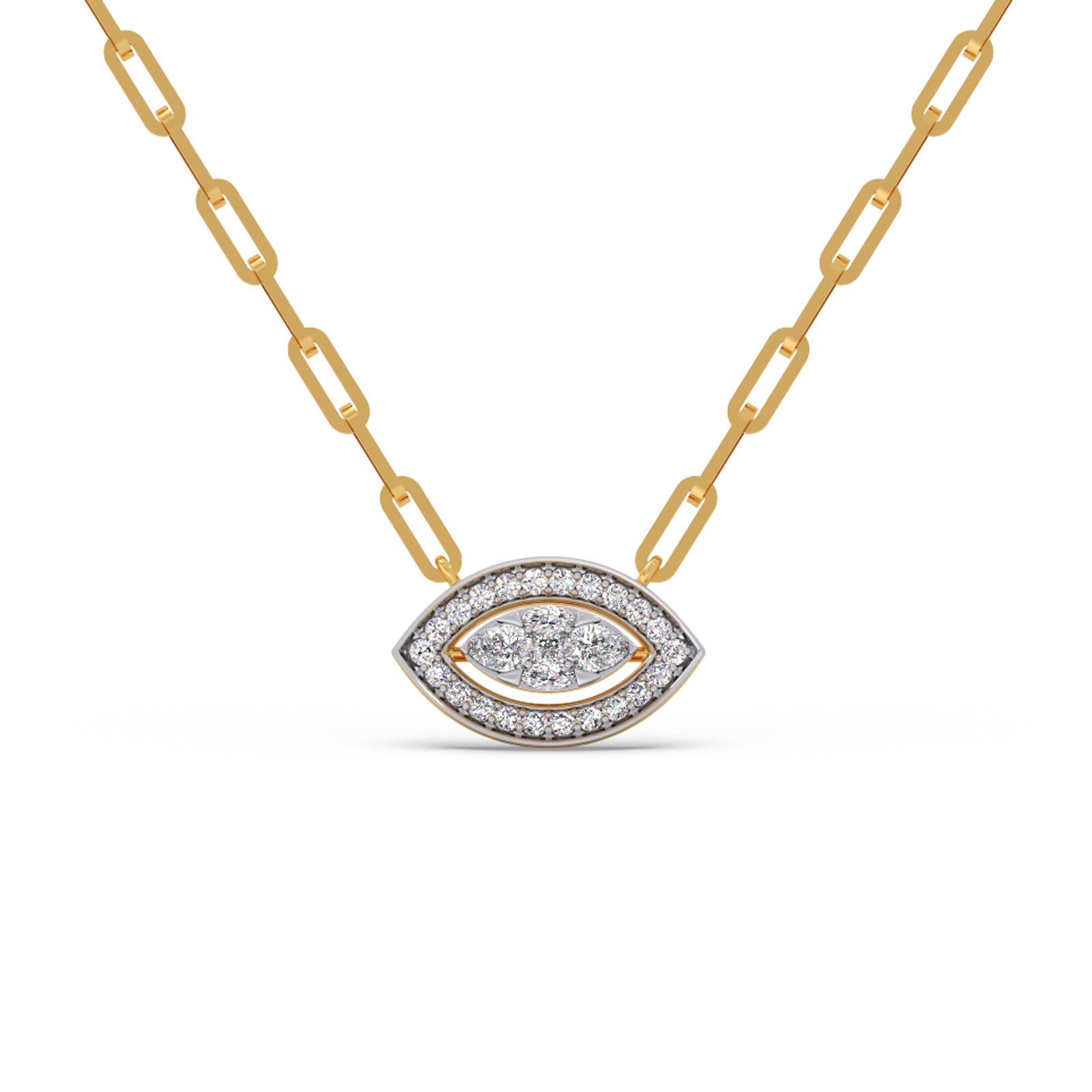 These pendant features an elongated marquise shape design, crafted in 0.489ct Halo Round Diamonds and Cluster Pear, Marquise, Princess-Cut Diamonds. This chain pendant making it an versatile enough for daily wear or any ocassions wear.