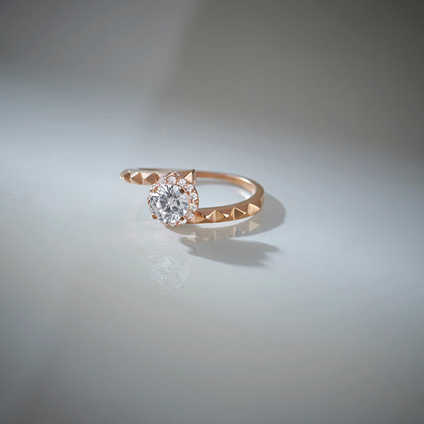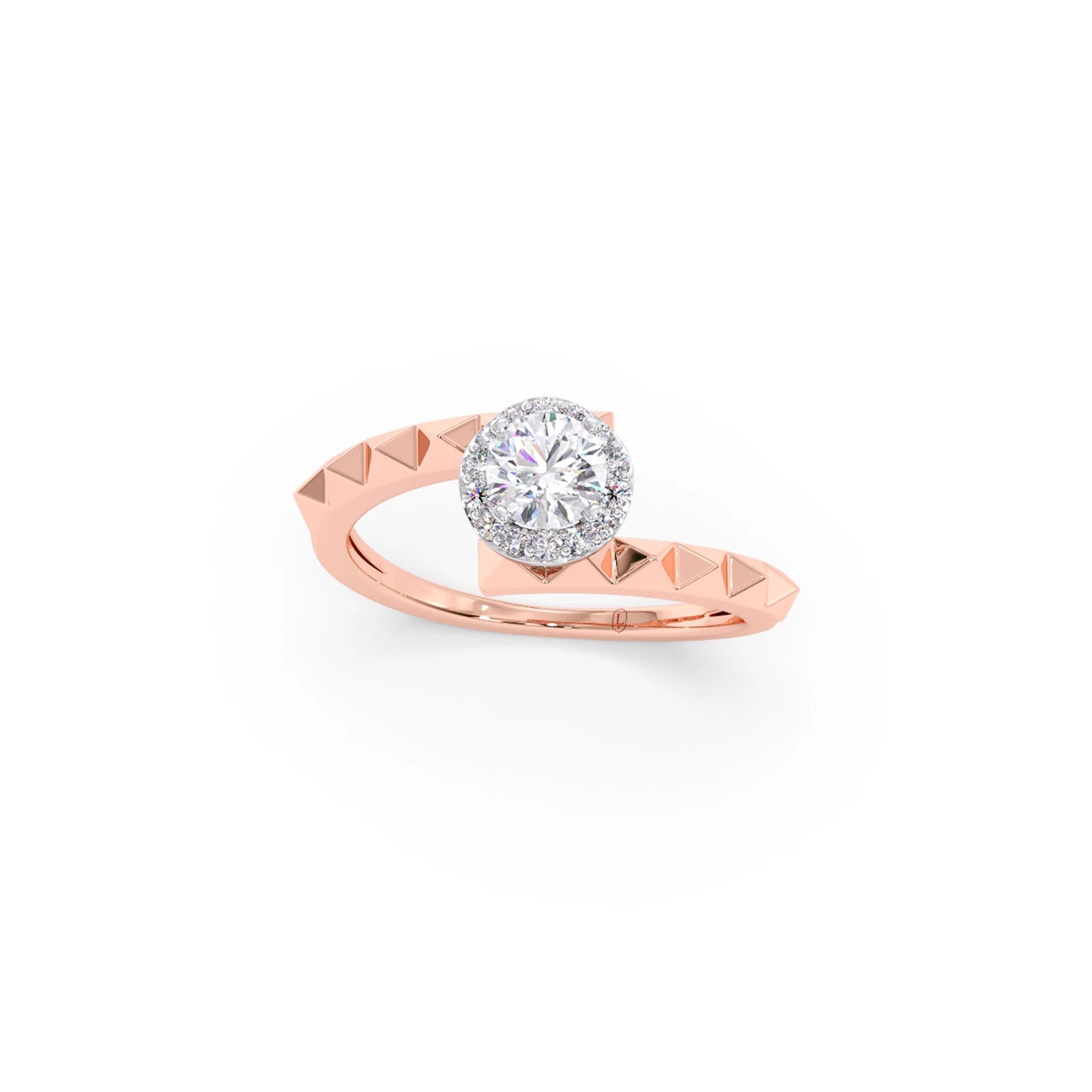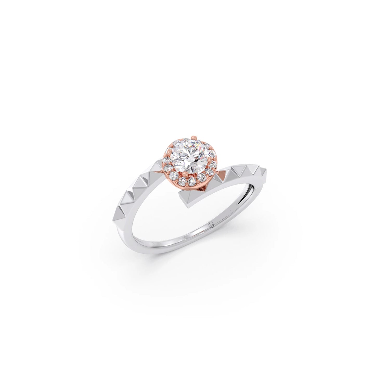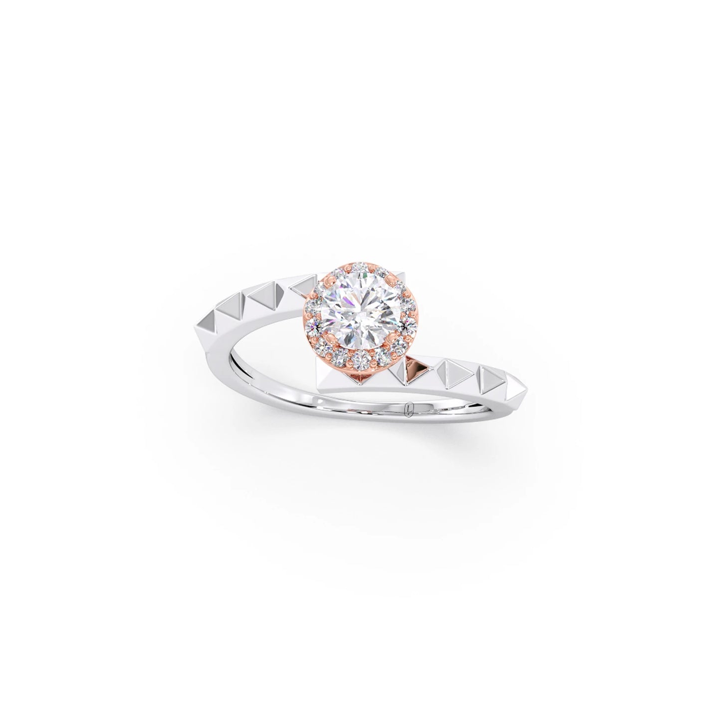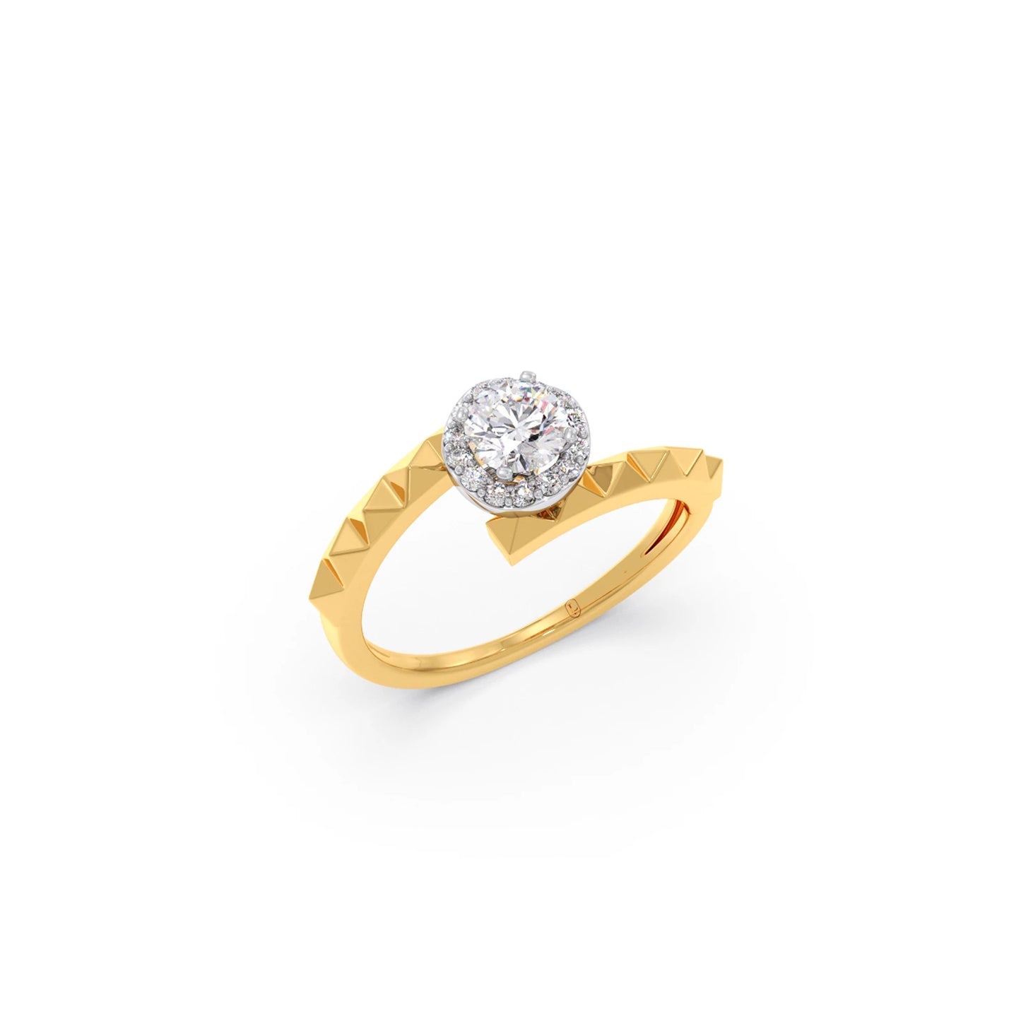 The Celestia Halo Engagement Ring features a brilliant round-cut centre stone set on a sleek and unique shank for a modern yet timeless look. Its refined design enhances the diamond’s sparkle while offering a sophisticated and elegant silhouette, perfect for those who love classic beauty with a contemporary touch.