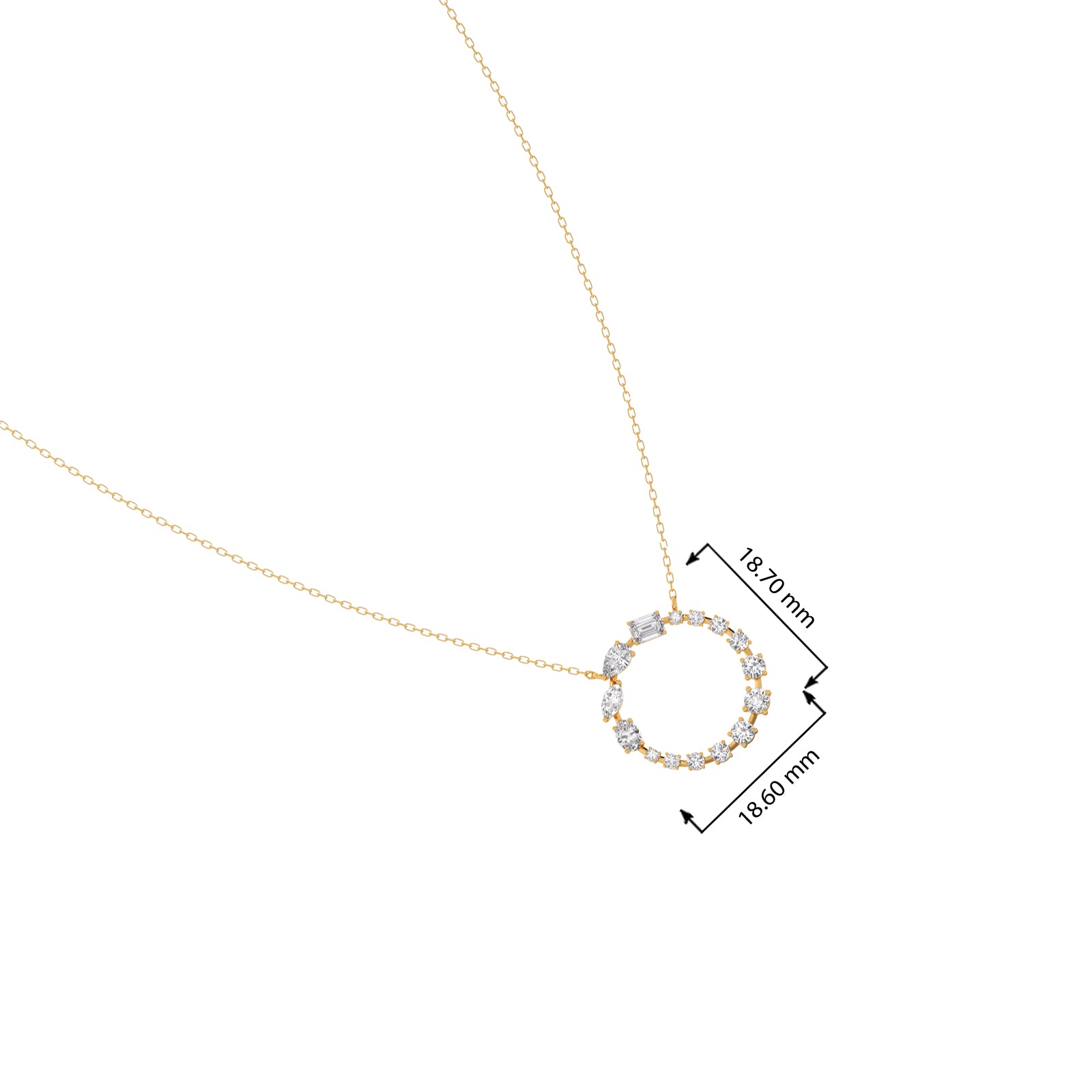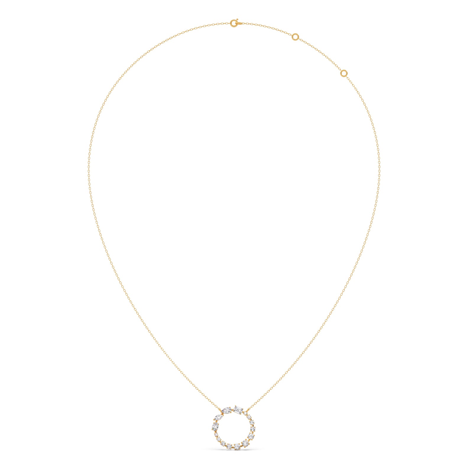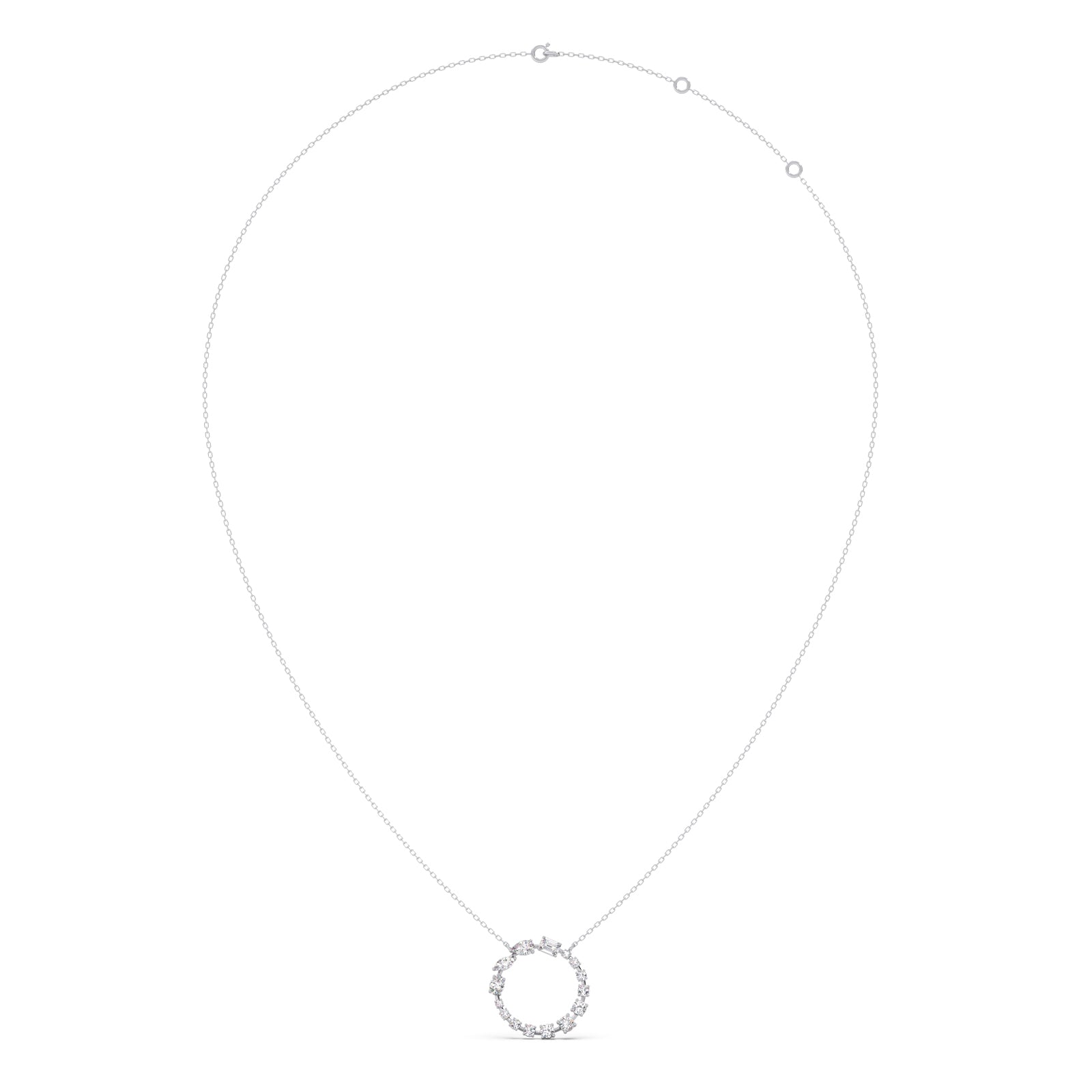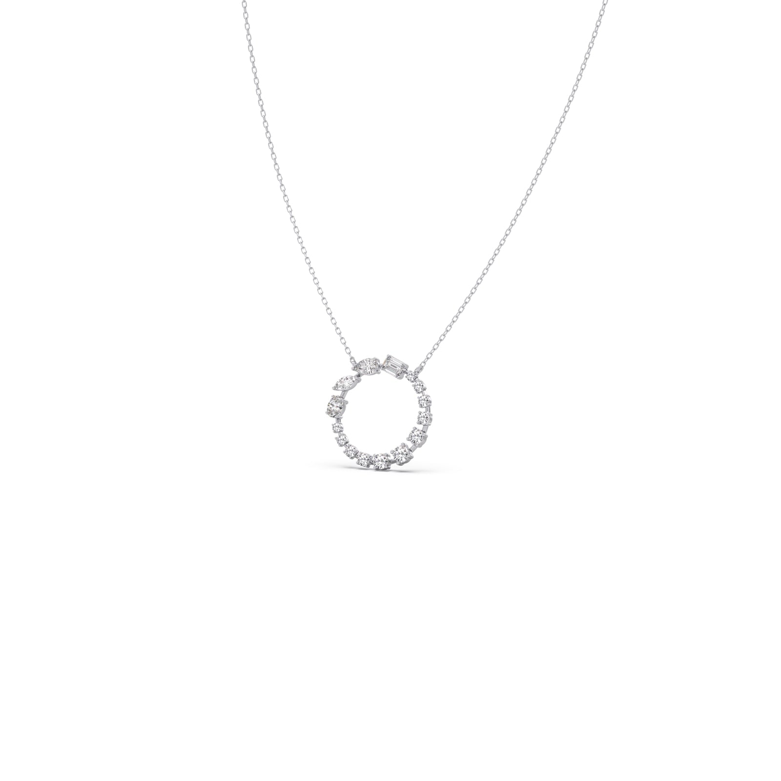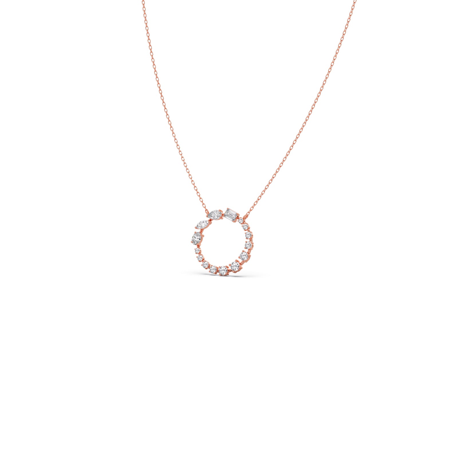 A radiant circle of meticulously set diamonds forms this dazzling pendant, symbolizing unity and everlasting brilliance. Suspended from a delicate chain, it offers timeless elegance and eye-catching sparkle, making it a refined piece for both everyday wear and special occasions.