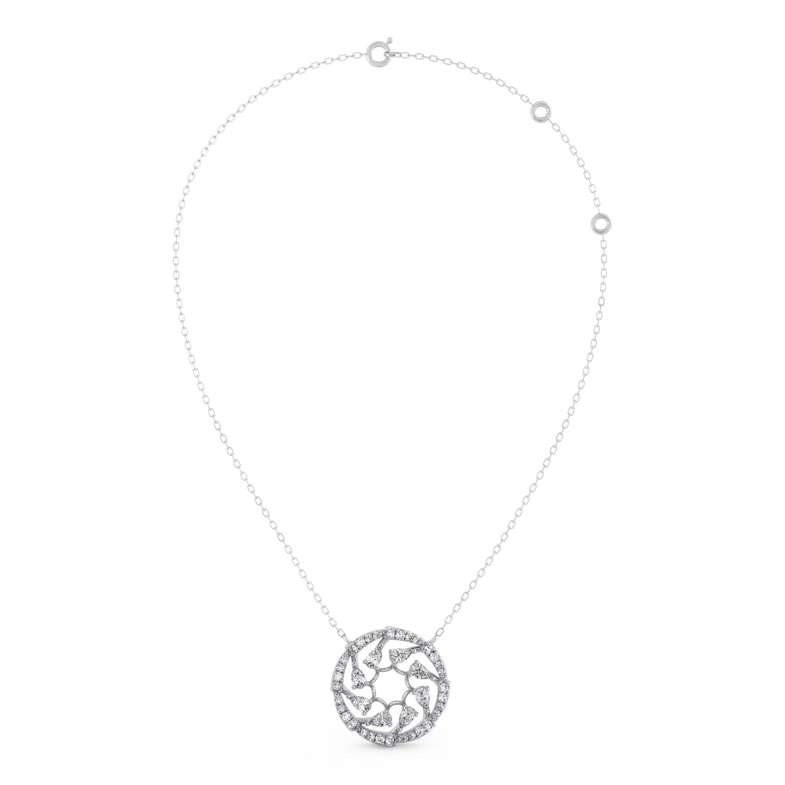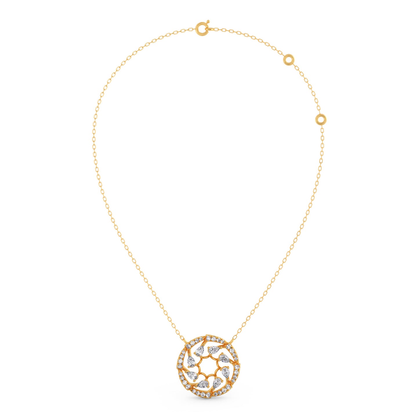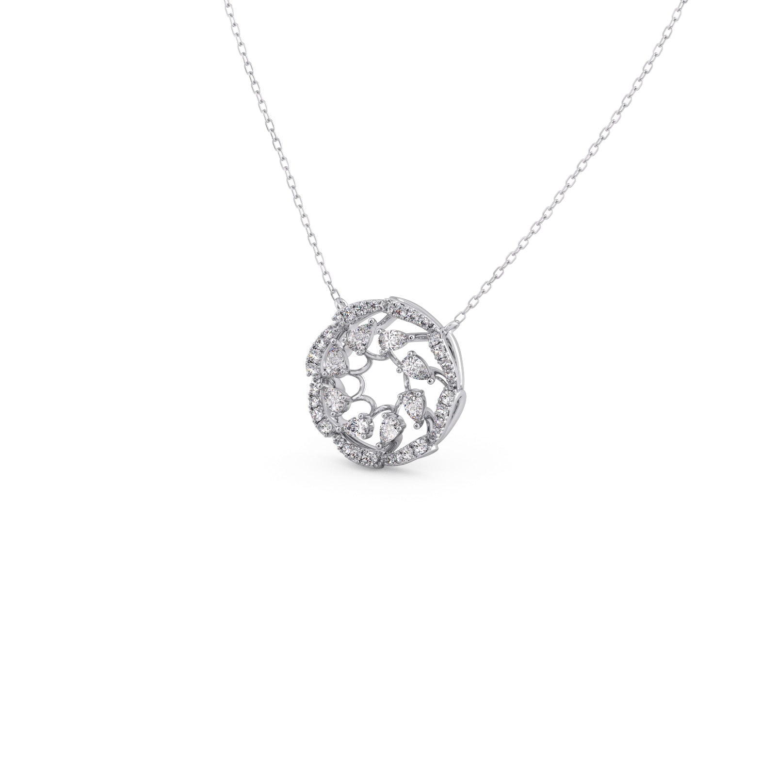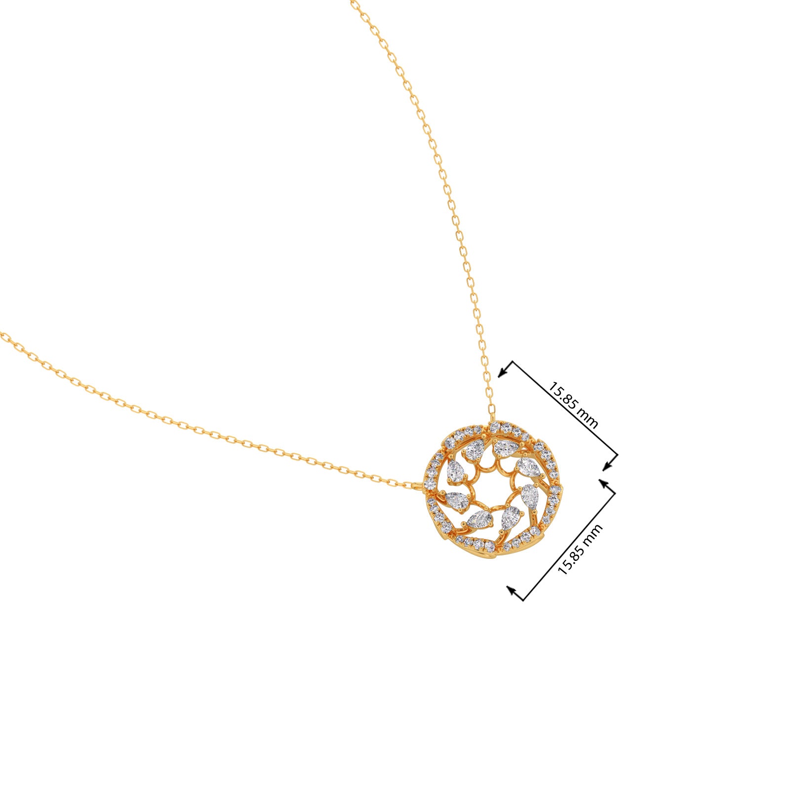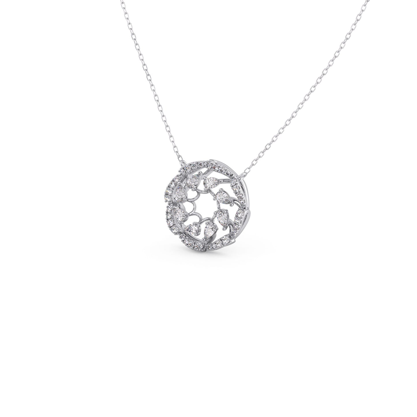 The Circle of Grace Diamond Pendant Necklace features a perfectly balanced circular silhouette, adorned with a harmonious arrangement of Round and Pear Diamonds. Symbolizing unity and elegance, this design captures light with graceful brilliance—an effortlessly timeless piece for refined, everyday luxury.