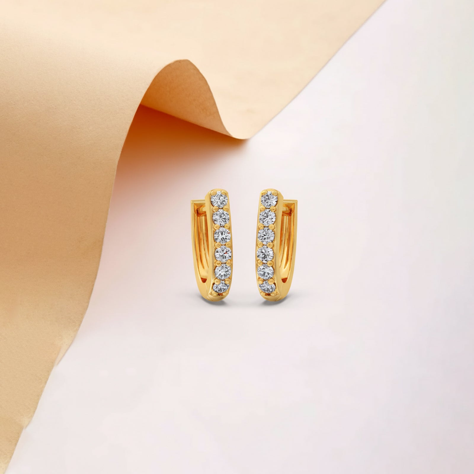 Crafted for everyday elegance, these classic huggie earrings feature a row of brilliant round-cut diamonds set in a polished yellow channel. The snug, close-fitting design ensures comfort while providing a continuous line of sparkle. They are perfect for adding a subtle yet sophisticated touch to any look.